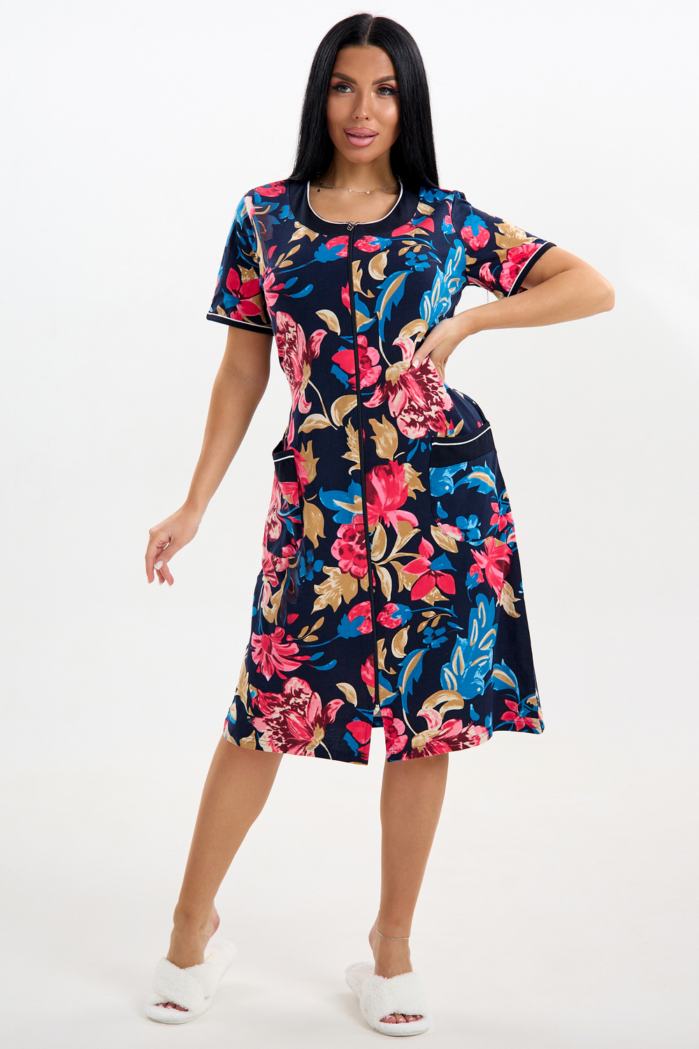 Этот халат станет отличным вариантом для домашнего использования. Он выполнен из мягкого трикотажа на основе хлопка, что обеспечивает комфорт в любое время года. Такой халатик идеально подходит для женщин, которые ценят уют и стиль в одежде. Модель предназначена для домашних дел, подойдет как для вечера, так и для утренних рутин. Изделие отличается тем, что регулируется хлястиком, что позволяет адаптировать любимый стиль к индивидуальным предпочтениям. Халаты подходят беременным и женщинам после родов за счет свободного кроя и удобства. Длинный вариант обеспечит тепло в прохладные дни, а короткий рукав добавит легкости в летние сезоны. Модель отлично будет смотреться на женщинах больших размеров, предоставляя разнообразные возможности стиля.