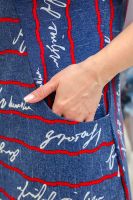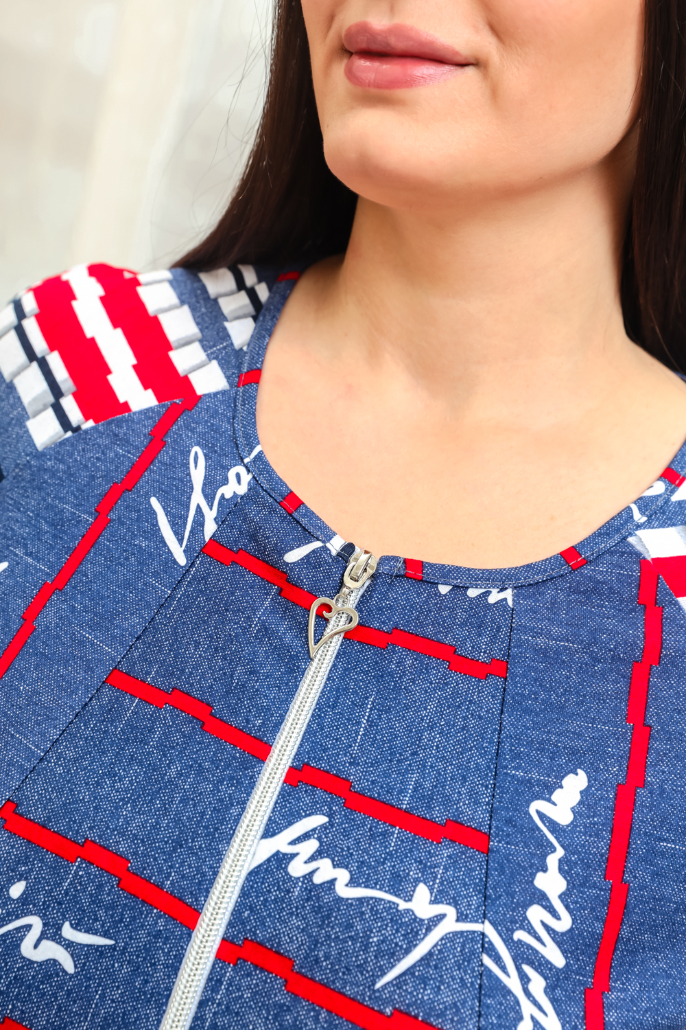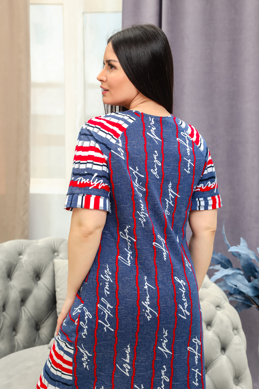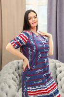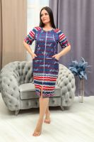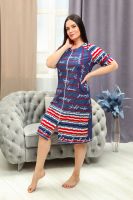 Халат полуприлегающего силуэта, средней длины, с округлой горловиной. Рукав реглан, короткий, с манжетом. В рельефных швах полочки обработаны карманы. Горловина обработана бейкой из основного полотна.