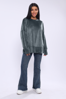 Женское худи свободного кроя со спущенным рукавом и разрезами по бокам. Модель выполнена из премиального велюра.