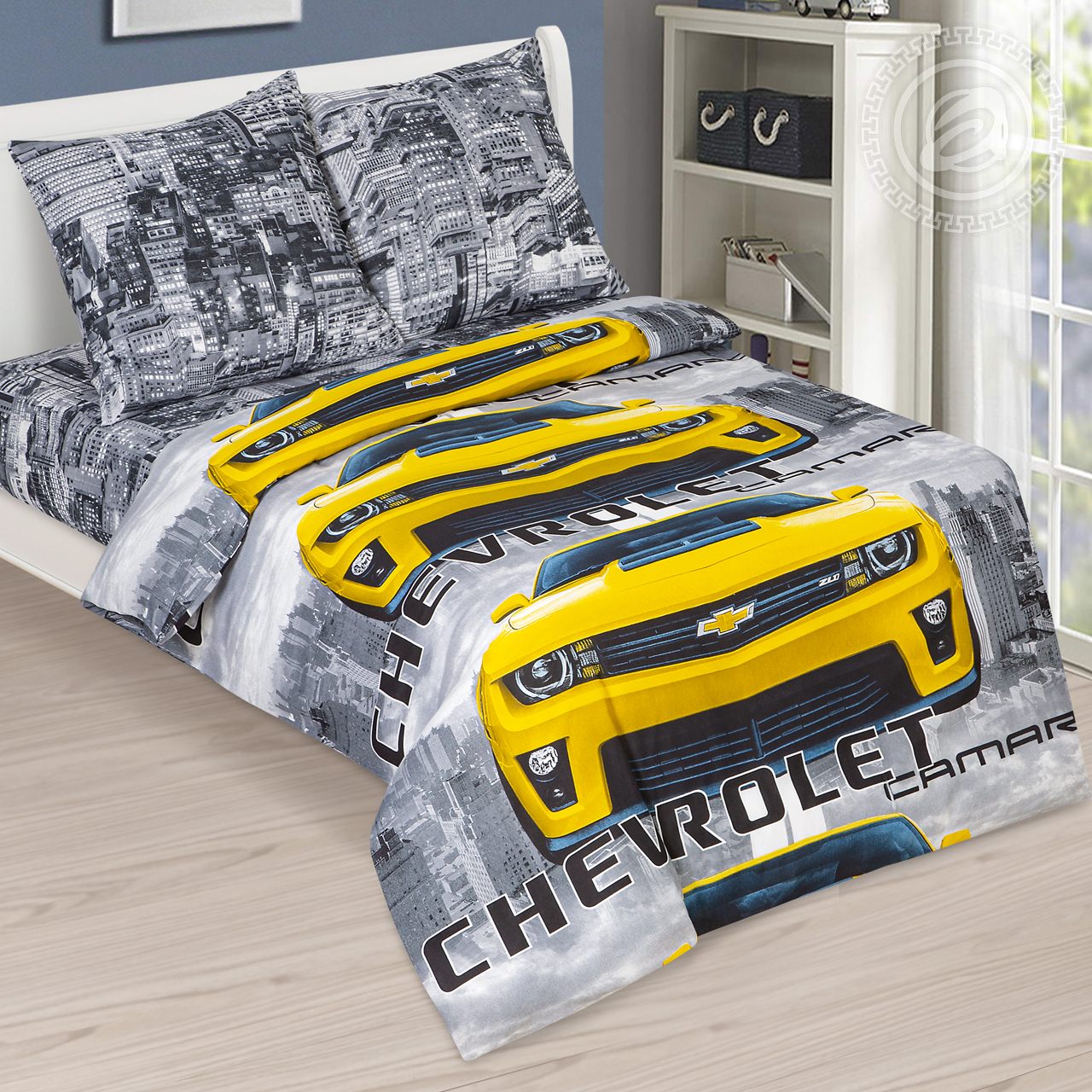 Скорость, мощь, стиль, – всё это дизайн «Имидж». Модный и современный принт поразит воображение и точно понравится юным автолюбителям. Среди небоскребов статусный и престижный автомобиль в ярких красках, который готов к своей первой поездке. Он явно выделяется на фоне окружающих его деталей и готов к скоростной гонке по городским улицам. Качественное постельное белье с машинками из бязи принесет юным спортсменам яркие эмоции.