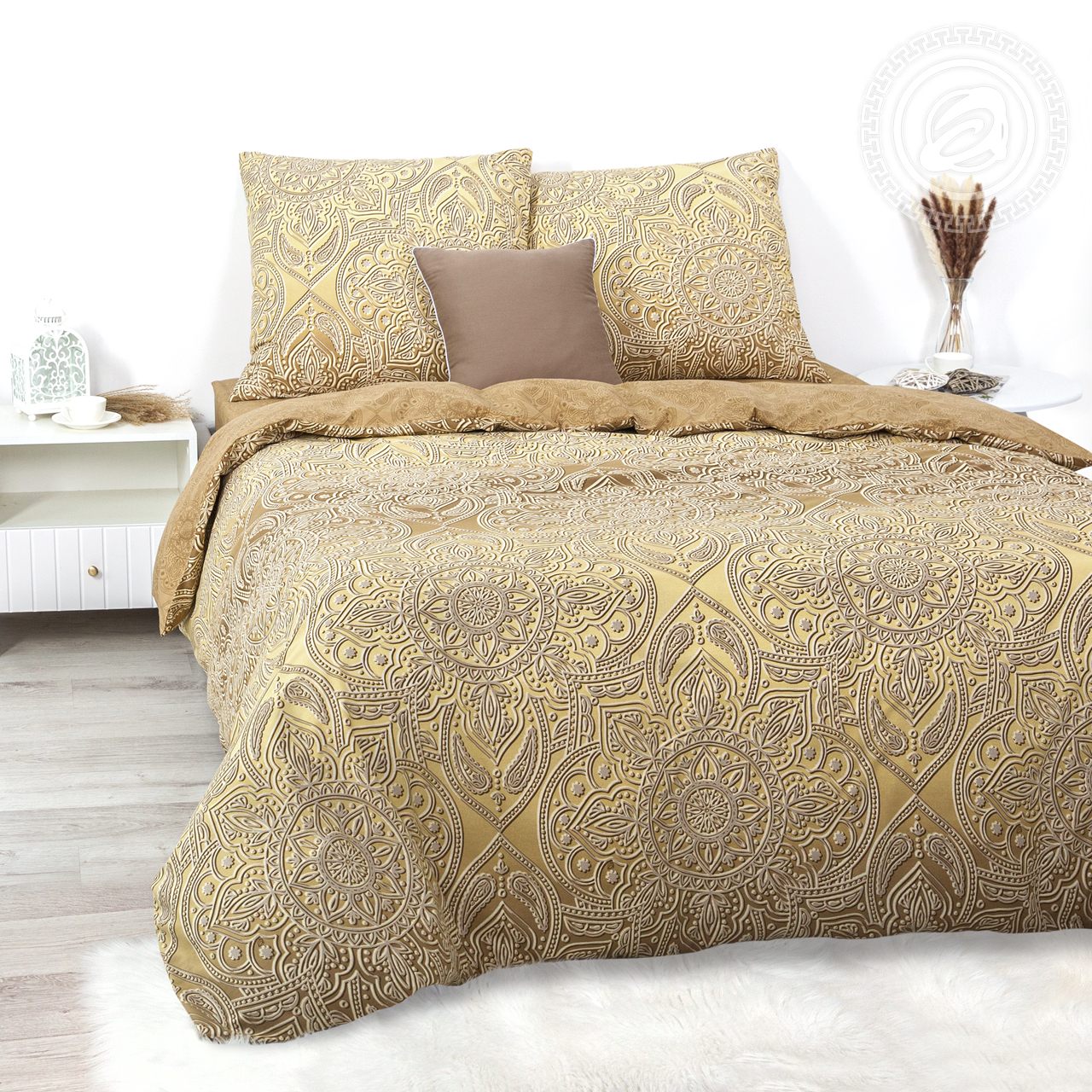 «Императрица» – образ роскоши и величия. Для постельного белья из поплина выбрана необычная дизайнерская концепция. Золотые переливы, градиентные переходы, изящные и утонченные узоры, – всё это делает комплект ярким, эффектным, стильным. Изысканное украшение королевской спальни!