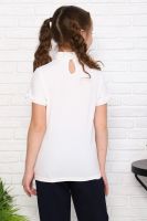Базовая школьная блузка для девочек с коротким рукавом. Нарядная блузка станет основой как повседневного, так и праздничного образа. Мягкое кружево по воротнику - стойке и низу рукава придает модели нежности. Модель составит одинаково удачный комплект и с юбкой, и с брюками. Блузка сшита из качественного трикотажа, используемый материал не теряет форму после многократных стирок, мягкий и приятный к телу, устойчив к износу. Для сохранения первоначальных свойств изделия, важно соблюдать рекомендации по уходу.