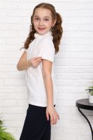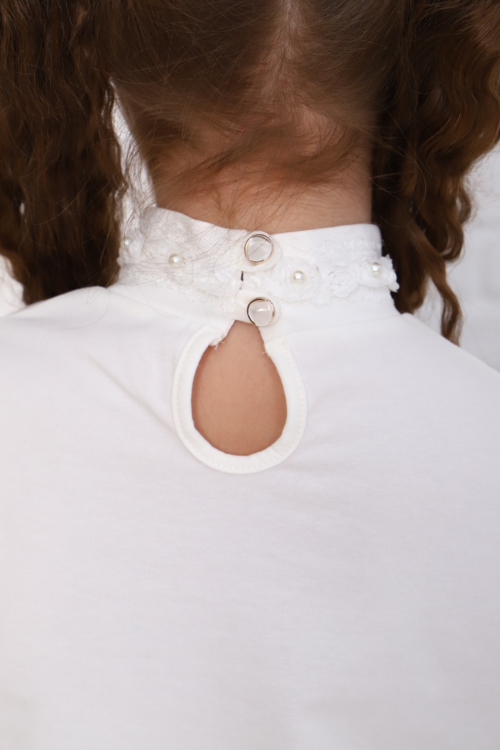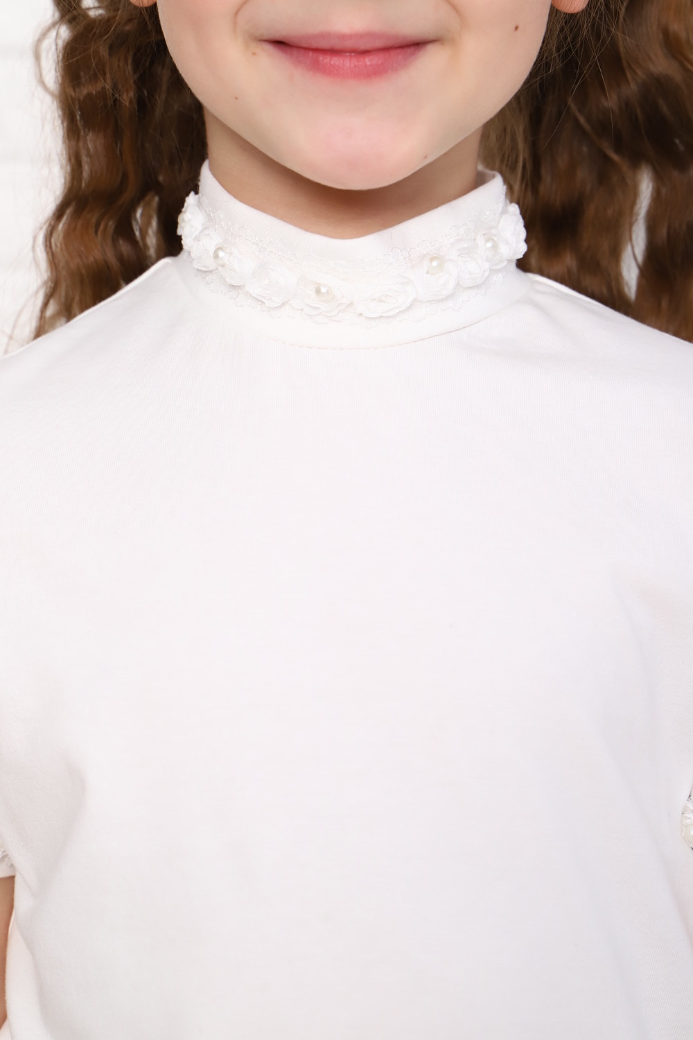 Базовая школьная блузка для девочек с коротким рукавом. Нарядная блузка станет основой как повседневного, так и праздничного образа. Мягкое кружево по воротнику - стойке и низу рукава придает модели нежности. Модель составит одинаково удачный комплект и с юбкой, и с брюками. Блузка сшита из качественного трикотажа, используемый материал не теряет форму после многократных стирок, мягкий и приятный к телу, устойчив к износу. Для сохранения первоначальных свойств изделия, важно соблюдать рекомендации по уходу.