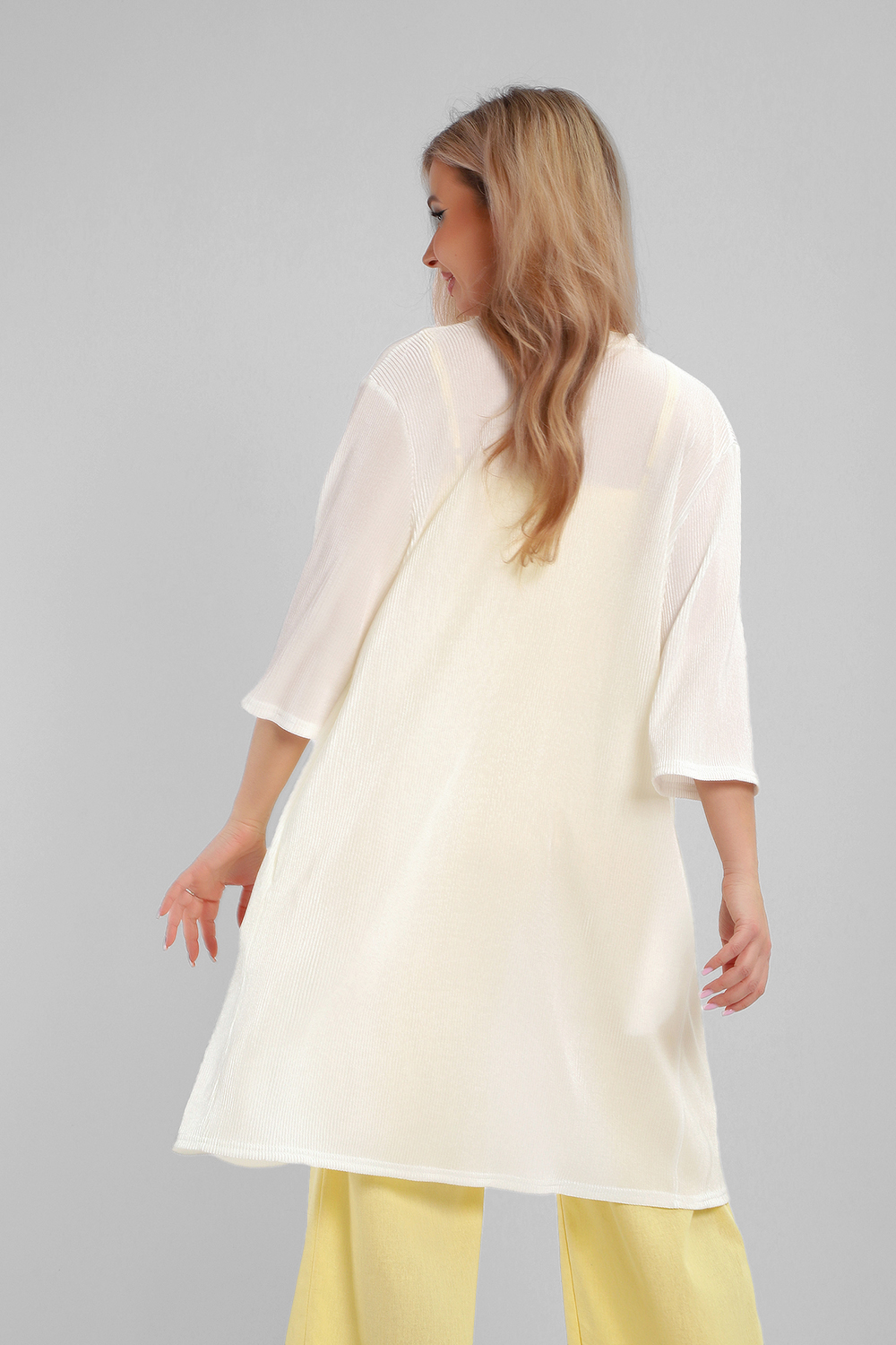 Создайте свой неповторимый образ с помощью элегантного кардигана длиной макси, который станет идеальным дополнением любого гардероба. Изготовленный из легкого струящегося материала атлас гофре, этот предмет одежды обеспечивает комфорт и легкость на протяжении всего дня. Стильная накидка без застежки позволяет легко комбинировать ее с различными нарядами, создавая при этом модный изысканный образ. Базовые расцветки кардигана без труда впишутся в ваш гардероб. Рукав длиной 3/4 подойдет дамам любого роста. Внутренний карман в боковом шве добавляет удобство и функциональность изделию. Длинный силуэт визуально вытягивает фигуру и добавляет женственности вашему образу.