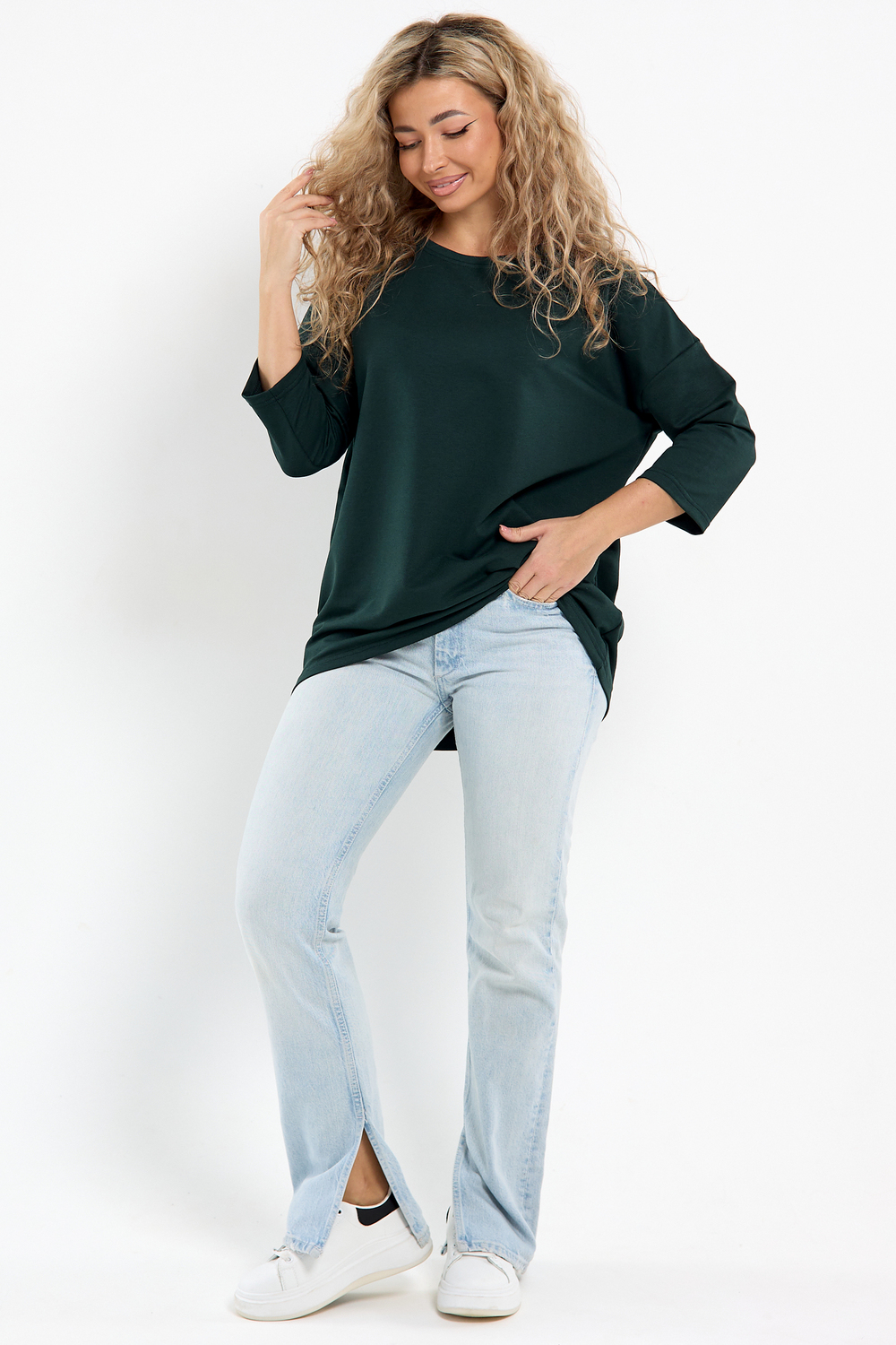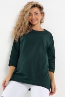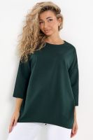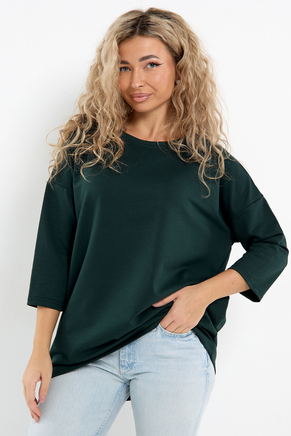 Лонгслив это стильная и комфортная женская кофта, идеально подходящая для одежды стандартных и больших размеров. Лонг это отличный выбор для женщин, которые ценят стиль и комфорт. Изготовленный из футера двунитки, он обеспечивает хорошую воздухопроницаемость. Идеальная кофточка для девушек, подходящая для различных возрастных групп. Независимо от того, с каким образом вы решите носить, он будет отлично сочетаться с различной одеждой, создавая стильные и модные образы. Стильный лонгслив оверсайз с рукавом 3/4 это оптимальный вариант одежды второго слоя для осени и зимы, именно такая ткань позволит найти лучший баланс между тепло и не жарко. Отлично подходит для повседневной носки и вечерних мероприятий. Данная туника без горла может стать в вашем гардеробе отличной одеждой для дома, а также для офиса и под верхнюю одежду. Хотя в ней не жарко даже в тёплую погоду. Трикотажный свитшот в меру удлиненный. Лонгслив абсолютно не стесняет движений и подчеркивает вашу свободу. Классический лонгслив легко сочетать с другими предметами гардероба.