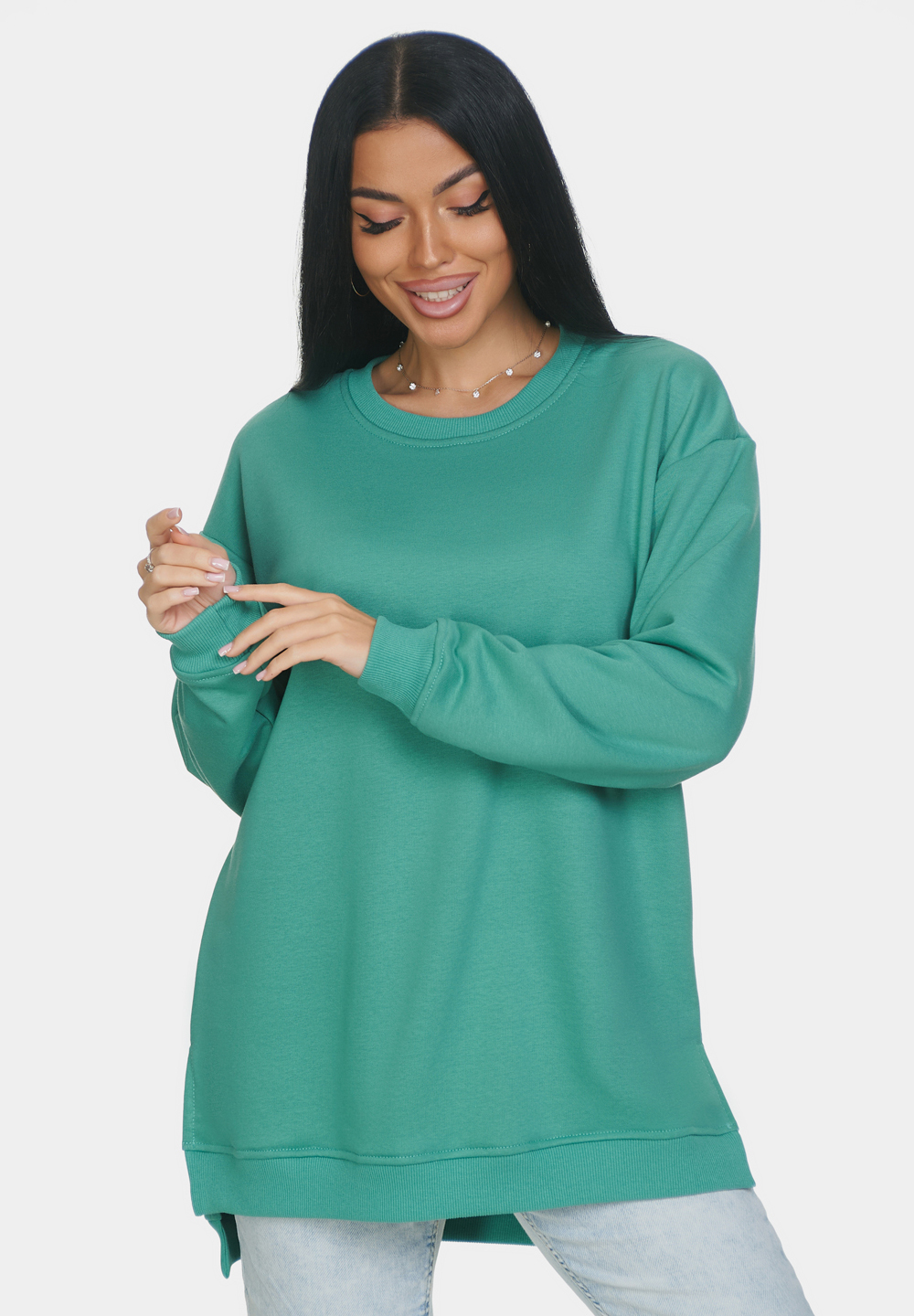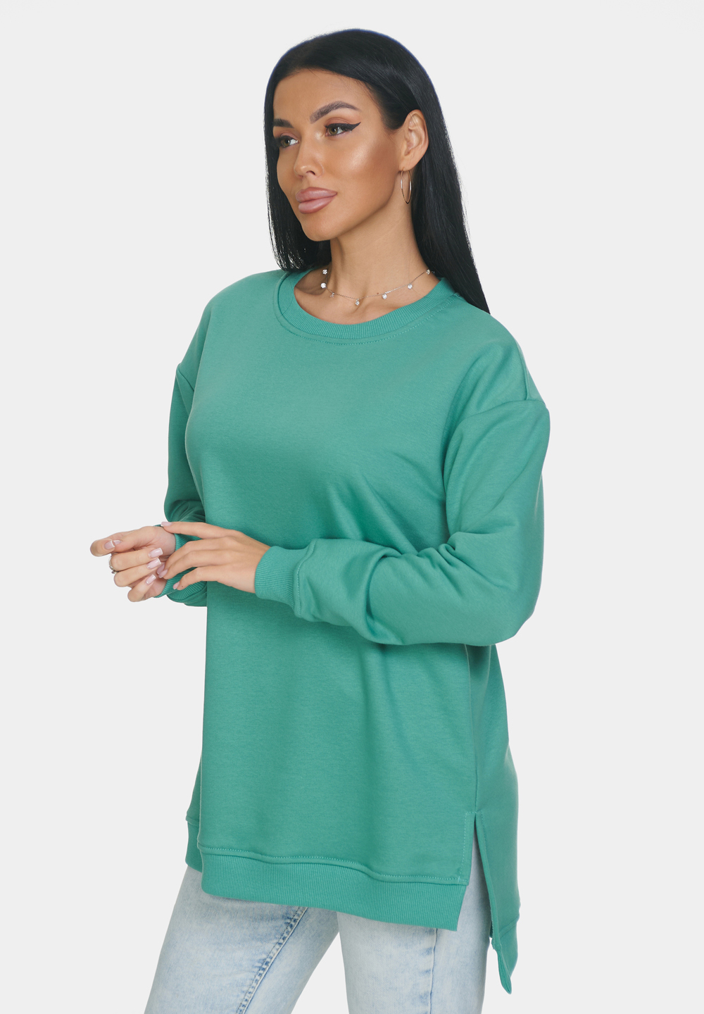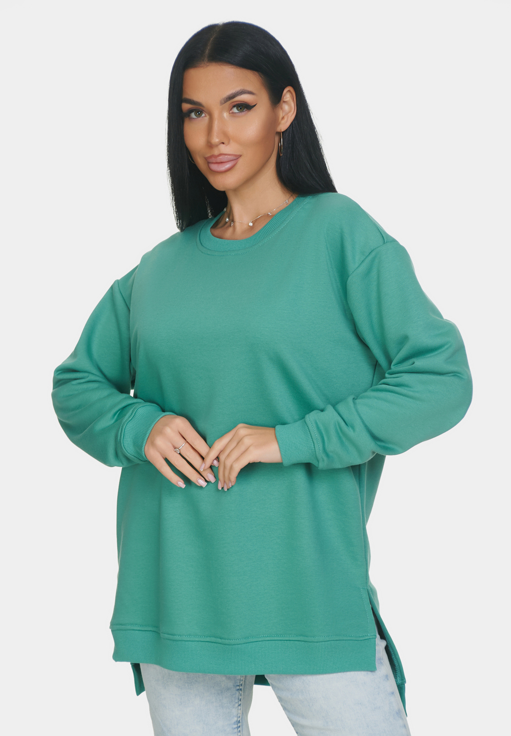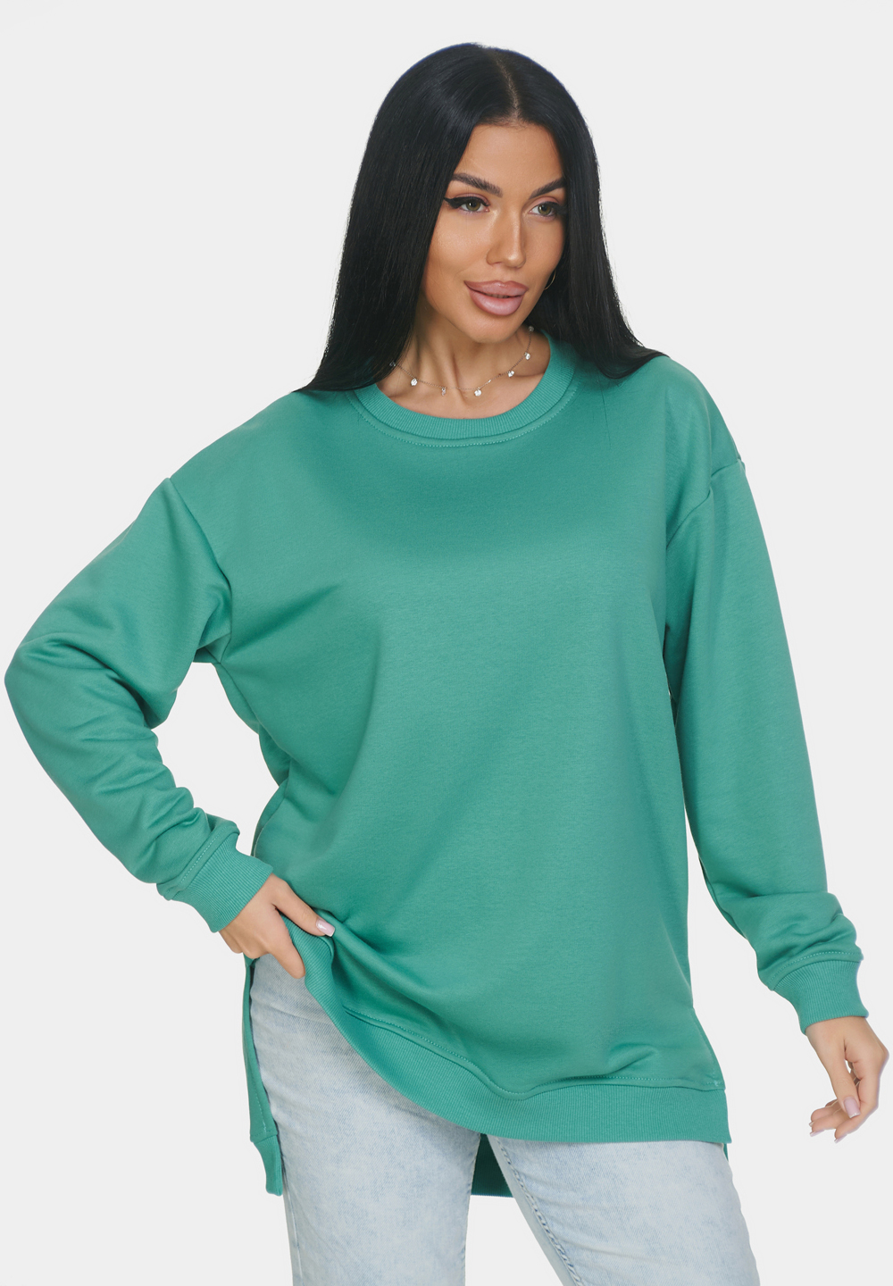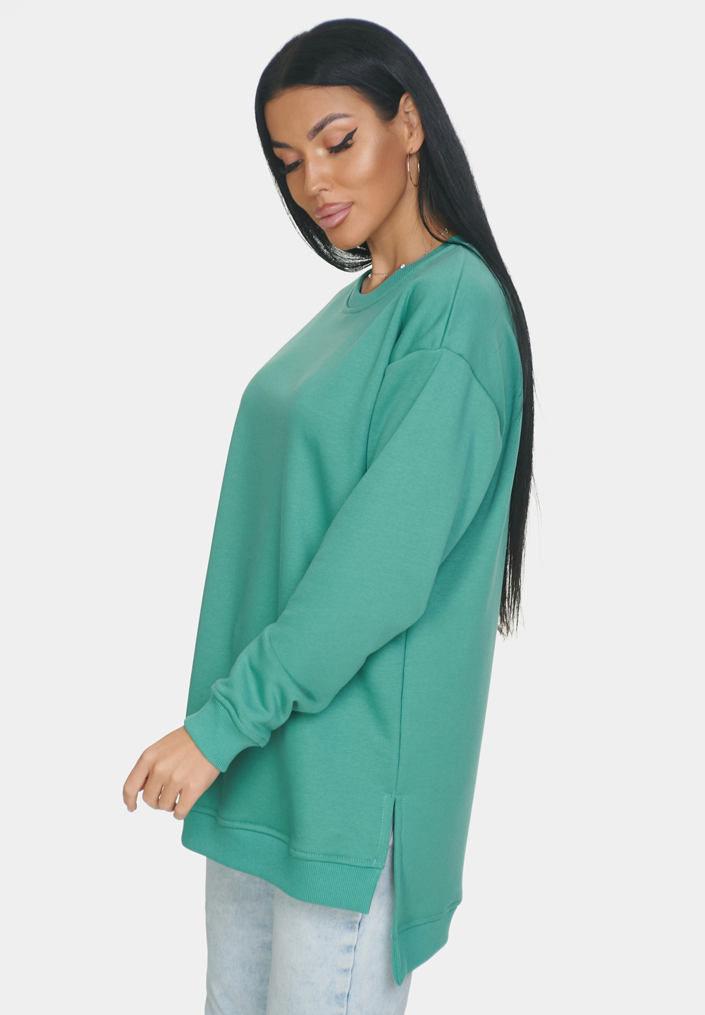 Базовая оверсайз кофта со спущенным рукавом на все случаи жизни. Манжеты и горловина выполнены из эластичного материала кашкорсе. Идеально подходит для прохладной погоды. Материал изделия - 3-х ниточный футер-петля. Без начеса.