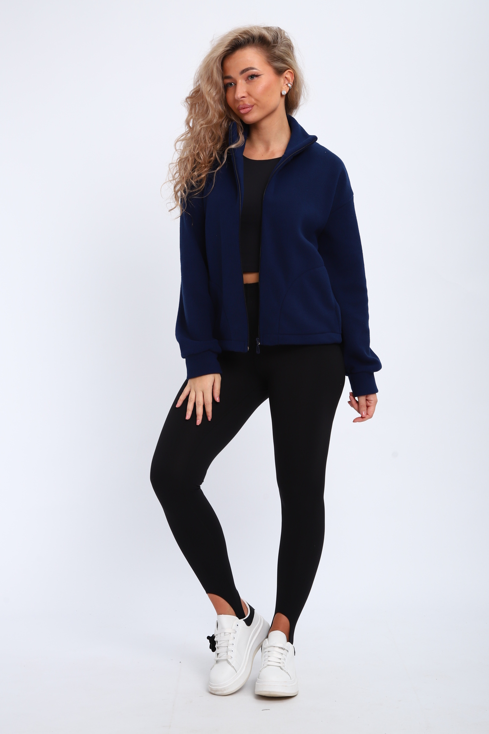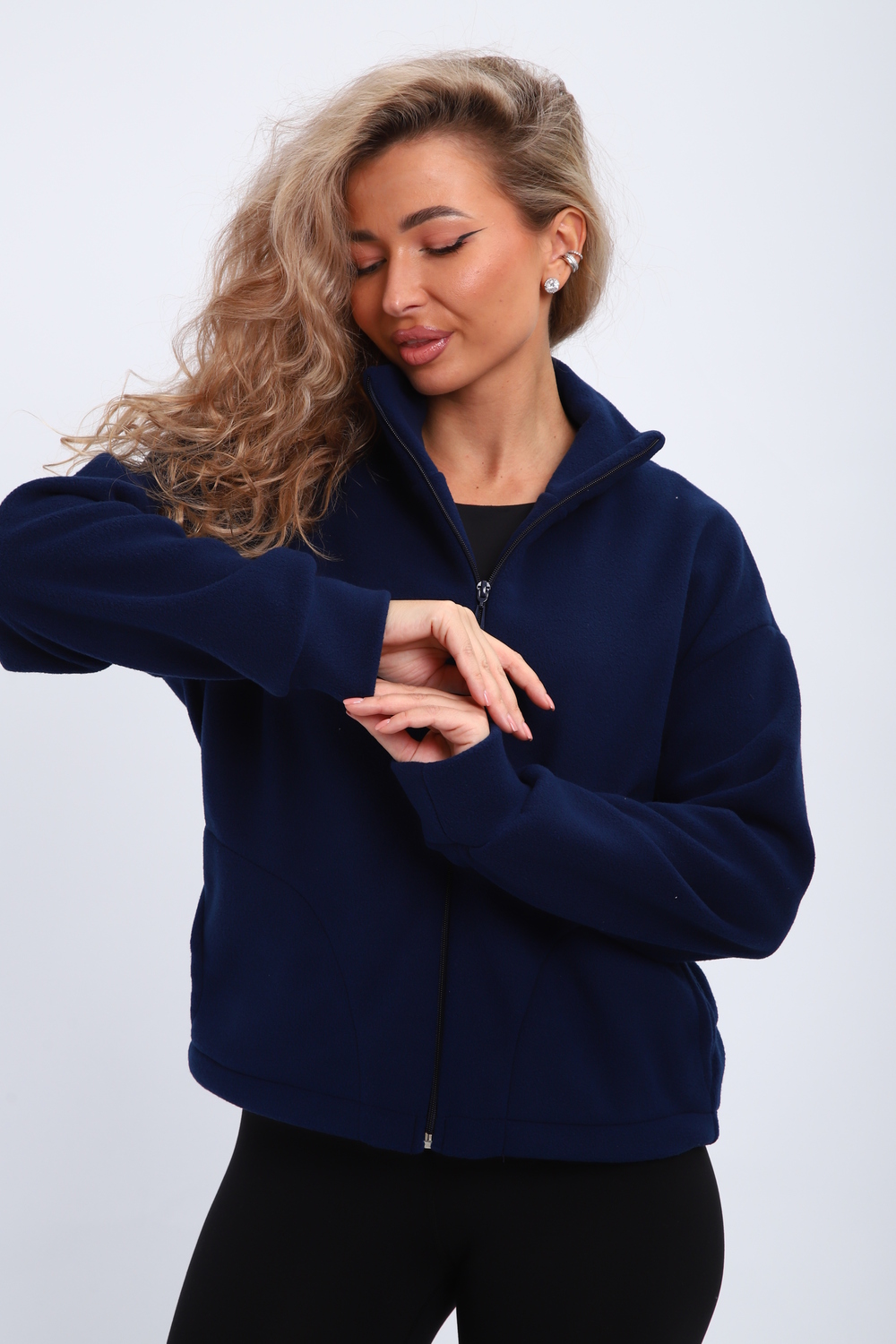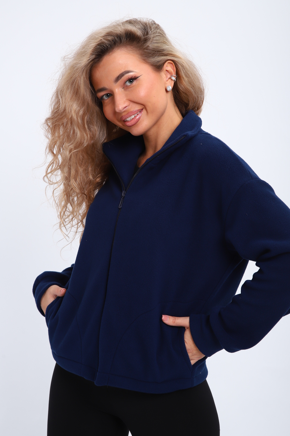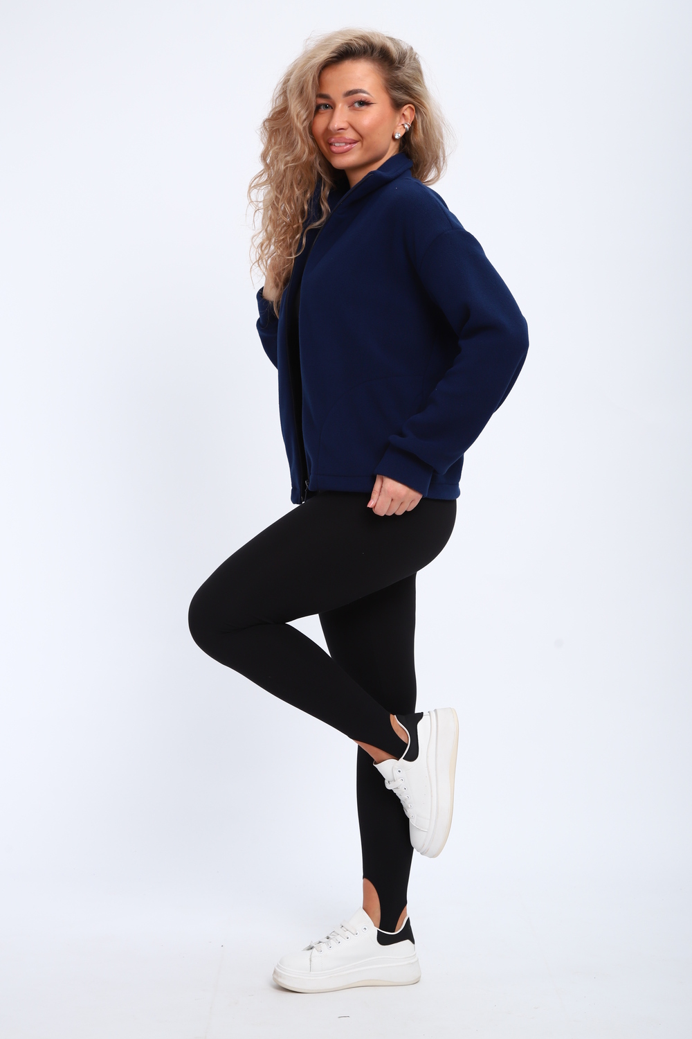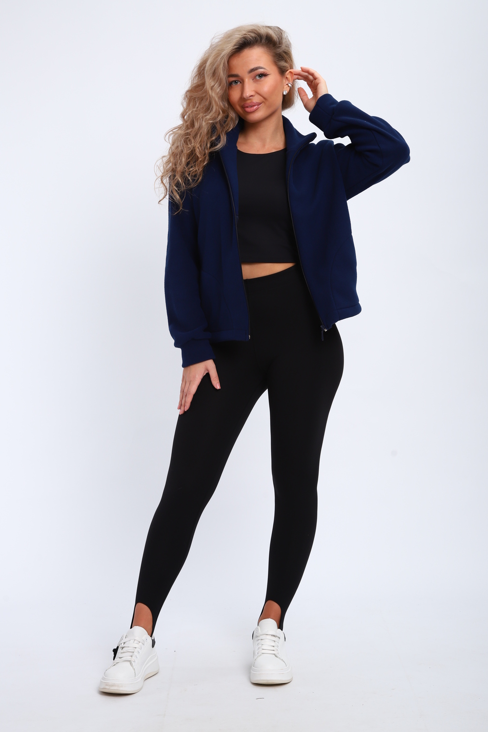 Теплая женская кофта на молнии с карманами. Длинный рукав на манжете, воротник стойка.