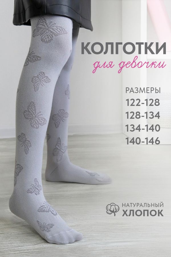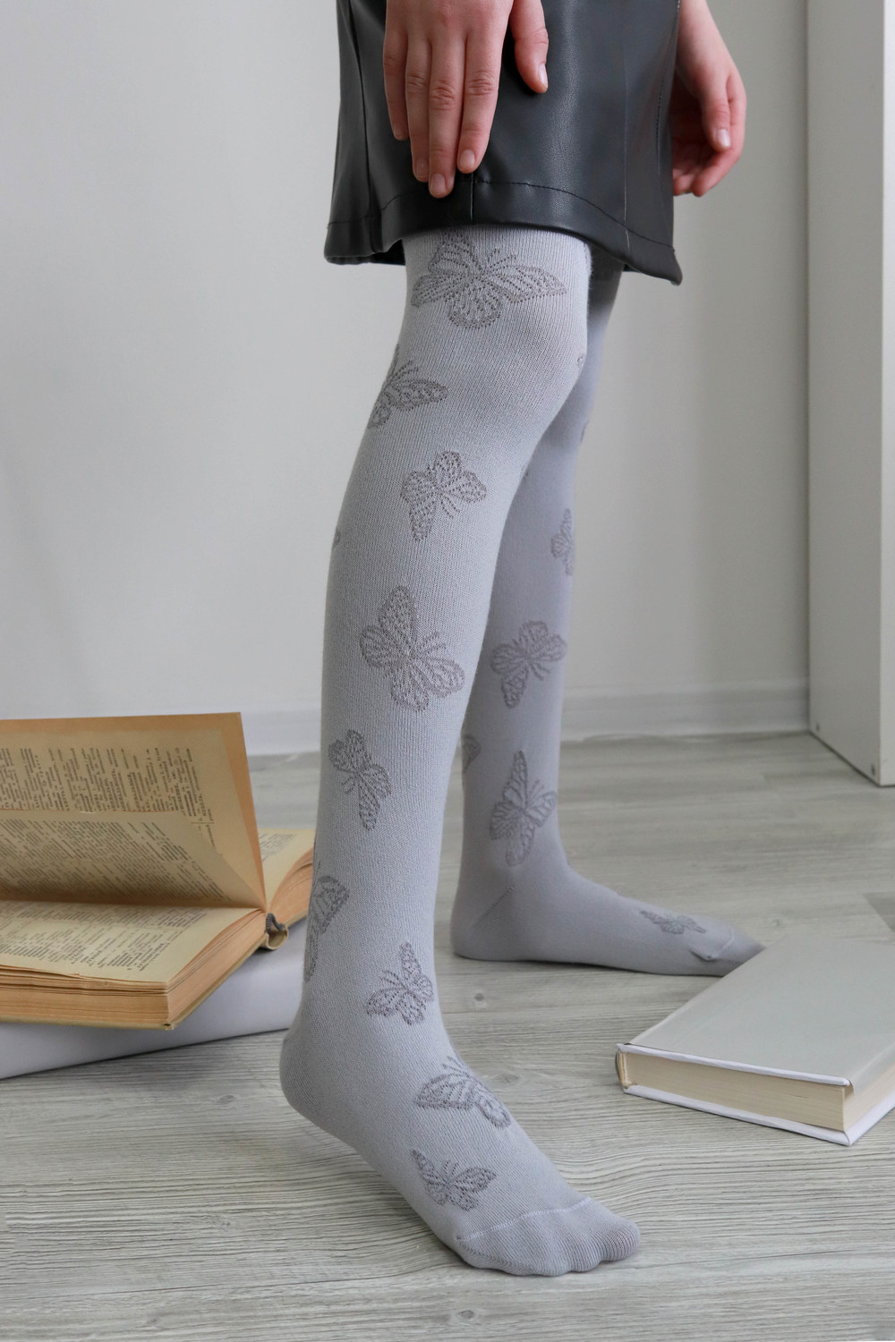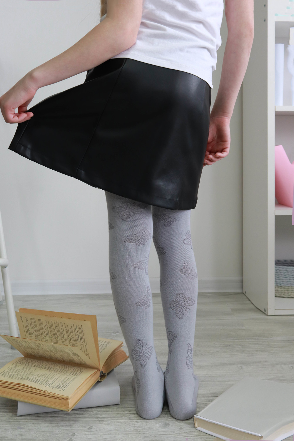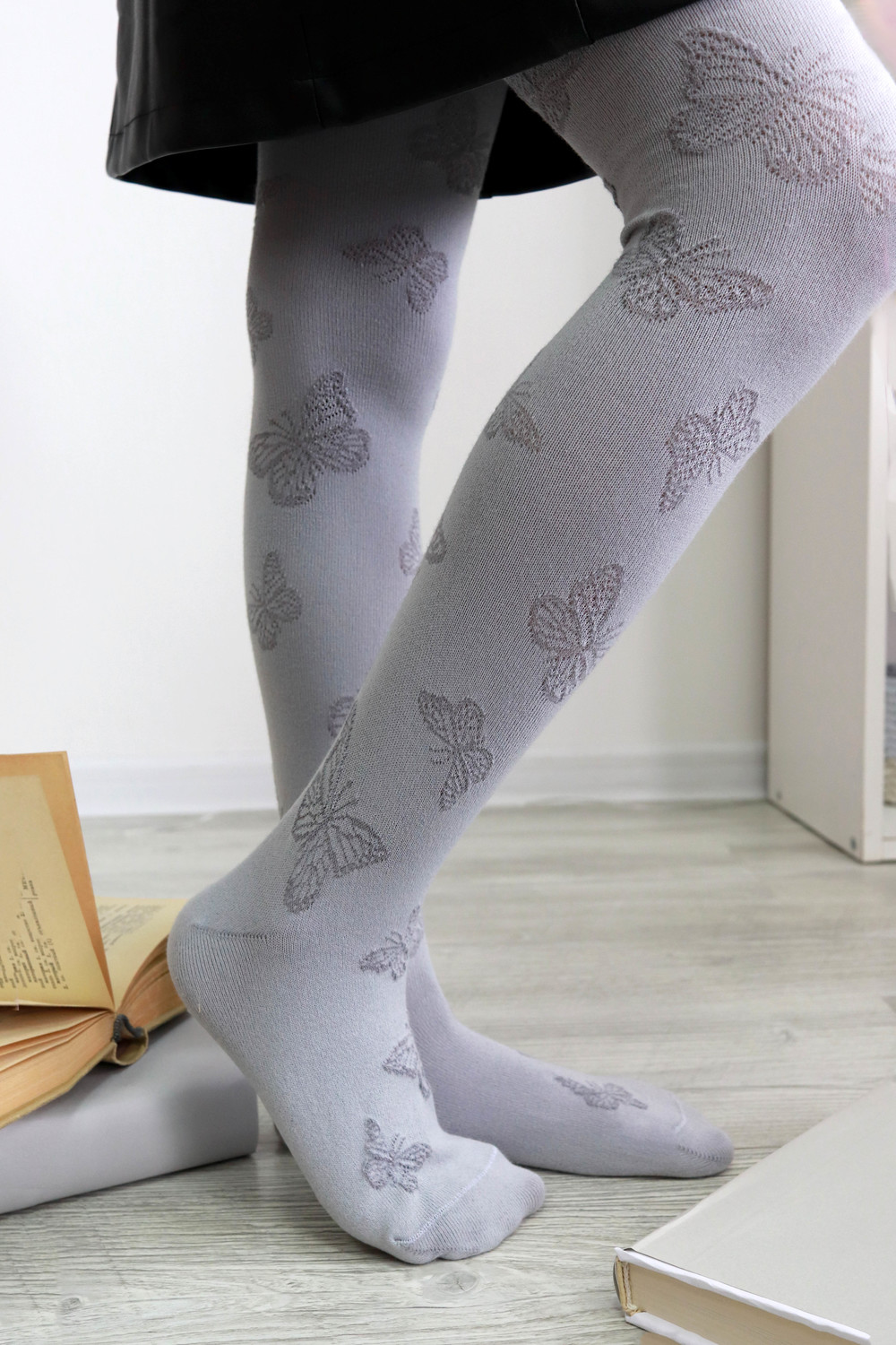 Оригинальные детские колготки с красивыми ажурными бабочками. Сдержанные спокойные расцветки колготок идеально подходят для школьников