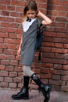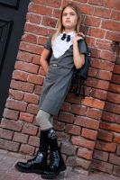 Стильные подростковые колготки с переливающейся эмблемой из нитей люрекса. Однотонная основа в горошек, снизу имитация черного носка с ажурным краем. Отлично подойдут для школы.