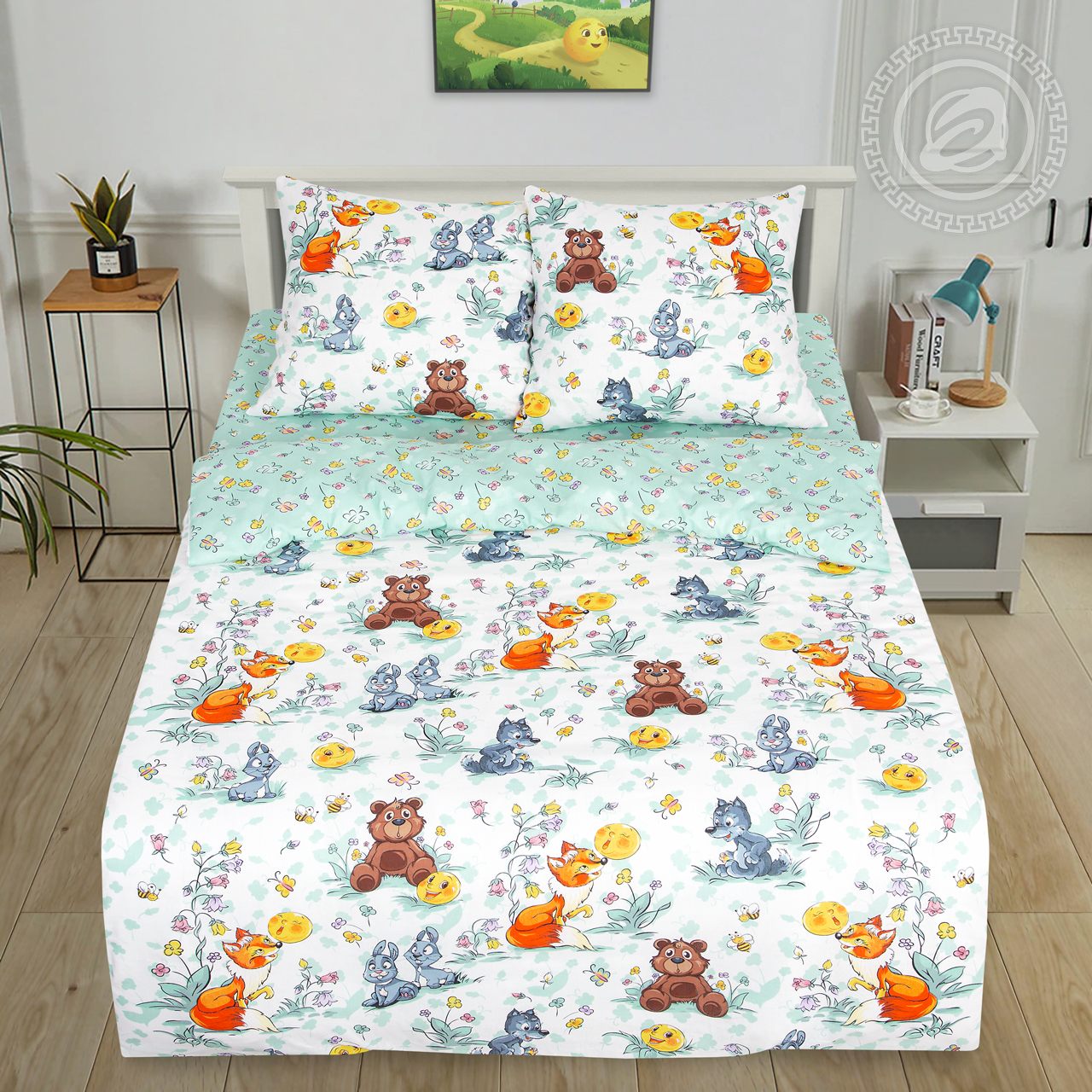 А вы помните волшебную сказку о Колобке, который отправился в невероятное приключение? Теперь сюжет знакомой истории появился на детском комплекте постельного белья из поплина. В сказочном лесу поселились любимые герои: смешные зайчата, добрый волчонок, очаровательный медвежонок, хитрая лисичка и сам Колобок. Яркое постельное белье с милыми персонажами познакомит мальчишек и девчонок с сюжетом самой известной истории, а родителям напомнит о счастливой поре детства. Это замечательный подарок для радостных снов.