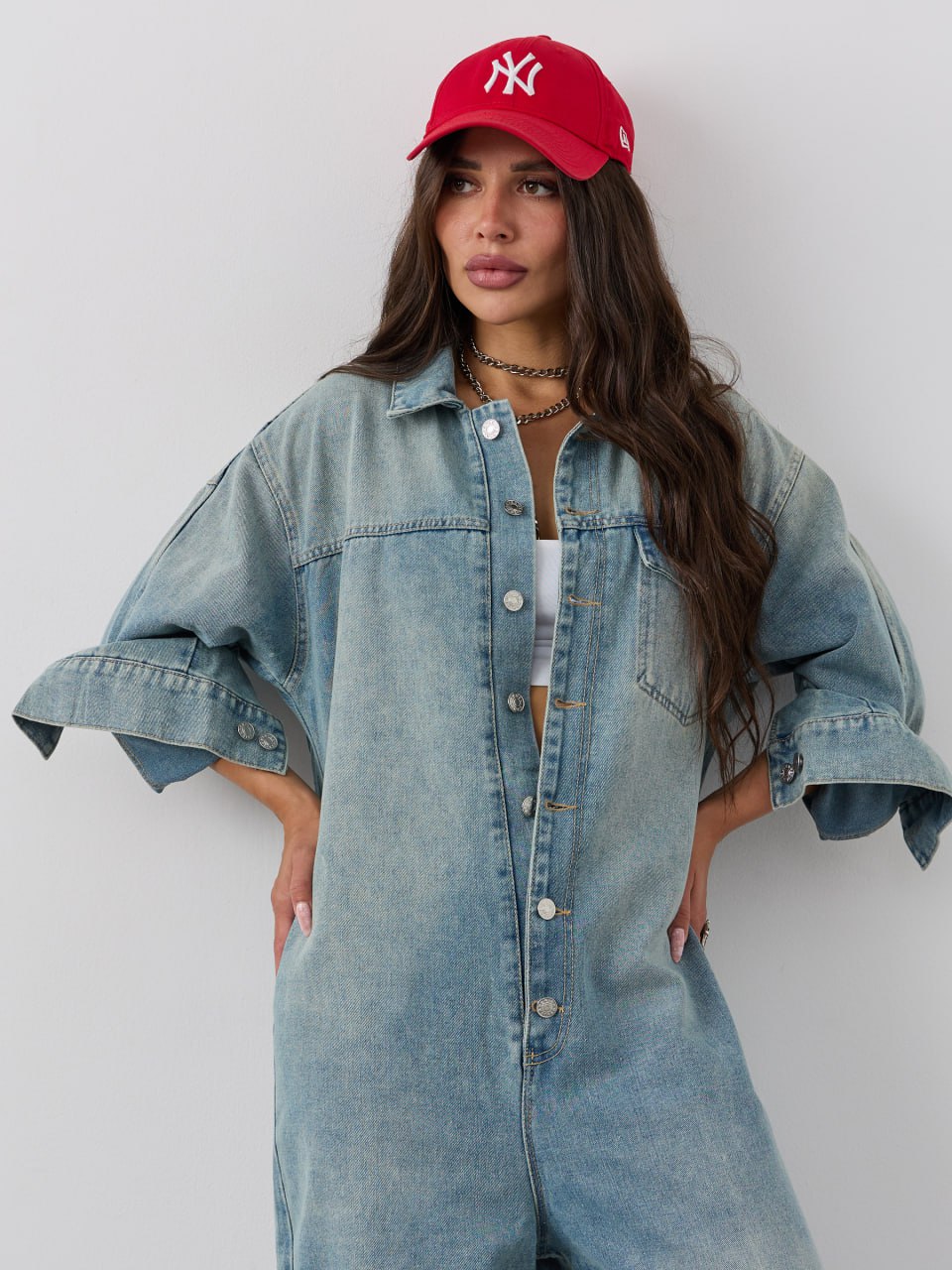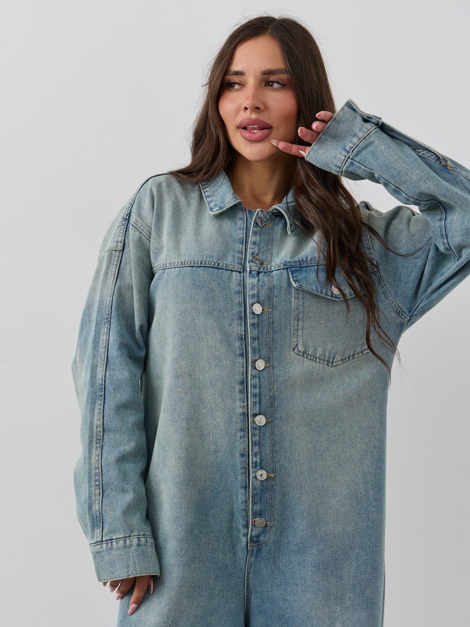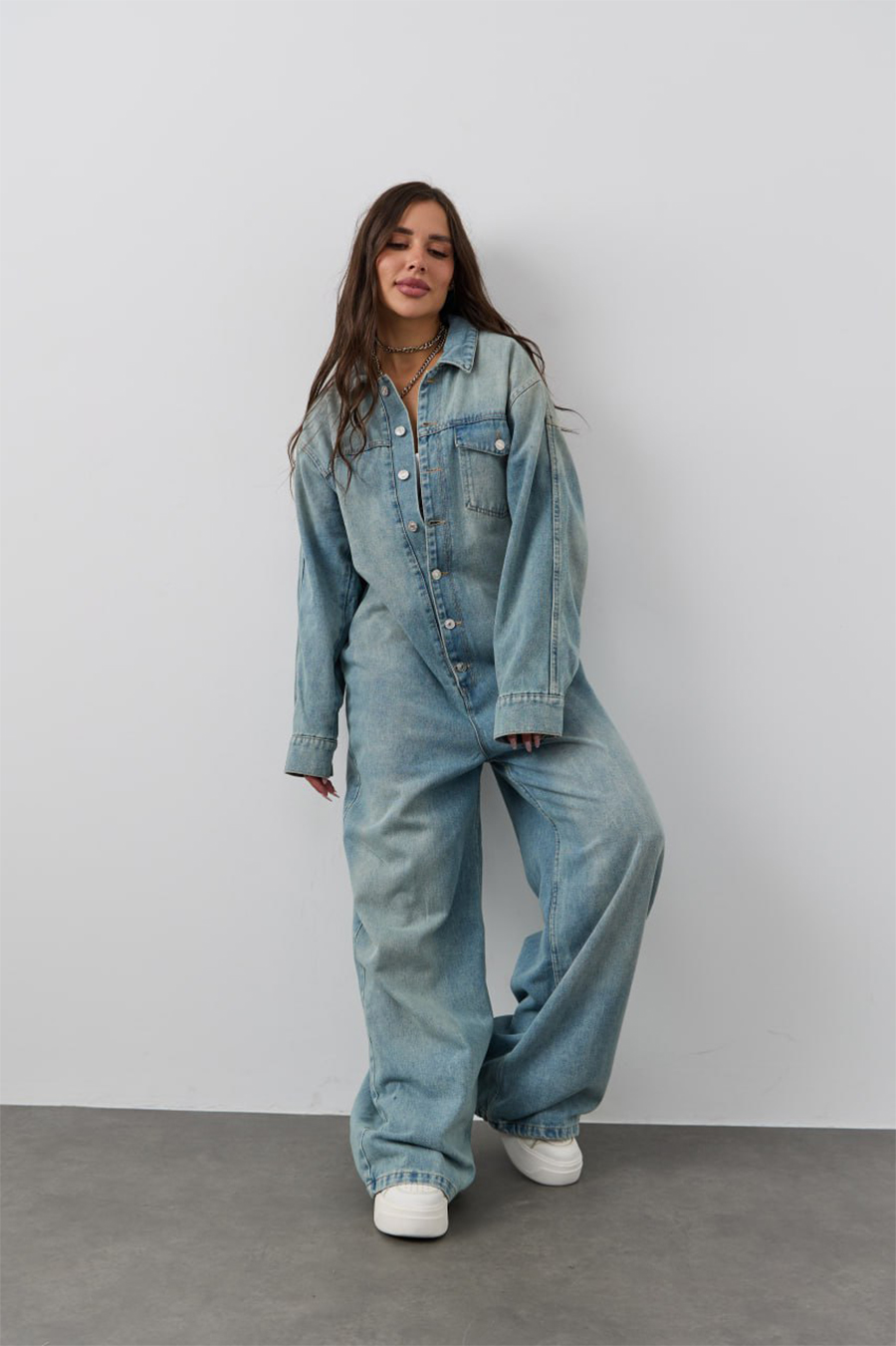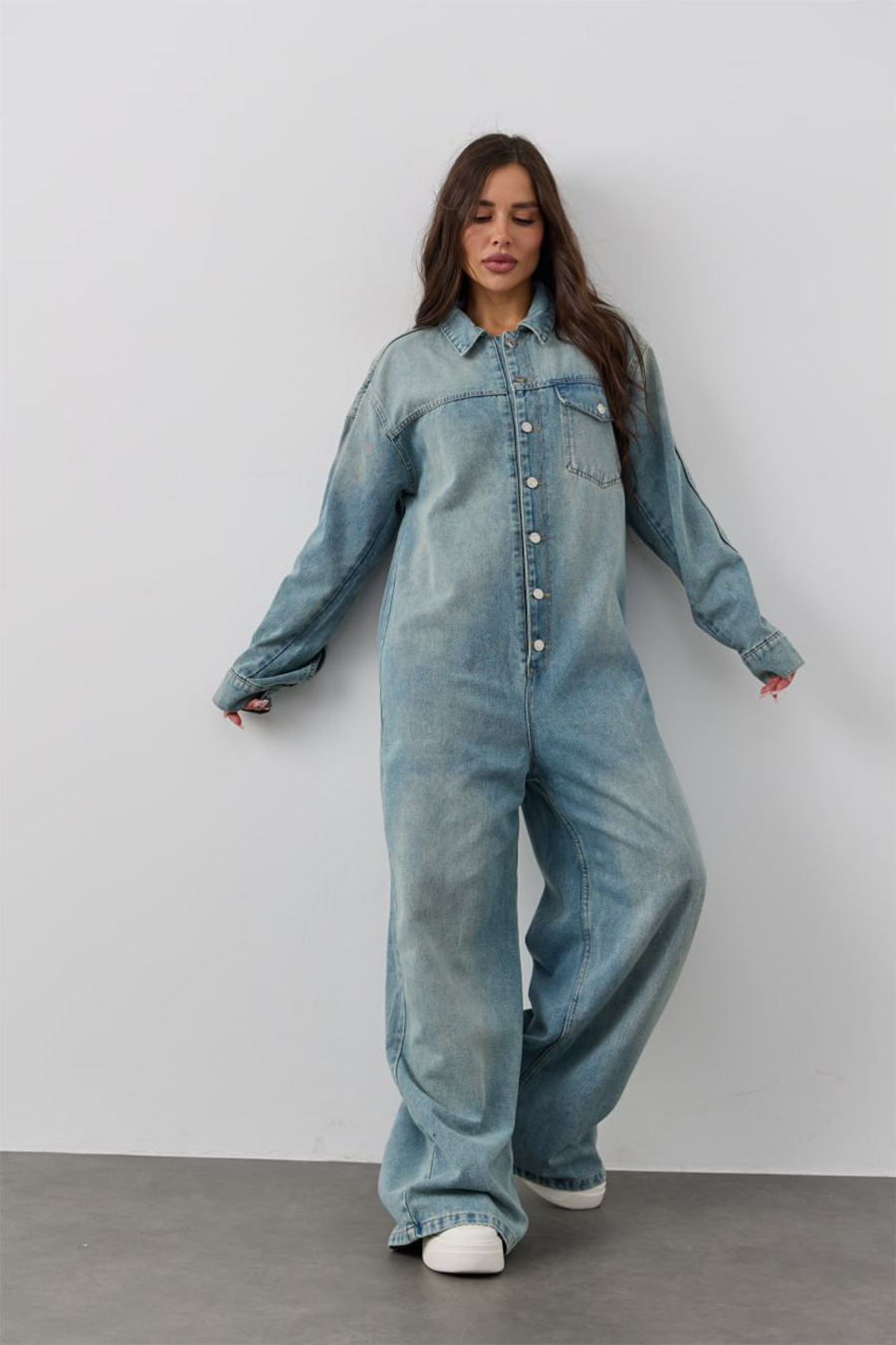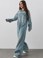 Джинсовый комбинезон с брюками и рукавами - стильный предмет женского гардероба для крутого молодежного образа на каждый день! Популярную брючную модель - отличает сплошной фасон, отложной воротник, длинные рукава с манжетами и застёжкой на металлические пуговицы, а также накладной карман с клапаном спереди. Джинсовый комбез на пуговицах сшит из плотного и мягкого, тянущегося денима (полиэстер, хлопок). Длинные широкие брюки с накладным карманом сзади и комфортной посадкой позволяют подобрать любой ремешок, а подворот брючин разворачивается, если вы хотите увеличить длину штанин. Просторный крой Oversize обеспечивает максимальный комфорт и свободу движений, идеально подходя для создания модного и расслабленного образа. Стильный предмет одежды дополнит повседневный гардероб взрослых женщин или девушек - подростков, подойдет для будущих мам на ранних сроках беременности, будет удобен для кормящих женщин и дам полной комплекции. Однотонный комбинезон доступен в маленьких и больших размерах, подходит для представительниц прекрасной половины человечества любого роста: высокого или невысокого. Легкая модель будет удобна для ношения в домашних условиях, на уличной прогулке с подружками или свидании с любимым, дополнит модный лук для работы, наряд для дискотеки или вечеринки. Прогулочный костюм будет комфортен для активного отдыха на природе в теплый весенний или летний день, ранней осенью, подойдет для тематической фотосессии на природе. Оверсайз комбез в интересном дизайне и свободной посадкой по фигуре - необычный, но милый знак внимания для любимой девушки, сестры или лучшей подруги, полезный презент на любой праздник, в том числе день рождения. Новый комбинезон может иметь легкий запах, связанный с производственным процессом. Рекомендуем постирать изделие перед первым использованием, чтобы устранить запах и обеспечить максимальный комфорт при носке.