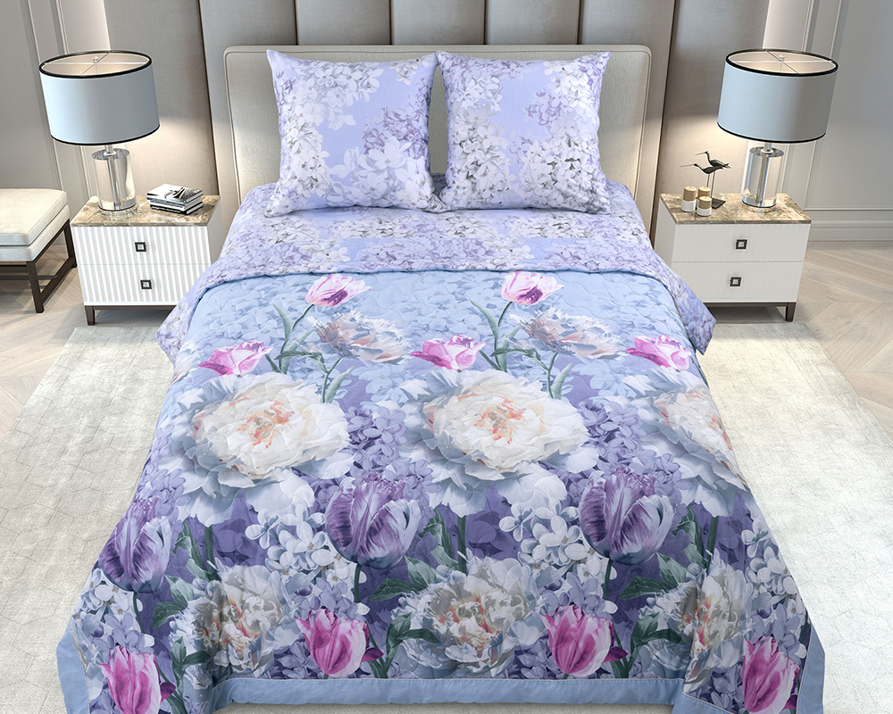 Комплект для сна изготовлен из перкаля. Ткань отличается плотной и тонкой фактурой, высокими эстетическими и практическими качествами, приятна на ощупь и очень комфортна. По прочности перкаль превосходит многие материалы, выполненные из более толстых волокон. Уникальность комплекта для сна заключается в том, что вместо традиционного пододеяльника и наволочек в комплект входит тонкое стеганое одеяло, выполненное из ткани того же дизайна, что и основной комплект. Преимущества данного комплекта в том, что стёганые изделия практичны в использовании. Заправленные подушки в стеганые наволочки можно использовать как декоративные. А одеяло одновременно полностью справиться с функцией покрывала. Цвет ткани может незначительно отличаться от фото. Характеристики размера 1,5 спальный: Размер наволочек 70х70 (2 шт) (молния) Размер простыни 180х220 (1шт) (без резинки) Размер одеяла 140х205 (1 шт) Характеристики размера 2 спальный с европростыней: Размер наволочек 70х70 (2 шт) (молния) Размер простыни 220х240 (1шт) (без резинки) Размер одеяла 172х205 (1 шт) Характеристики размера Евро: Размер наволочек 70х70 (2 шт) (молния) Размер простыни 220х240 (1шт) (без резинки) Размер одеяла 200х220 (1 шт)