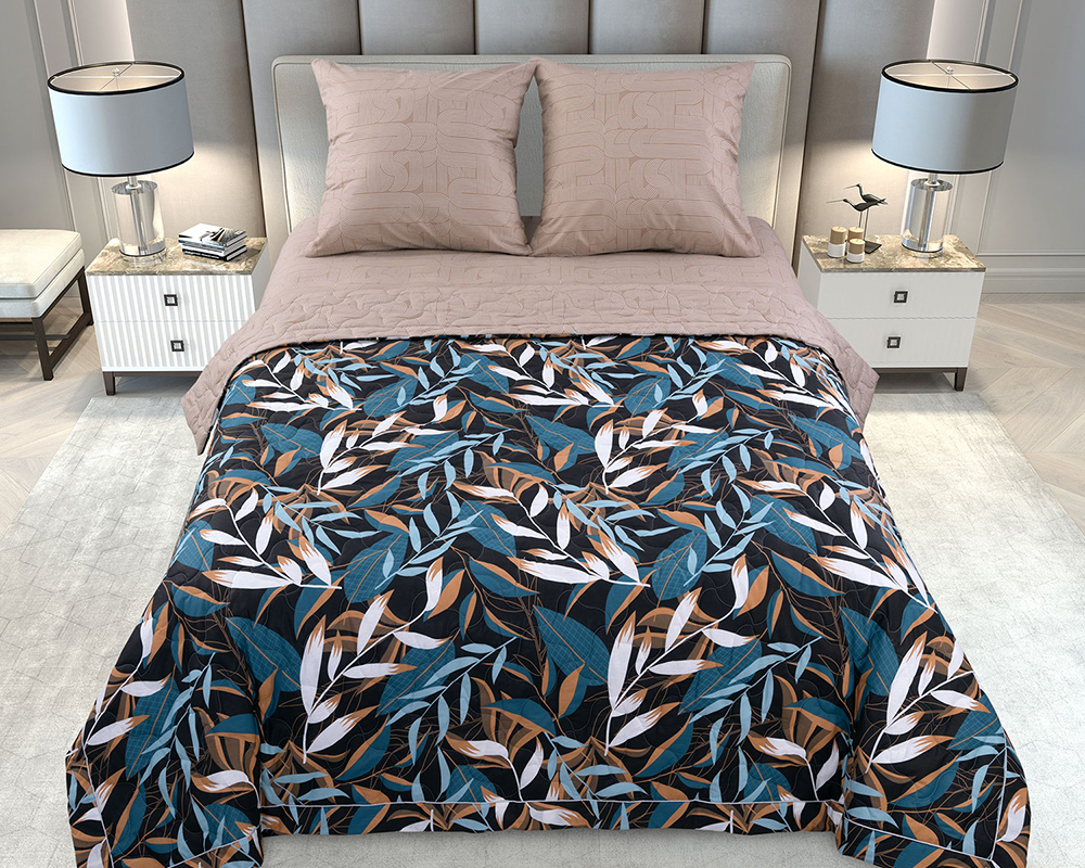 Комплект для сна изготовлен из перкаля. Ткань отличается плотной и тонкой фактурой, высокими эстетическими и практическими качествами, приятна на ощупь и очень комфортна. По прочности перкаль превосходит многие материалы, выполненные из более толстых волокон. Уникальность комплекта для сна заключается в том, что вместо традиционного пододеяльника и наволочек в комплект входит тонкое стеганое одеяло, выполненное из ткани того же дизайна, что и основной комплект. Преимущества данного комплекта в том, что стёганые изделия практичны в использовании. Заправленные подушки в стеганые наволочки можно использовать как декоративные. А одеяло одновременно полностью справиться с функцией покрывала. Цвет ткани может незначительно отличаться от фото. Характеристики размера 1,5 спальный: Размер наволочек 70х70 (2 шт) (молния) Размер простыни 180х220 (1шт) (без резинки) Размер одеяла 140х205 (1 шт) Характеристики размера 2 спальный с европростыней: Размер наволочек 70х70 (2 шт) (молния) Размер простыни 220х240 (1шт) (без резинки) Размер одеяла 172х205 (1 шт) Характеристики размера Евро: Размер наволочек 70х70 (2 шт) (молния) Размер простыни 220х240 (1шт) (без резинки) Размер одеяла 200х220 (1 шт)