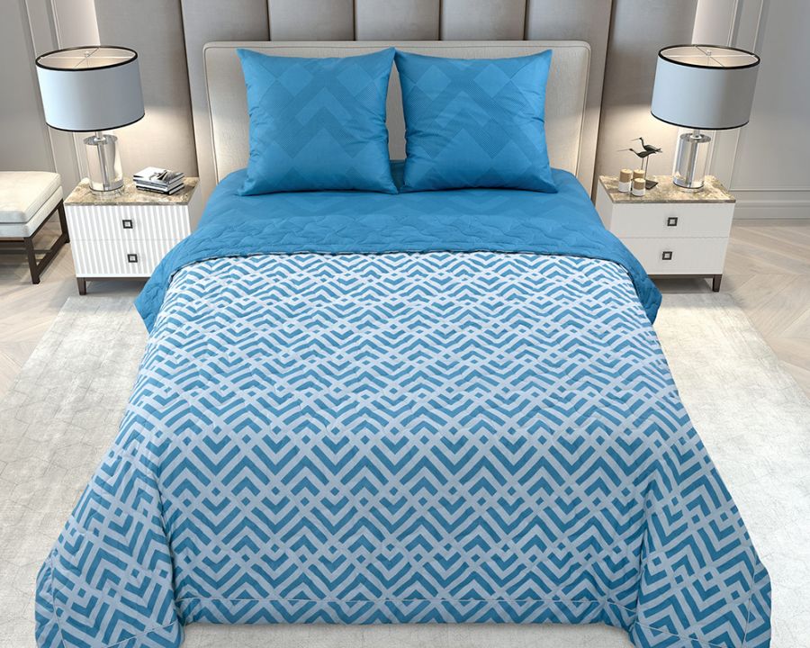 Комплект для сна изготовлен из перкаля. Ткань отличается плотной и тонкой фактурой, высокими эстетическими и практическими качествами, приятна на ощупь и очень комфортна. По прочности перкаль превосходит многие материалы, выполненные из более толстых волокон. Уникальность комплекта для сна заключается в том, что вместо традиционного пододеяльника и наволочек в комплект входит тонкое стеганое одеяло, выполненное из ткани того же дизайна, что и основной комплект. Преимущества данного комплекта в том, что стёганые изделия практичны в использовании. Заправленные подушки в стеганые наволочки можно использовать как декоративные. А одеяло одновременно полностью справиться с функцией покрывала. Цвет ткани может незначительно отличаться от фото. Характеристики размера 1,5 спальный: Размер наволочек 70х70 (2 шт) (молния) Размер простыни 180х220 (1шт) (без резинки) Размер одеяла 140х205 (1 шт) Характеристики размера 2 спальный с европростыней: Размер наволочек 70х70 (2 шт) (молния) Размер простыни 220х240 (1шт) (без резинки) Размер одеяла 172х205 (1 шт) Характеристики размера Евро: Размер наволочек 70х70 (2 шт) (молния) Размер простыни 220х240 (1шт) (без резинки) Размер одеяла 200х220 (1 шт)