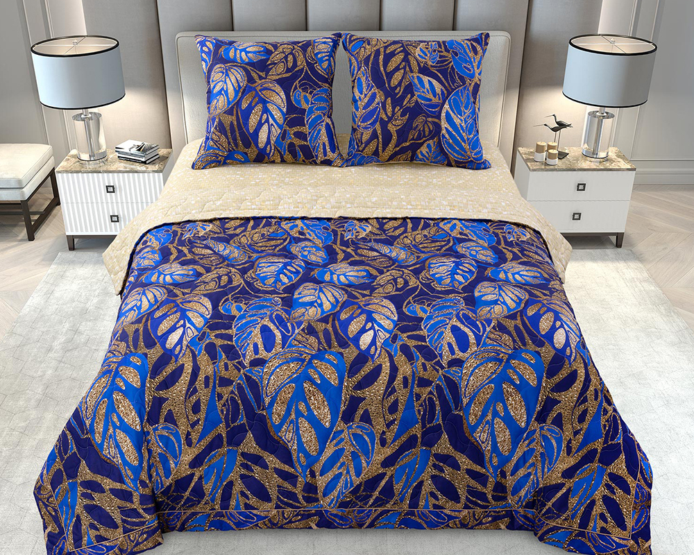 Комплект для сна изготовлен из перкаля. Ткань отличается плотной и тонкой фактурой, высокими эстетическими и практическими качествами, приятна на ощупь и очень комфортна. По прочности перкаль превосходит многие материалы, выполненные из более толстых волокон. Уникальность комплекта для сна заключается в том, что вместо традиционного пододеяльника и наволочек в комплект входит тонкое стеганое одеяло, и стеганые наволочки, выполненные из ткани того же дизайна, что и основной комплект. Преимущества данного комплекта в том, что стёганые изделия практичны в использовании. Заправленные подушки в стеганые наволочки можно использовать как декоративные. А одеяло одновременно полностью справиться с функцией покрывала. Цвет ткани может незначительно отличаться от фото. Характеристики размера 1,5 спальный: Размер наволочек 70х70 (2 шт) (молния) Размер простыни 180х220 (1шт) (без резинки) Размер одеяла 140х205 (1 шт) Характеристики размера 2 спальный с европростыней: Размер наволочек 70х70 (2 шт) (молния) Размер простыни 220х240 (1шт) (без резинки) Размер одеяла 172х205 (1 шт) Характеристики размера Евро: Размер наволочек 70х70 (2 шт) (молния) Размер простыни 220х240 (1шт) (без резинки) Размер одеяла 200х220 (1 шт)