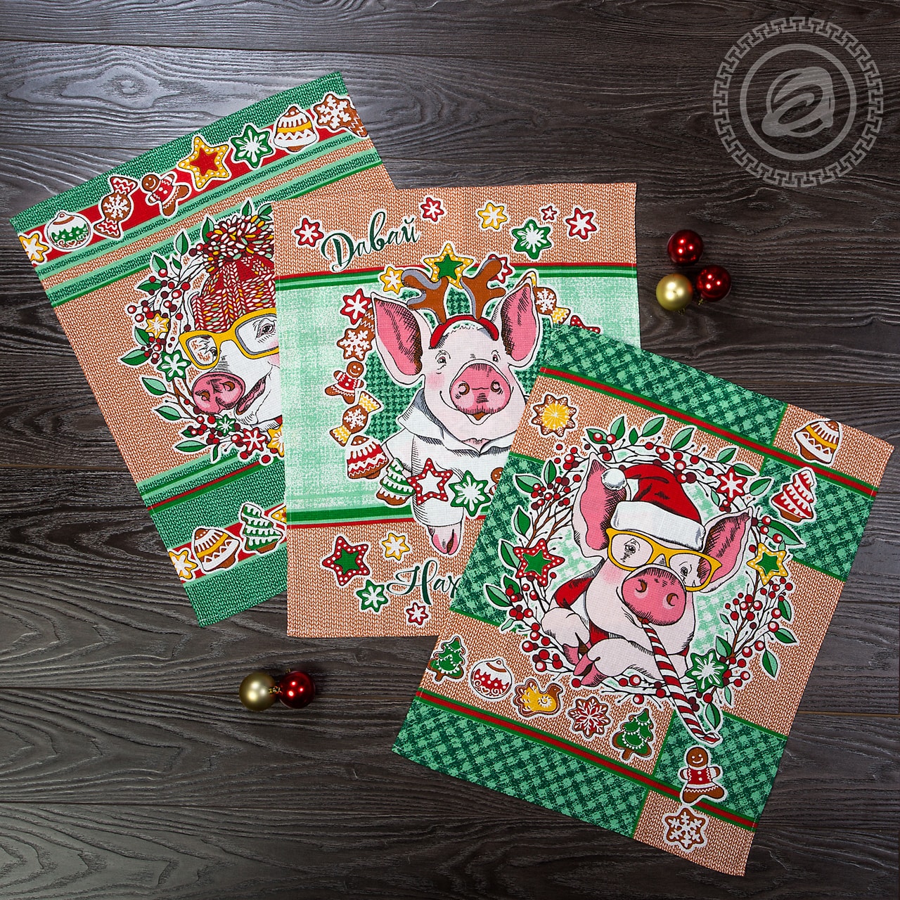 Календарный новый год еще в пути, его герой – поросенок, еще и не думает вступать в своим права. Но тем, кто идет на шаг впереди предоставляется уникальная возможность приобрести новогоднего персонажа уже сейчас. Стоит лишь купить набор кухонных полотенец «Арт Дизайн». Веселые изображения поросят не только поднимут настроение, но и помогут в хозяйстве, при этом не требуя особого ухода. При изготовлении ткани используются только высококачественные материалы и стойкие импортные красители. Вся продукция сертифицирована. В комплекте: 3 полотенца.