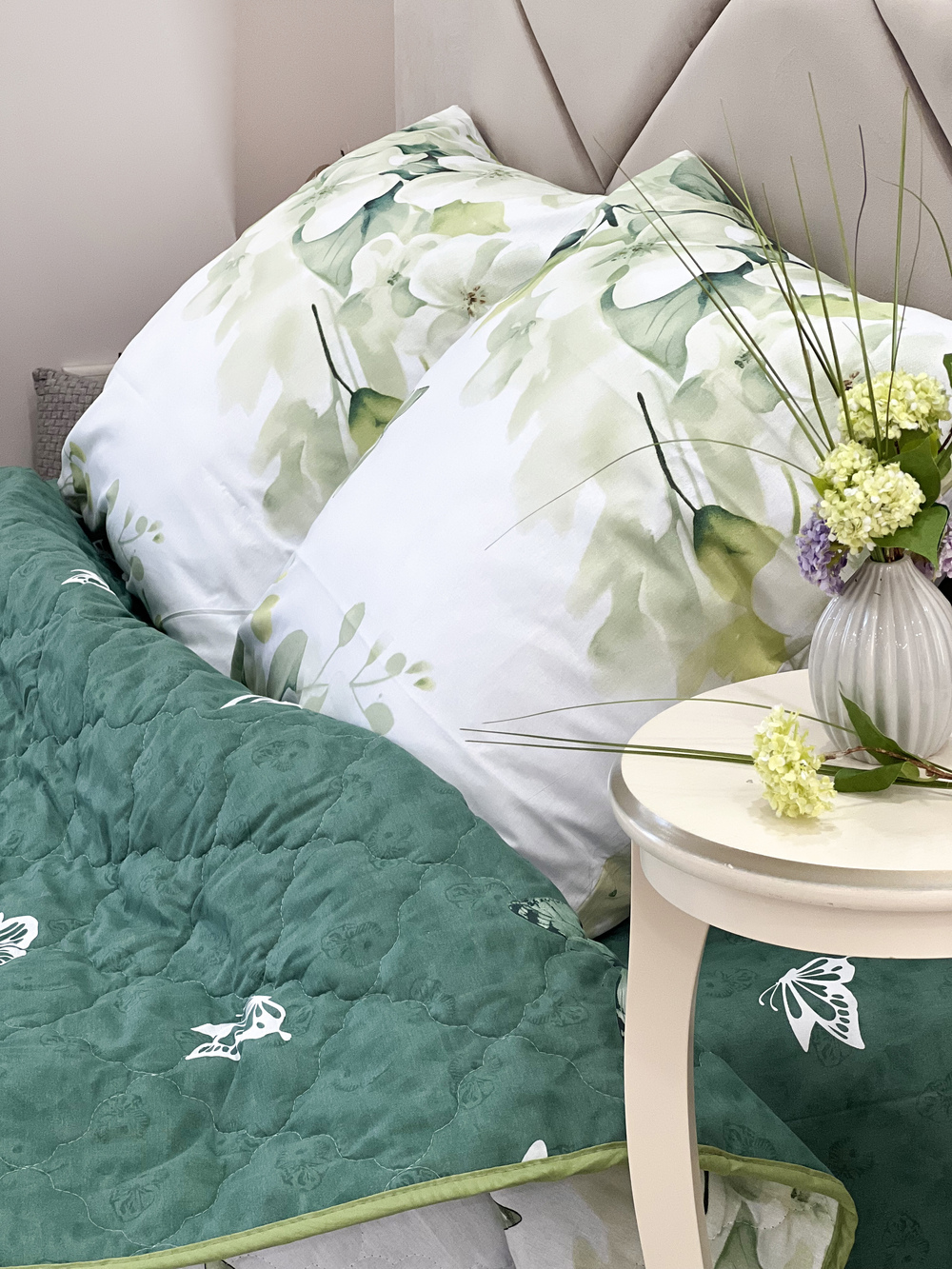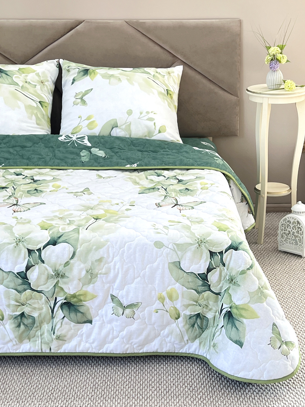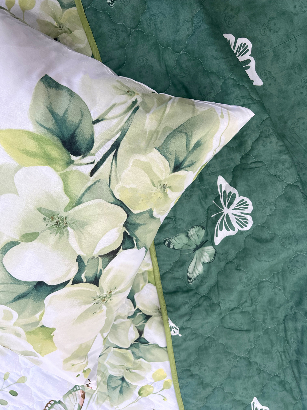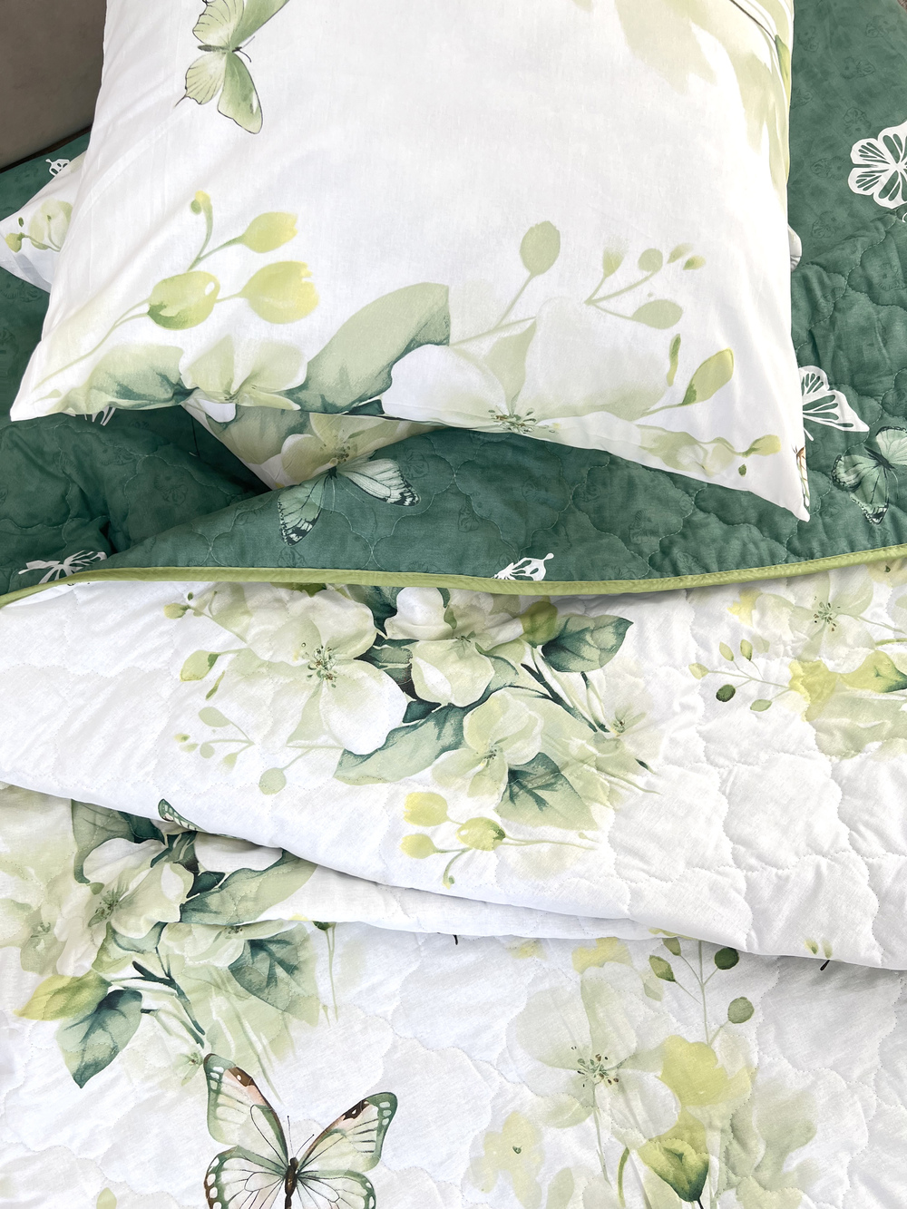 Уникальность набора в том, что в него входят: наволочки, простыня и легкое всесезонное одеяло. Это современное и очень удобное решение, которое идеально подходит тем, кто хочет быстро застилать кровать. Покупая постельные комплекты с одеялом вы экономите на покупке отдельного одеяла. Так же одеяло можно использовать как покрывало, используя его с двух сторон. Комплект легко стирается в обычной машине. Состав комплекта: поплин плотностью 110 г/м2 (100% хлопок), наполнитель - синтепон 150 г/м2 Края одеяла обработаны окантовочным материалом, наволочки клапан Комплектация и размеры: Набор 1,5 сп. - Одеяло 205х142, Простыня 215х150 см (±3 см) 1 шт, Наволочка 70х70 см (±1 см) 2 шт Набор 2 сп. с евро простыней - Одеяло 205х172, Простыня 240х215 см (±3 см) 1 шт. Наволочка 70х70 см (±1 см) 2 шт Набор малое евро - Одеяло 220х205, Простыня 240х215 см (±3 см) 1 шт, Наволочка 70х70 см (±1 см) 2 шт Набор семейный - Одеяло 205х142 см 2 шт; Простыня 240х215 см (±3 см) 1 шт; Наволочка 70х70 см (±1 см) 2 шт Внимание: Цвета материалов на сайте могут незначительно отличаться от реальных из-за особенностей цветопередачи монитора.