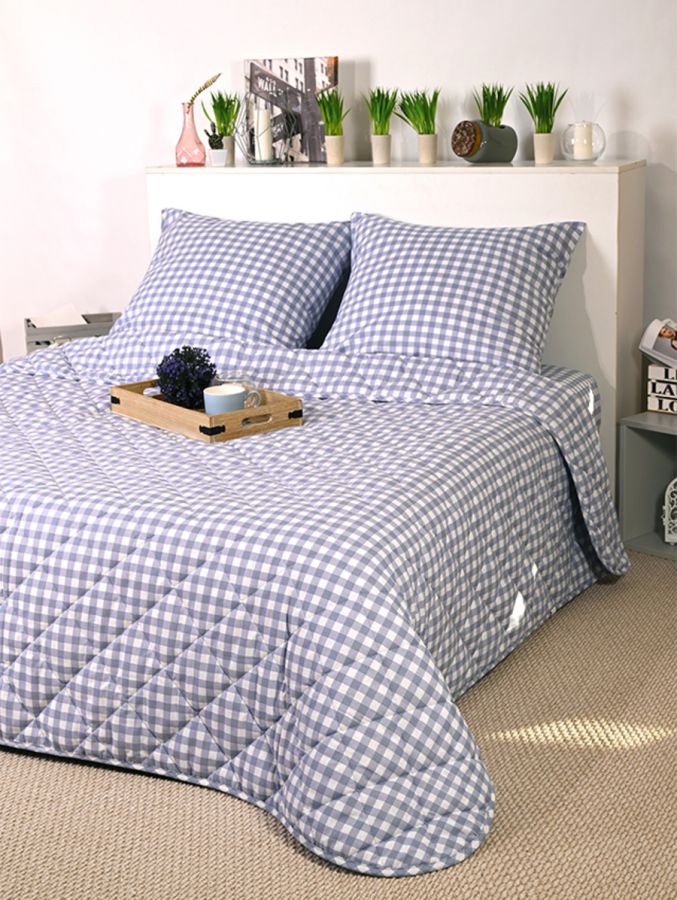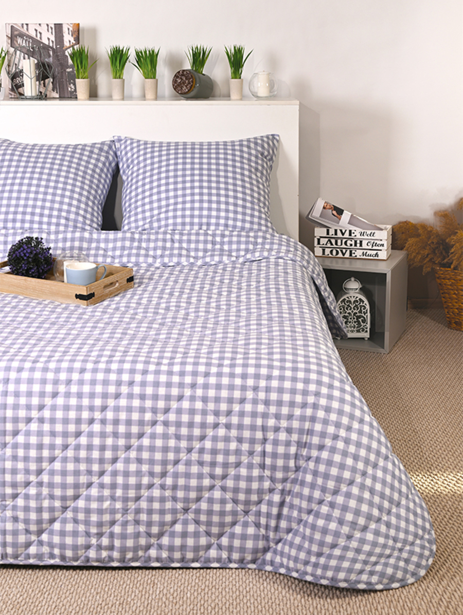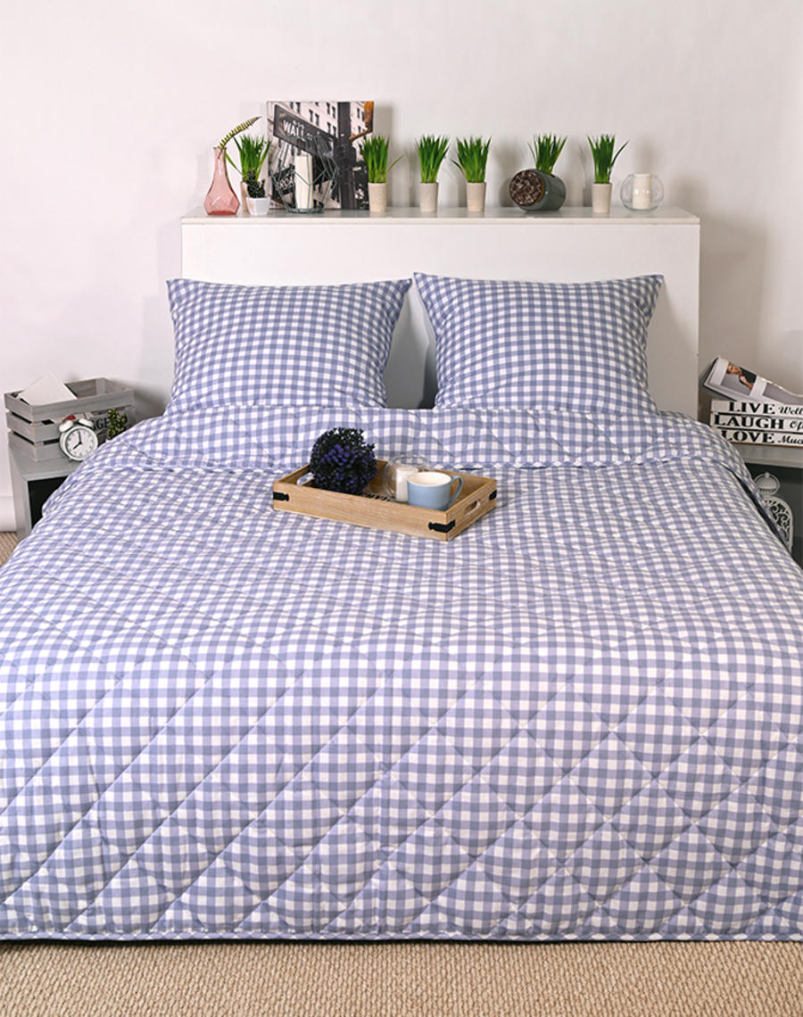 Уникальность набора в том, что в него входят: наволочки, простыня и легкое всесезонное одеяло. Это современное и очень удобное решение, которое идеально подходит тем, кто хочет быстро застилать кровать. Покупая постельные комплекты с одеялом вы экономите на покупке отдельного одеяла. Так же одеяло можно использовать как покрывало, используя его с двух сторон. Комплект легко стирается в обычной машине. Состав комплекта: поплин плотностью 110 г/м2 (100% хлопок), наполнитель - синтепон 150 г/м2 Края одеяла обработаны окантовочным материалом, наволочки клапан Комплектация и размеры: Набор 1,5 сп. - Одеяло 205х142, Простыня 215х150 см (±3 см) 1 шт, Наволочка 70х70 см (±1 см) 2 шт Набор 2 сп. с евро простыней - Одеяло 205х172, Простыня 240х215 см (±3 см) 1 шт. Наволочка 70х70 см (±1 см) 2 шт Набор малое евро - Одеяло 220х205, Простыня 240х215 см (±3 см) 1 шт, Наволочка 70х70 см (±1 см) 2 шт Внимание: Цвета материалов на сайте могут незначительно отличаться от реальных из-за особенностей цветопередачи монитора.