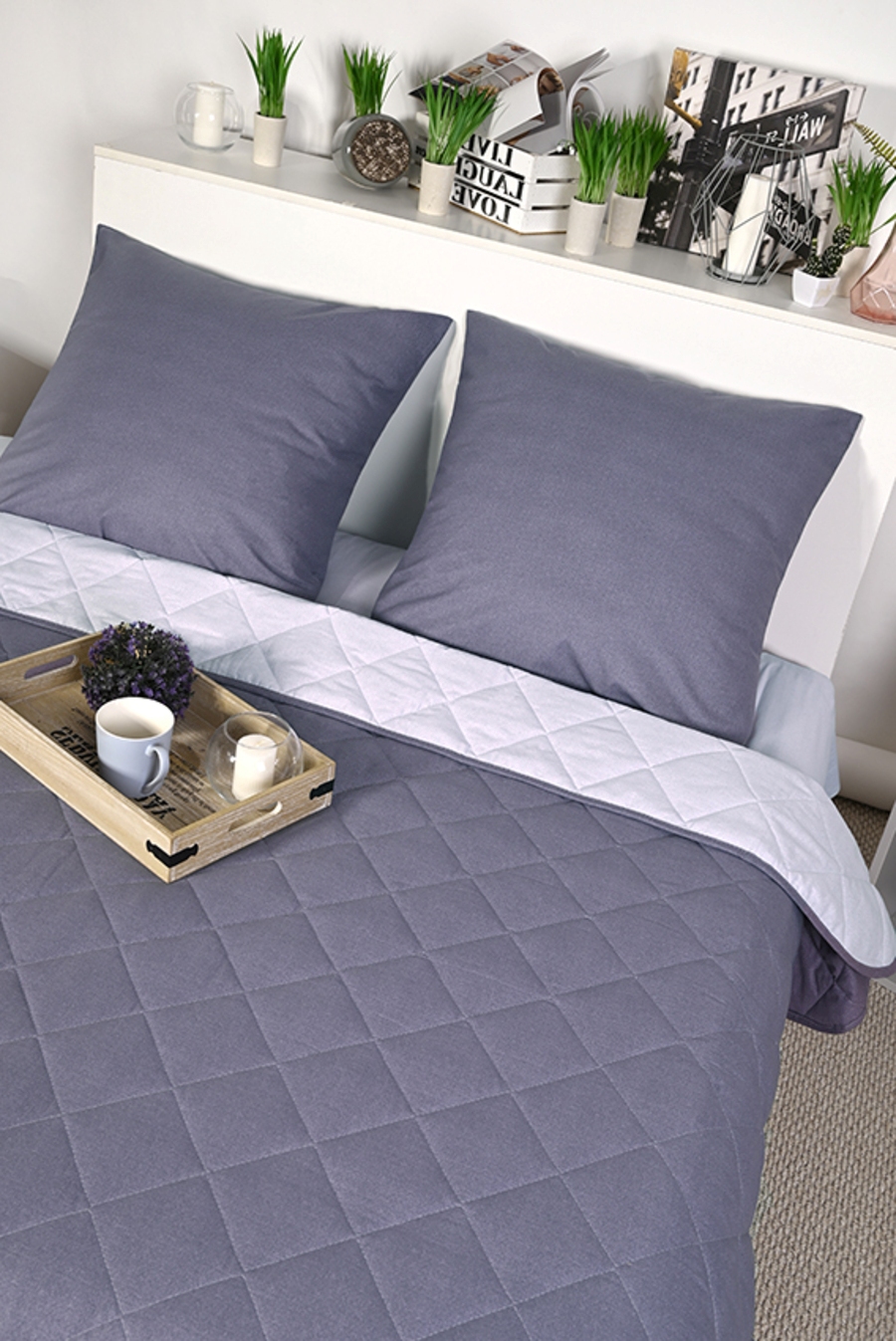 Уникальность набора в том, что в него входят: наволочки, простыня и легкое всесезонное одеяло. Это современное и очень удобное решение, которое идеально подходит тем, кто хочет быстро застилать кровать. Покупая постельные комплекты с одеялом вы экономите на покупке отдельного одеяла. Так же одеяло можно использовать как покрывало, используя его с двух сторон. Комплект легко стирается в обычной машине. Состав комплекта: поплин плотностью 110 г/м2 (100% хлопок), наполнитель - синтепон 150 г/м2 Края одеяла обработаны окантовочным материалом, наволочки клапан Комплектация и размеры: Набор 1,5 сп. - Одеяло 205х142, Простыня 215х150 см (±3 см) 1 шт, Наволочка 70х70 см (±1 см) 2 шт Набор 2 сп. с евро простыней - Одеяло 205х172, Простыня 240х215 см (±3 см) 1 шт. Наволочка 70х70 см (±1 см) 2 шт Набор малое евро - Одеяло 220х205, Простыня 240х215 см (±3 см) 1 шт, Наволочка 70х70 см (±1 см) 2 шт Внимание: Цвета материалов на сайте могут незначительно отличаться от реальных из-за особенностей цветопередачи монитора.