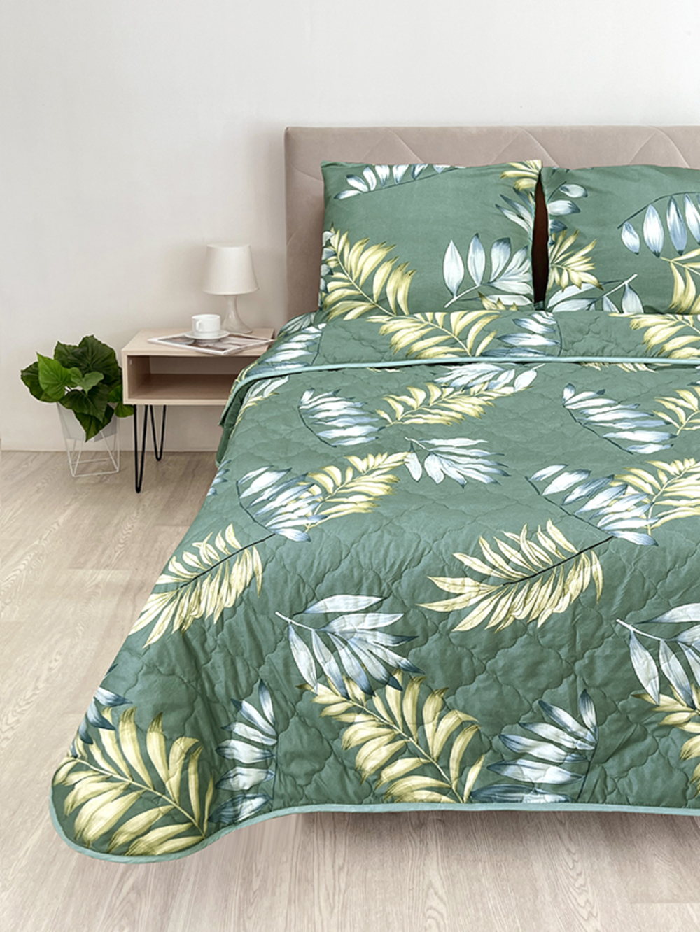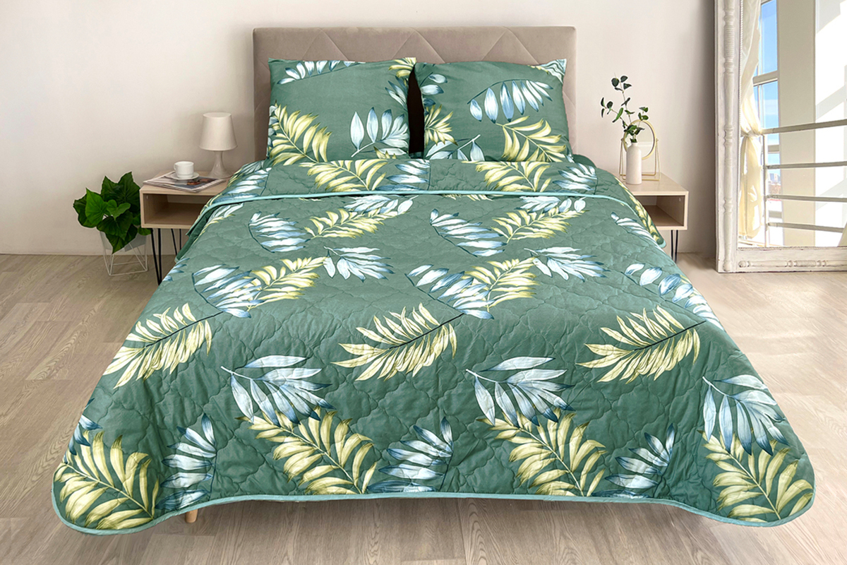 Уникальность набора в том, что в него входят: наволочки, простыня и легкое всесезонное одеяло. Это современное и очень удобное решение, которое идеально подходит тем, кто хочет быстро застилать кровать. Покупая постельные комплекты с одеялом вы экономите на покупке отдельного одеяла. Так же одеяло можно использовать как покрывало. Комплект легко стирается в обычной машине. Состав комплекта: Полисатин 90 г/м2, одеяло - наполнитель синтепон 150 г/м2. Комплектация и размеры: Набор 1,5 сп. - Одеяло 205х142, Простыня 215х150 см (±3 см) 1 шт, Наволочка 70х70 см (±1 см) 2 шт Набор 2 сп. евро - Одеяло 205х172, Простыня 240х215 см (±3 см) 1 шт. Наволочка 70х70 см (±1 см) 2 шт Набор малое евро - Одеяло 220х205, Простыня 240х215 см (±3 см) 1 шт, Наволочка 70х70 см (±1 см) 2 шт Внимание: Цвета материалов на сайте могут незначительно отличаться от реальных из-за особенностей цветопередачи монитора.