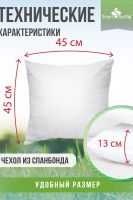 ЛАЙТ КОМПЛЕКТ ВНУТРЕННИХ ПОДУШЕК ИЗ СПАНБОНДА: ИДЕАЛЬНАЯ ОСНОВА ДЛЯ ВАШЕГО УЮТА Найдите идеальную основу для создания стильного интерьера! ЛАЙТ комплект внутренних подушек из спанбонда — это два универсальных наполнителя размером 45?45 см, которые станут невидимой, но важной основой вашего декора. Больше никаких полупустых чехлов и бесформенных подушек — только идеальная форма и комфорт. ПОЧЕМУ ИМЕННО ВНУТРЕННИЕ ПОДУШКИ ИЗ СПАНБОНДА? БЕЗУПРЕЧНАЯ ФОРМА Подушки сохраняют идеальную квадратную форму 45?45 см на весь срок службы. Они не сминаются и не деформируются даже при активном использовании, обеспечивая эстетичный вид внешнего чехла. ЛЕГКОСТЬ И ГИГИЕНИЧНОСТЬ Спанбонд — дышащий и гипоаллергенный материал, который не впитывает влагу и запахи. Ваш декор останется свежим надолго, а уход за подушками не требует специальных усилий. УНИВЕРСАЛЬНОСТЬ И СОВМЕСТИМОСТЬ Стандартный размер 45?45 см делает эти подушки идеальными для большинства декоративных чехлов. Меняйте настроение интерьера когда захотите — основа всегда останется прежней! КЛЮЧЕВЫЕ ПРЕИМУЩЕСТВА: ? Идеальная основа для декоративных чехлов ? Сохранение формы долгое время ? Гигиеничный и безопасный материал ? Универсальный размер 45?45 см ? Простота в уходе и эксплуатации ДЛЯ КОГО ЭТОТ КОМПЛЕКТ? Для ценителей частой смены интерьера Для владельцев дизайнерских чехлов Для тех, кто хочет освежить старые подушки Для создания профессионального декора УХОД: Регулярно встряхивайте подушки для сохранения формы. При необходимости протрите поверхность влажной тканью или обработайте пылесосом. СОЗДАЙТЕ ИДЕАЛЬНЫЙ ДЕКОР С ЛАЙТ КОМПЛЕКТОМ — ПРАКТИЧНОСТЬ И СТИЛЬ В КАЖДОЙ ДЕТАЛИ!