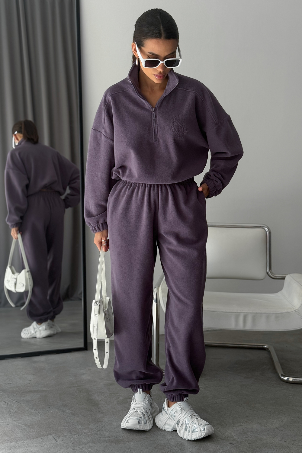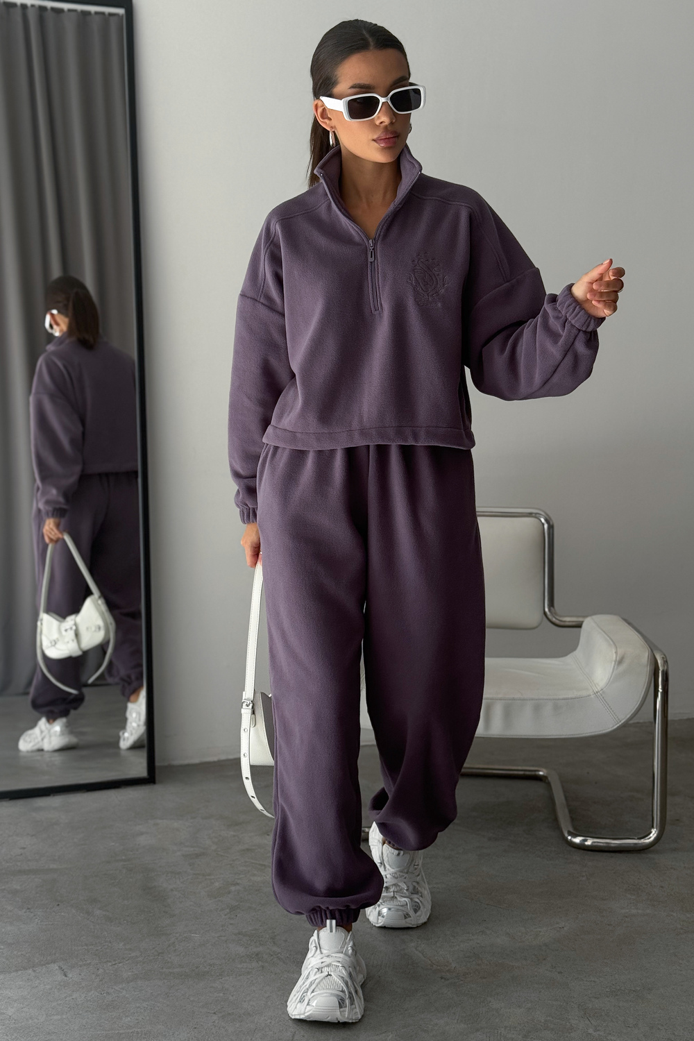 Модный женский спортивный флисовый костюм Cosmos, который станет незаменимым элементом вашего гардероба в осенне-зимний период. Костюм женский брючный флисовый теплый на молнии это именно то, что вы искали. Стильный и мягкий зип комплект включает в себя удобную халф зип толстовку с V- образным вырезом и широкие брюки, идеально подходящие как для активных прогулок, так и для расслабленного отдыха дома. Костюм на флисе изготовлен из качественного материала и достаточно утепленный. Материал мягкий и теплый, обеспечивает максимальный комфорт. Оверсайз покрой скрывает недостатки, делая силуэт стройным!