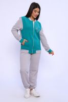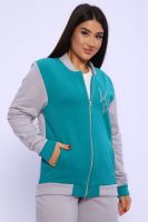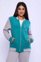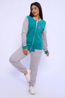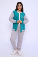 Костюм женский молодежный - бомбер с брюками - выполнен из футера 3-нитки петля с обработкой Софт Браш. Бомбер на молнии, отделка в цвет брюк, воротник-стойка, в боках карманы, на левой полочке оригинальный принт, рукава на резинке. Брюки с карманами, пояс на широкой резинке, низ брюк также на резинке. Костюм очень комфортный и удобный, идеально подойдет для прогулок и отдыха.