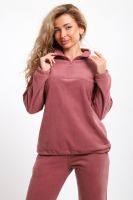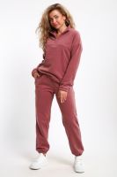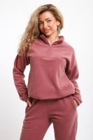 Костюм женский флисовый состоит из толстовки и брюк. Толстовка с кокеткой, на молнии, с воротником-стойкой, рукав спущенный внизу на резинке. Брюки с карманами, внизу на резинке. Костюм мягкий, теплый, удобный, идеально подойдет для прогулок и отдыха в прохладное время года. Молния может отличаться по цвету.