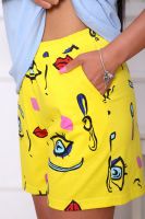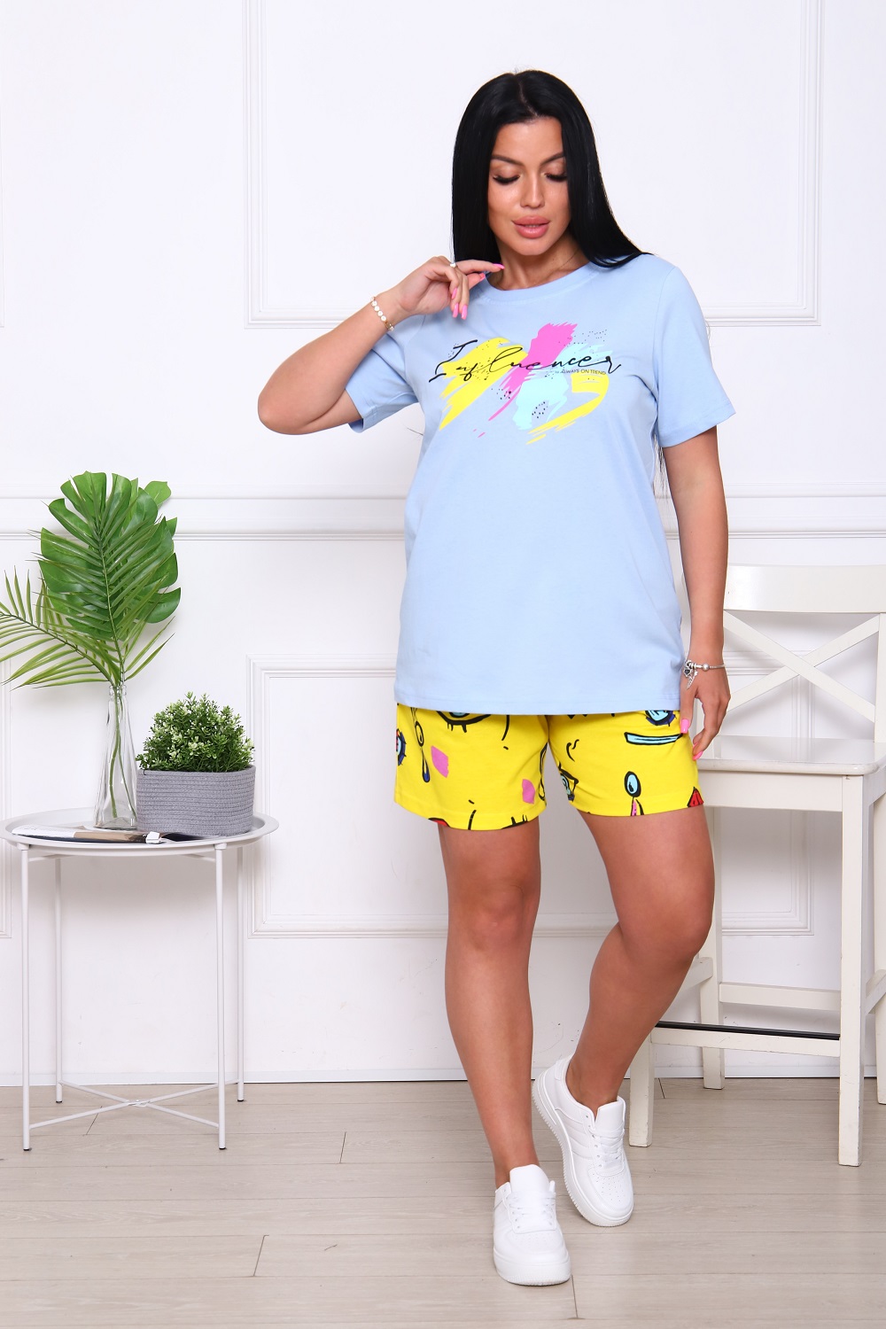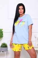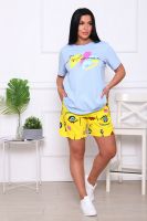 Костюм женский с короткими спущенными рукавами и принтом на полочке и шорты с двумя боковыми карманами