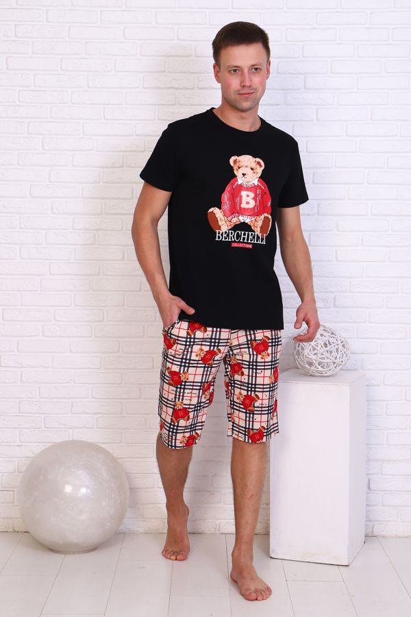 Мужская пижама является идеальным вариантом для сна и отдыха, а также прекрасной подойдет в виде домашней одежды. Домашний мужской костюм приятен к телу, а благодаря прямому и свободному крою не сковывает движения. Пижама мужская с шортами и футболкой прямого силуэта. Выполнена из 100% хлопка.