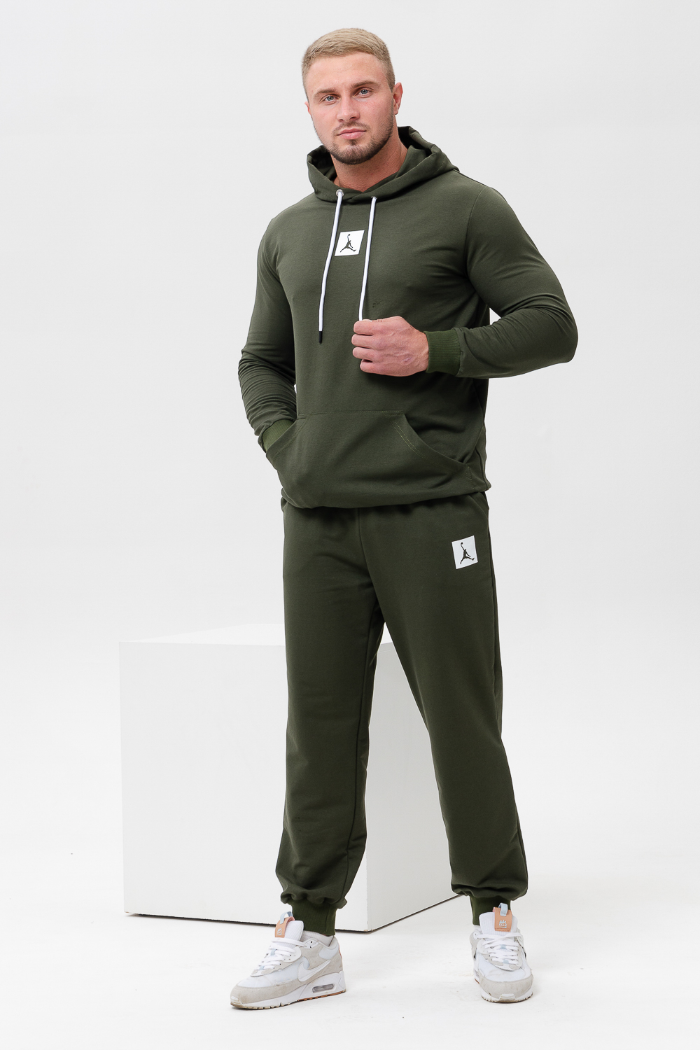 "Джордан". Стильный, однотонный классический спортивный костюм отлично подойдет для тренировок дома и игр на улице. Этот модный, мягкий трикотажный костюм с прямыми и аккуратными швами. Толстовка прямого силуэта с двойным капюшоном и карманом кенгуру. Брюки на манжете с карманами в боковых швах.