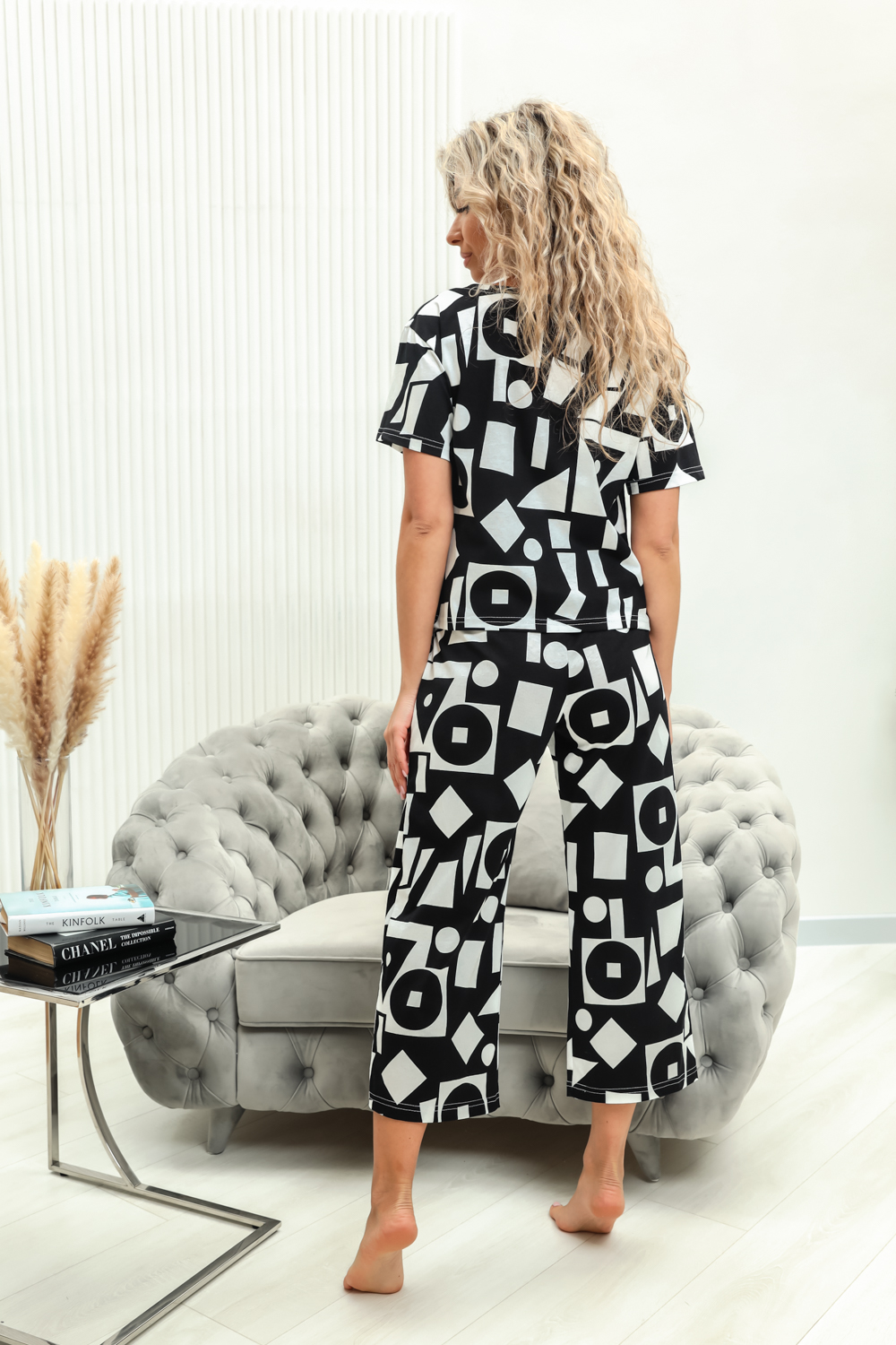 Домашний комплект с брюками - кюлотами и футболкой. Брюки с карманами. Длина 7/8. Футболка с коротким рукавом прямого силуэта.