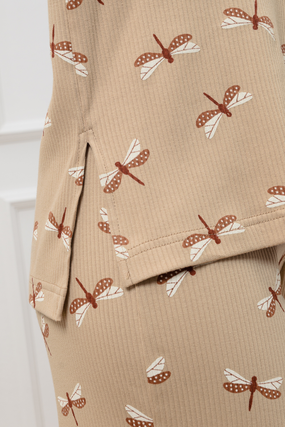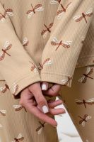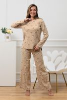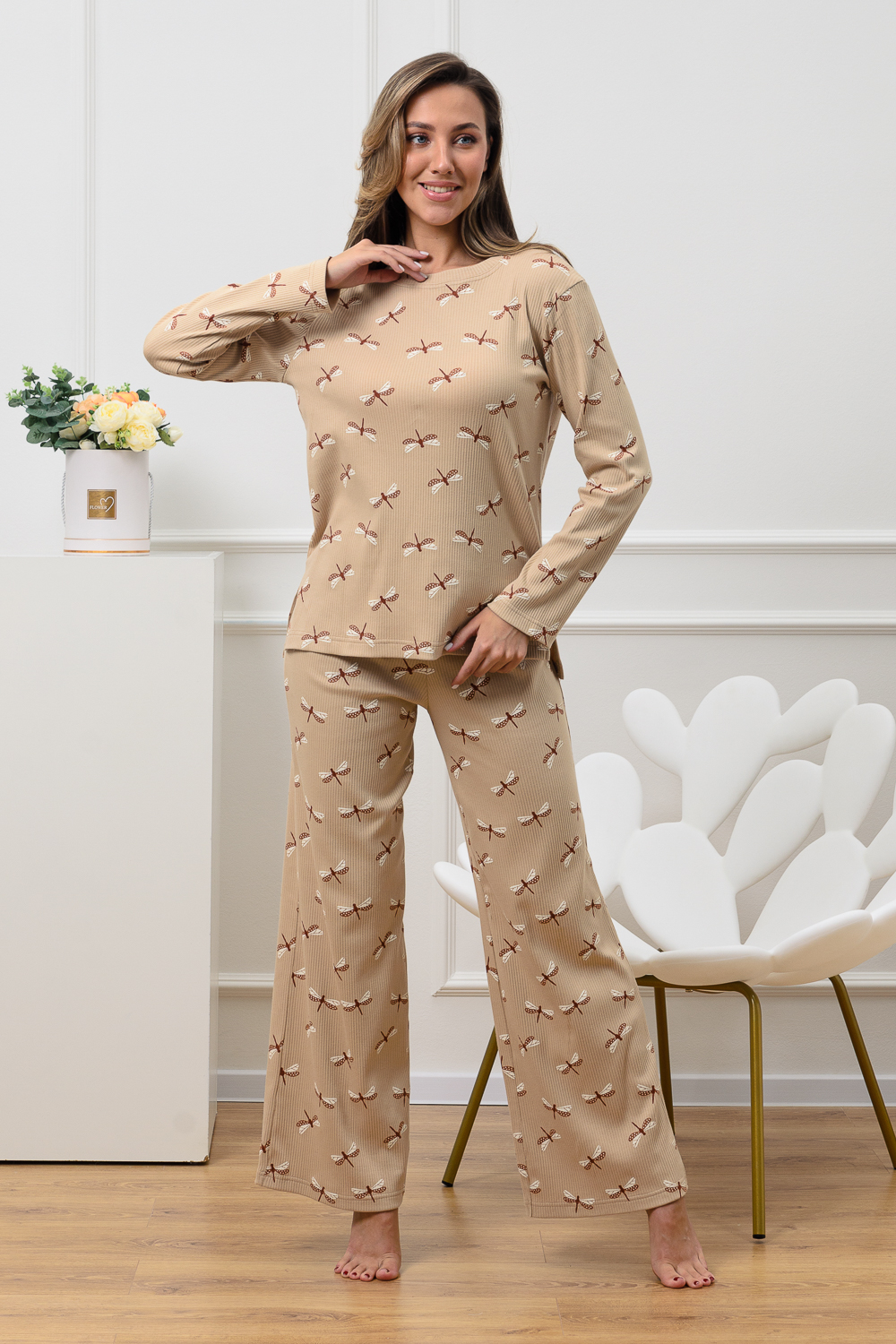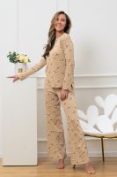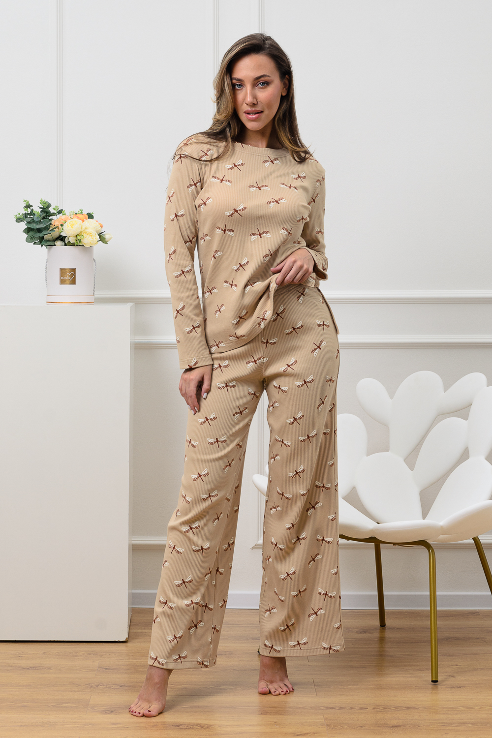 Красивый, стильный, уютный домашний костюм состоящий из брюк и кофты с длинным рукавом (лонгслив). Брюки свободные, широкие. Цельнокроеный пояс брюк с комфортной широкой резинкой имеет аккуратный вид за счёт обработки на многоигольной поясной машине. Лонгслив свободного кроя с разрезами по бокам (спинка длиннее переда) имеет полноценный длинный рукав; округлая горловина кофты обработана планкой и отстрочкой. Комплект выполнен из высококачественного хлопкового полотна (качество пенье) с плетением "в рубчик", так называемым "лапша", которая остаётся в тренде уже не первый сезон. Способ переплетения нитей и структура самих хлопковых волокон придают трикотажному полотну отличную впитываемость и хорошую воздухопроницаемость. Ткань отличается мягкостью при высокой плотности, вещи из неё нежные и приятные на ощупь и внешне привлекательны. Наличие лайкры прибавляет эластичности. Благодаря особенностям материала создаётся стильный вид. В таком ансамбле можно принимать внезапно пришедших гостей. Универсальный фасон, создающий модный образ, подойдёт как молодым девушкам, так и дамам солидного возраста.
