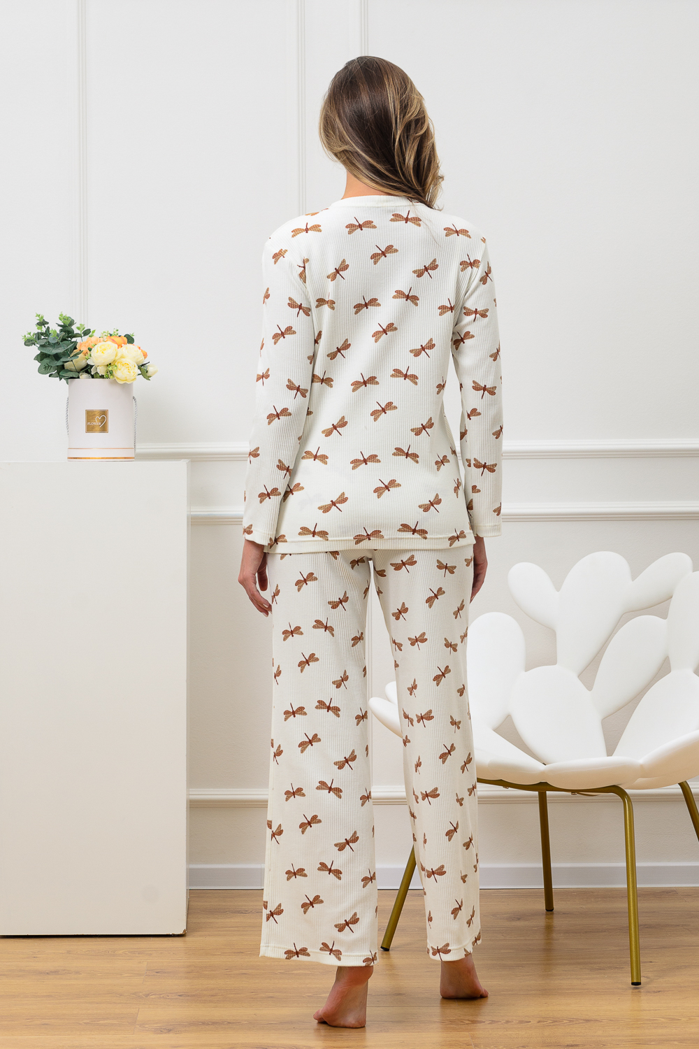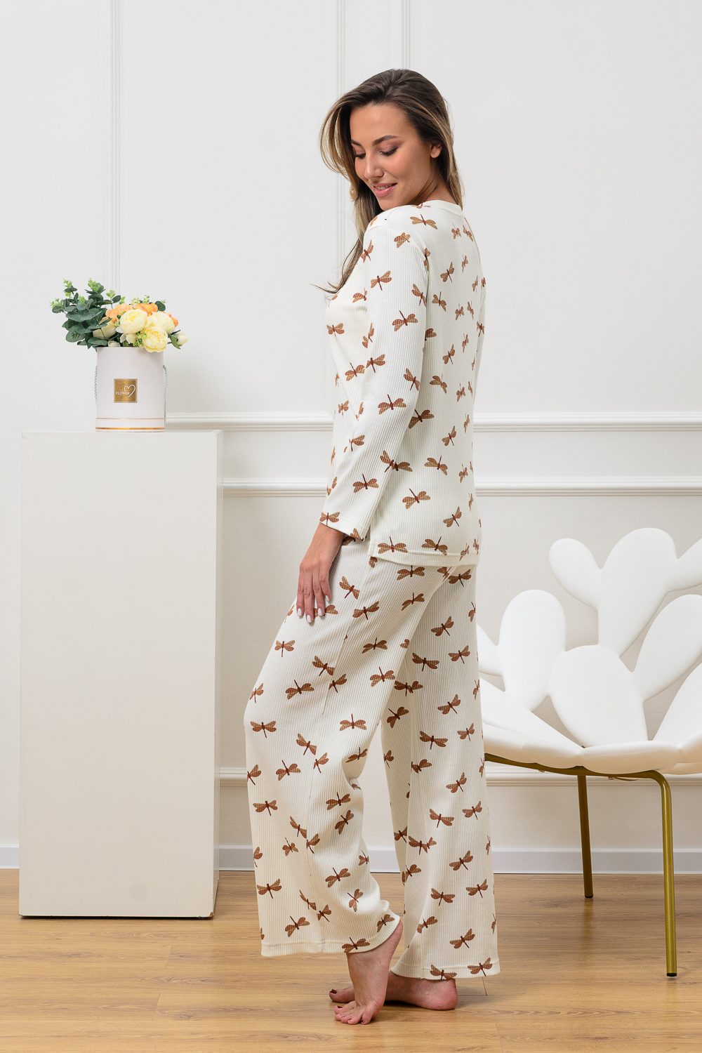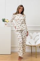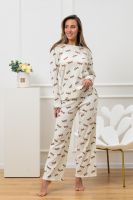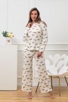 Красивый, стильный, уютный домашний костюм состоящий из брюк и кофты с длинным рукавом (лонгслив). Брюки свободные, широкие. Цельнокроеный пояс брюк с комфортной широкой резинкой имеет аккуратный вид за счёт обработки на многоигольной поясной машине. Лонгслив свободного кроя с разрезами по бокам (спинка длиннее переда) имеет полноценный длинный рукав; округлая горловина кофты обработана планкой и отстрочкой. Комплект выполнен из высококачественного хлопкового полотна (качество пенье) с плетением "в рубчик", так называемым "лапша", которая остаётся в тренде уже не первый сезон. Способ переплетения нитей и структура самих хлопковых волокон придают трикотажному полотну отличную впитываемость и хорошую воздухопроницаемость. Ткань отличается мягкостью при высокой плотности, вещи из неё нежные и приятные на ощупь и внешне привлекательны. Наличие лайкры прибавляет эластичности. Благодаря особенностям материала создаётся стильный вид. В таком ансамбле можно принимать внезапно пришедших гостей. Универсальный фасон, создающий модный образ, подойдёт как молодым девушкам, так и дамам солидного возраста.