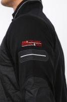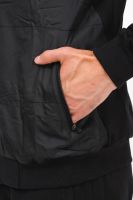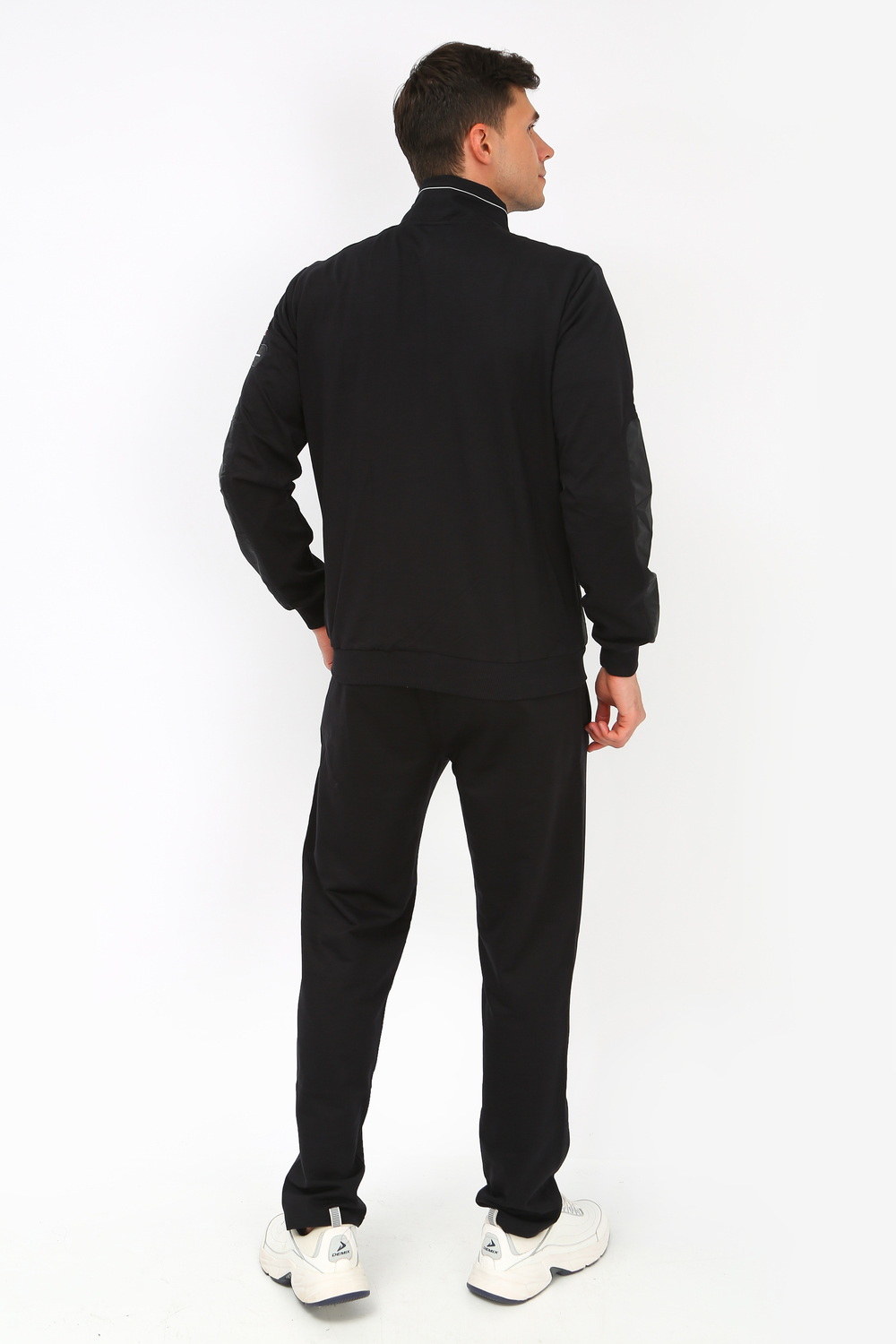 Спортивный мужской костюм. Кофта на молнии, спереди и на рукавах декоративная вставка из плащевки, сбоку вышивка с надписью. Воротник - стойка, низ кофты и рукава на резинке. Брюки прямого кроя, карманы на молнии. Турецкая ткань.