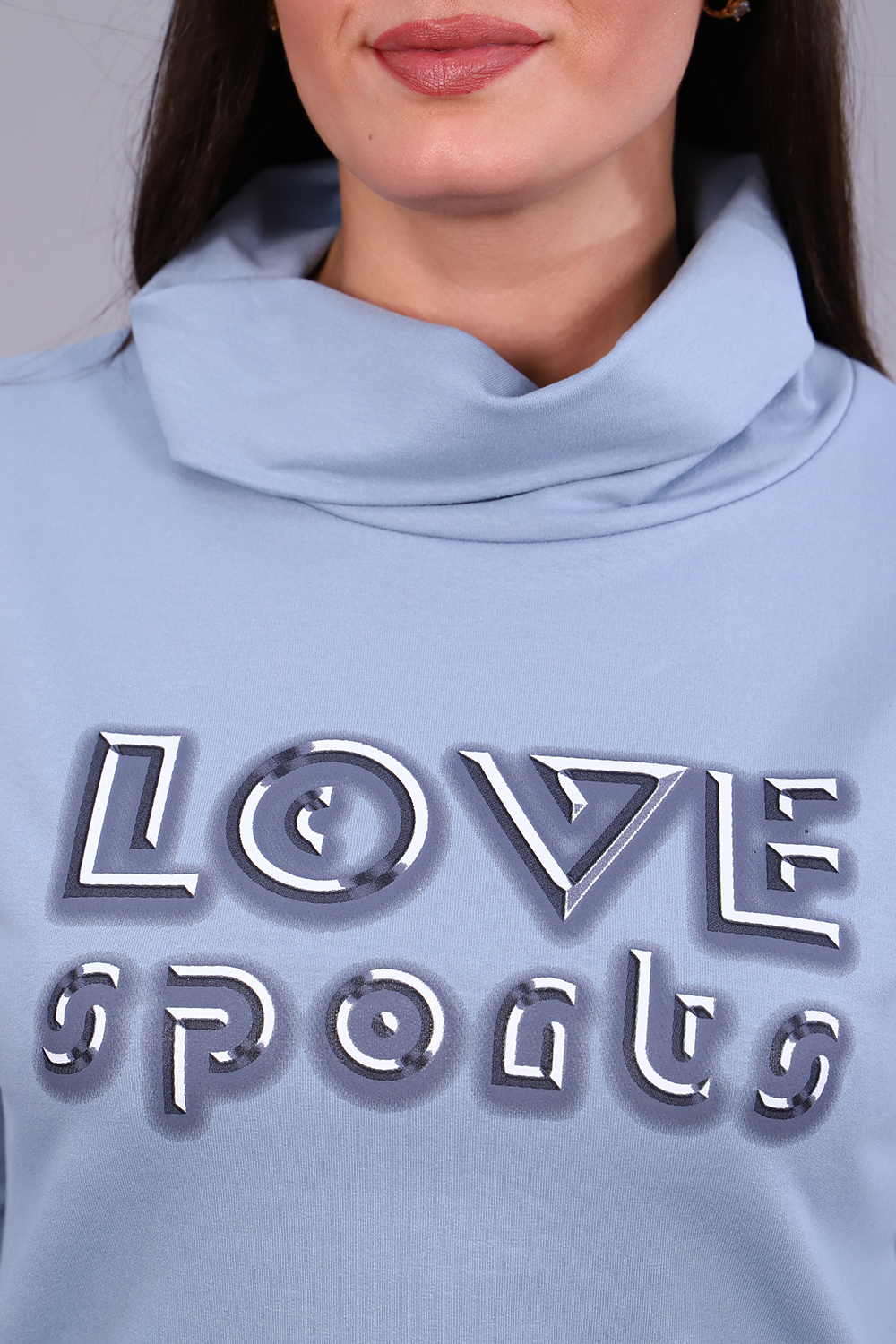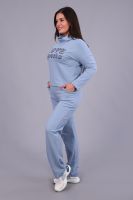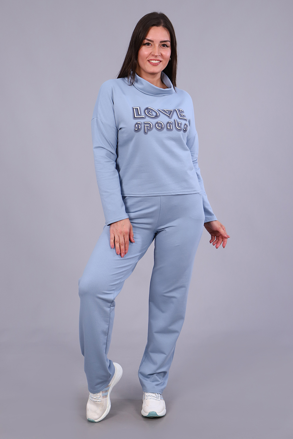 Молодёжный костюм с 3Д принтом из футера 2-х нитки с лайкрой. Толстовка укороченная, спущенное плечо, длинный рукав, шикарный воротник-хомут. Брюки на распошитом поясе, прямые с удобными карманами. Костюм в спортивном стиле комфортный, практичный, приятный к телу для дома, активного отдыха, прогулок.