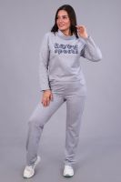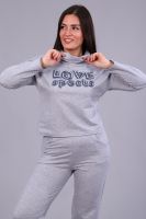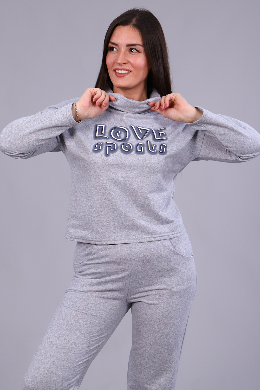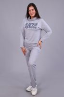 Молодёжный костюм с 3Д принтом из футера 2-х нитки с лайкрой. Толстовка укороченная, спущенное плечо, длинный рукав, шикарный воротник-хомут. Брюки на распошитом поясе, прямые с удобными карманами. Костюм в спортивном стиле комфортный, практичный, приятный к телу для дома, активного отдыха, прогулок.