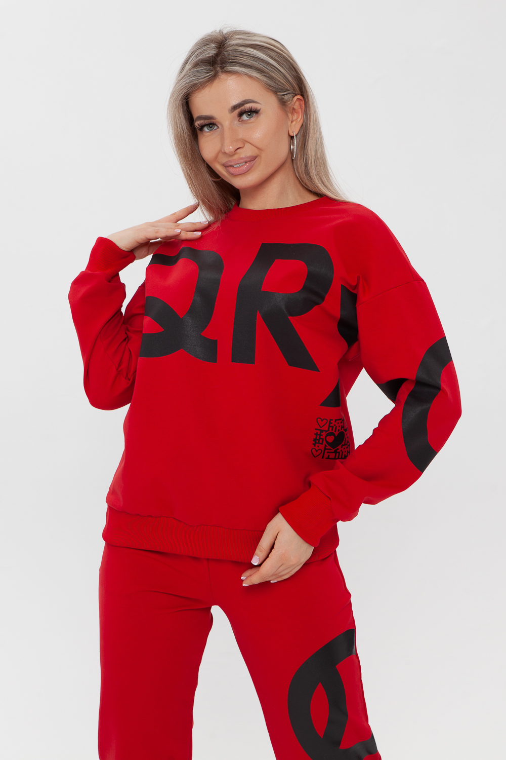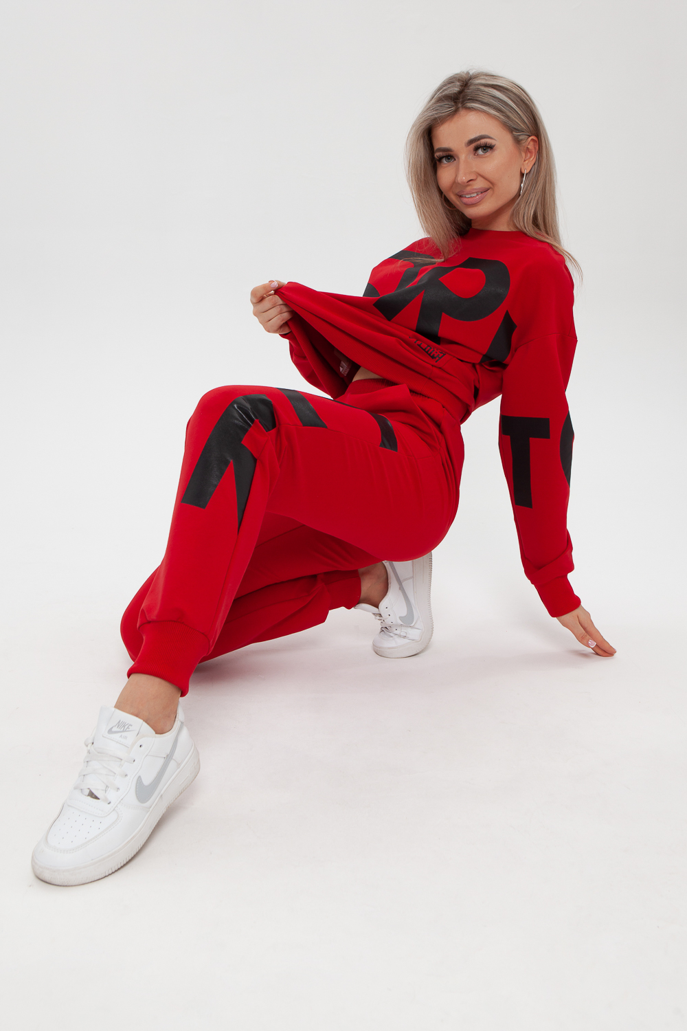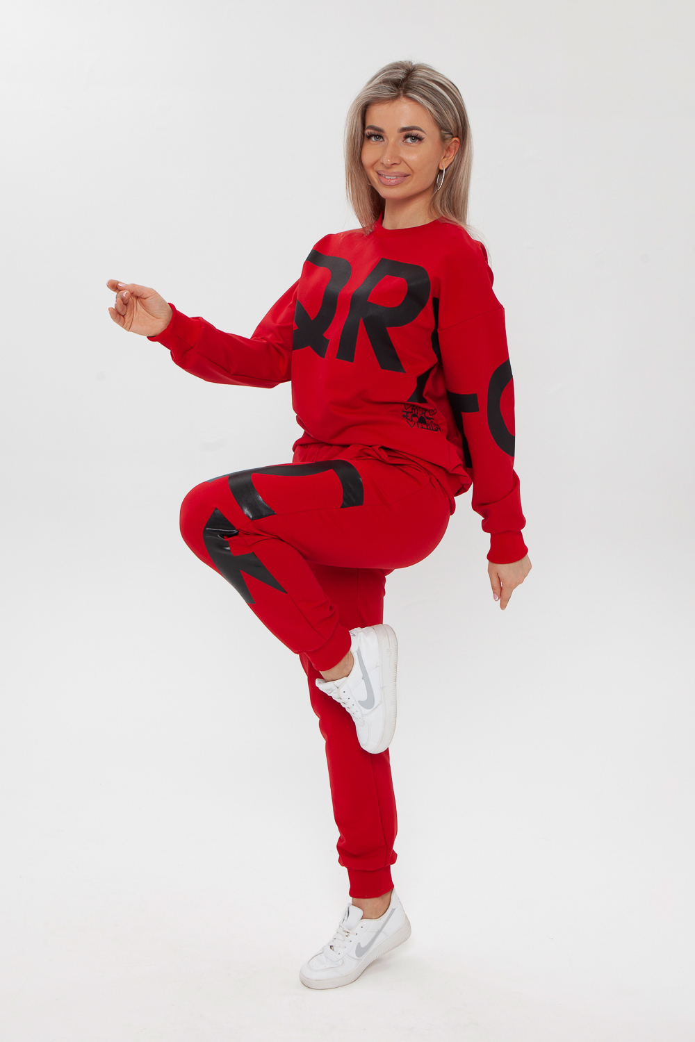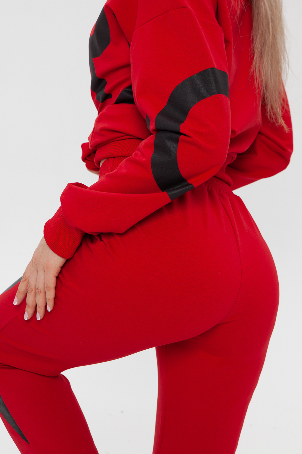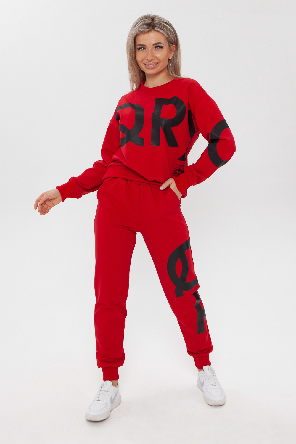 Женский костюм с брюками и толстовкой. Материал футер 2-х нитка с лайкрой. По все длине брюк и толстовки печать. Толстовка с манжетами, по низу брюк резинка.