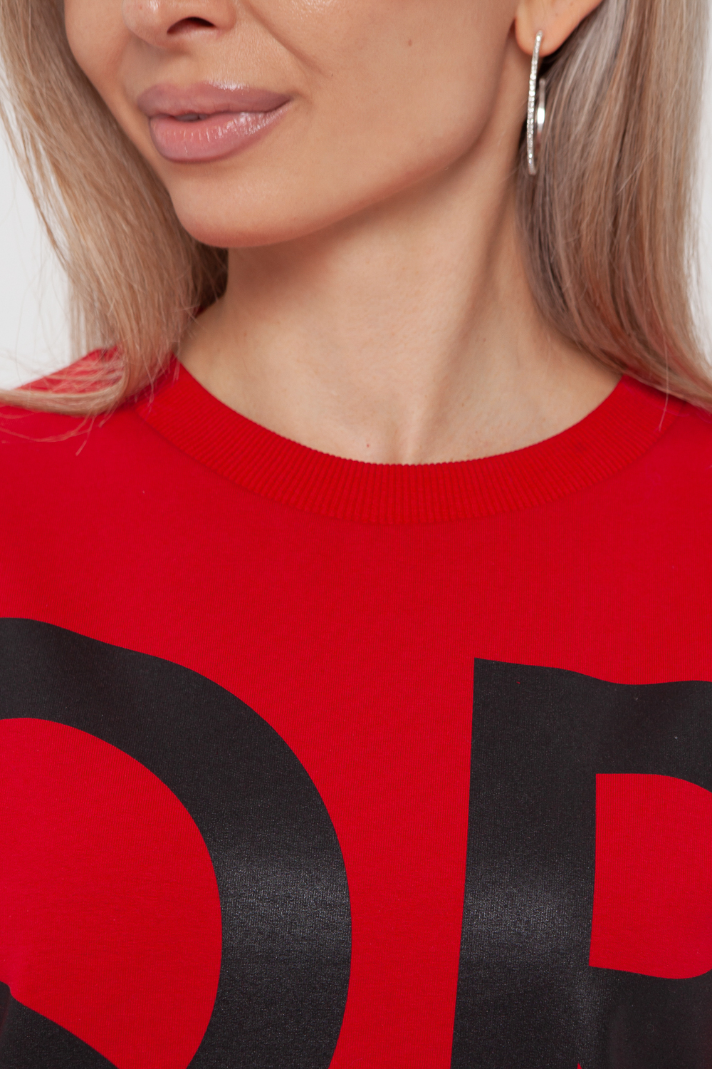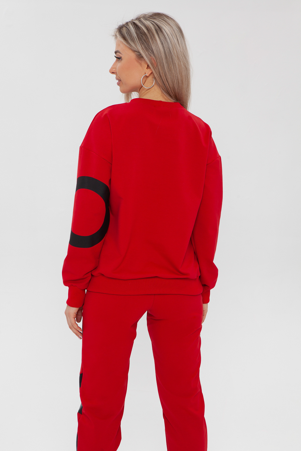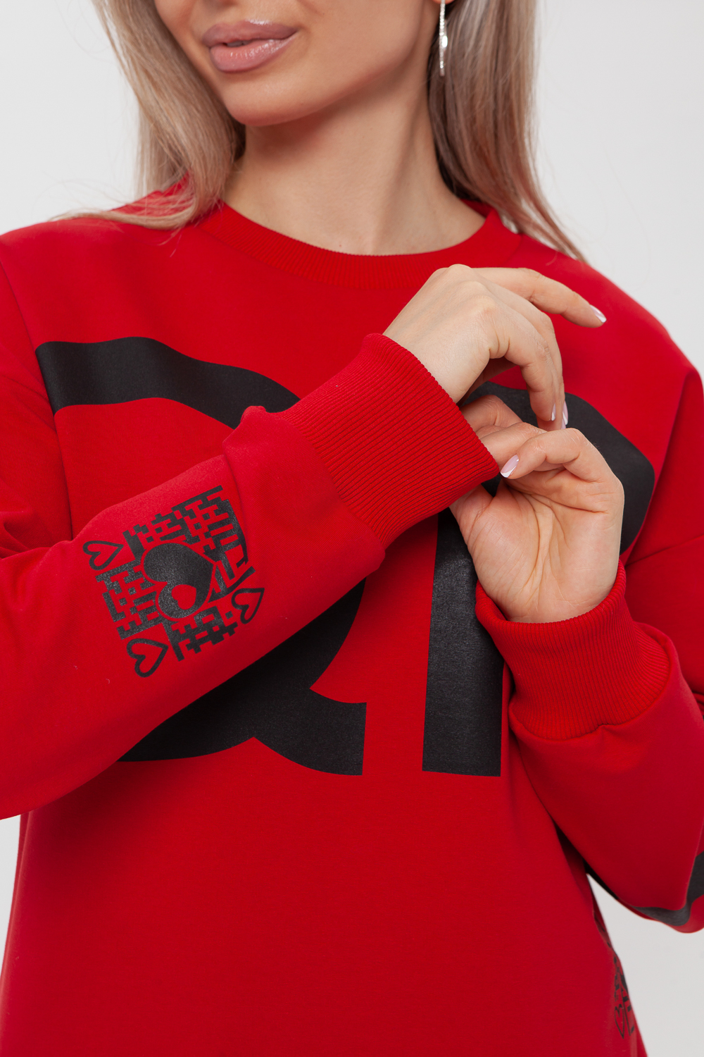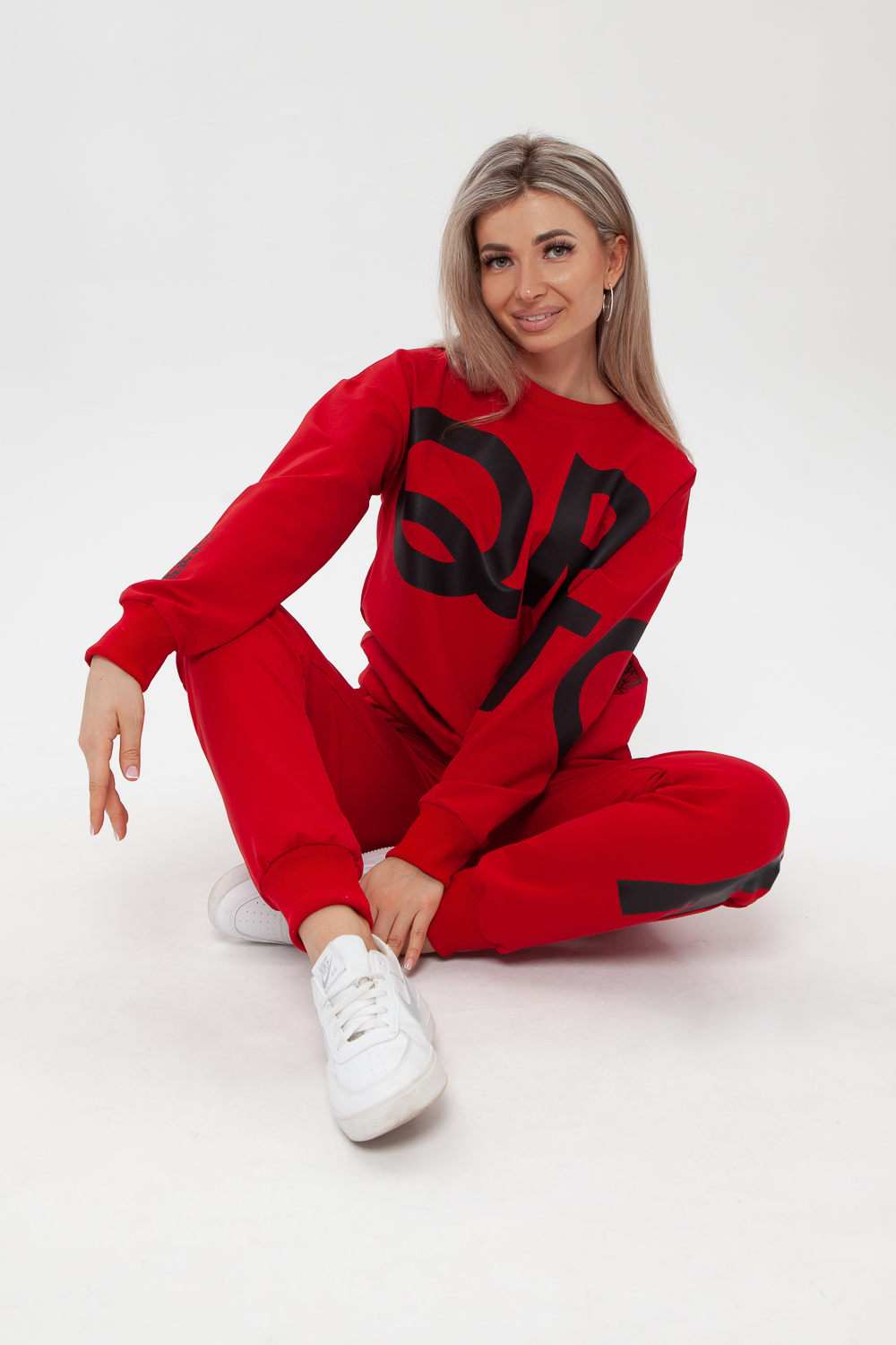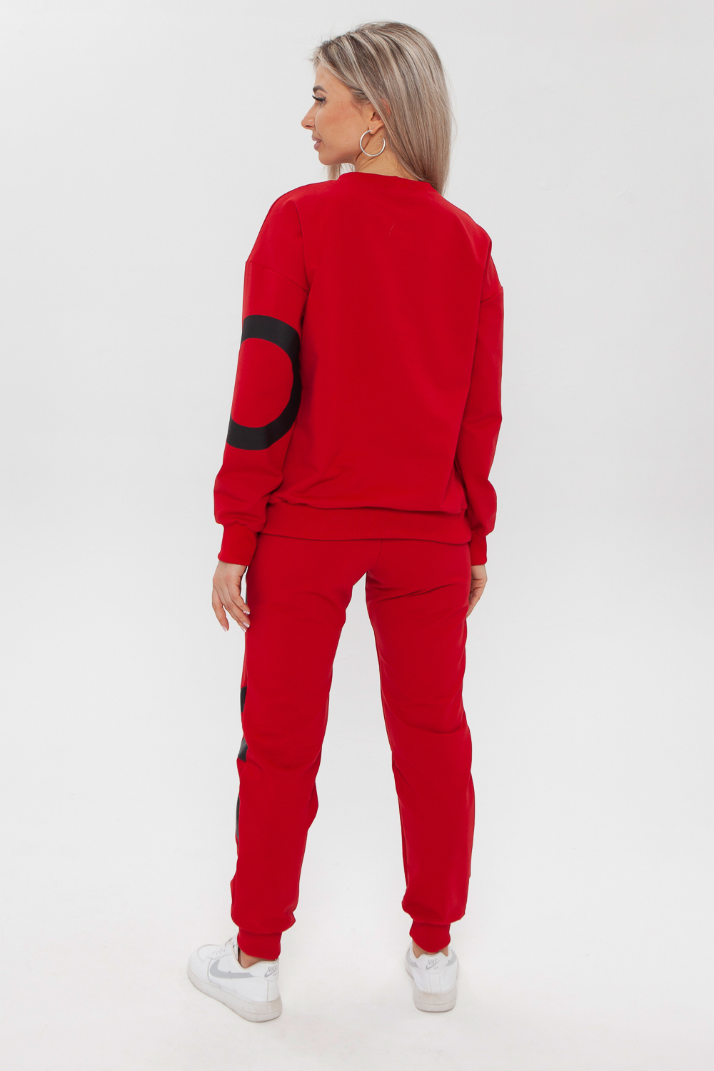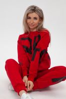 Женский костюм с брюками и толстовкой. Материал футер 2-х нитка с лайкрой. По все длине брюк и толстовки печать. Толстовка с манжетами, по низу брюк резинка.
