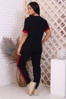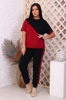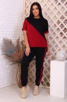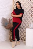 Костюм женский - туника со спущенным рукавом и контрастными вставками, свободный крой, брюки без карманов, по бокам лампасы