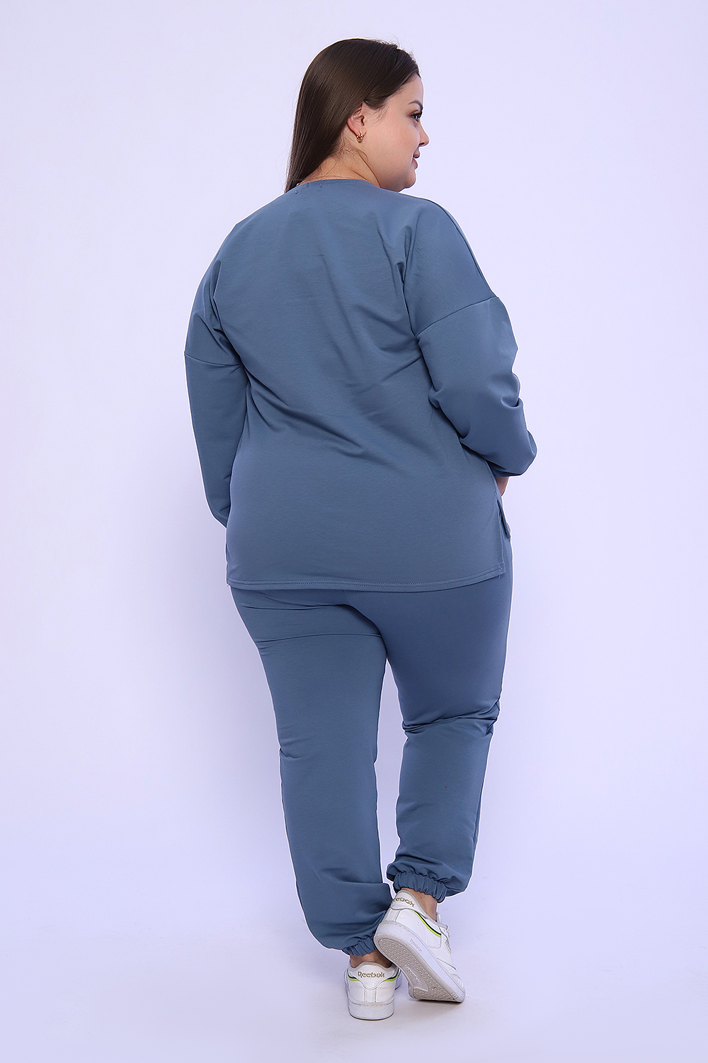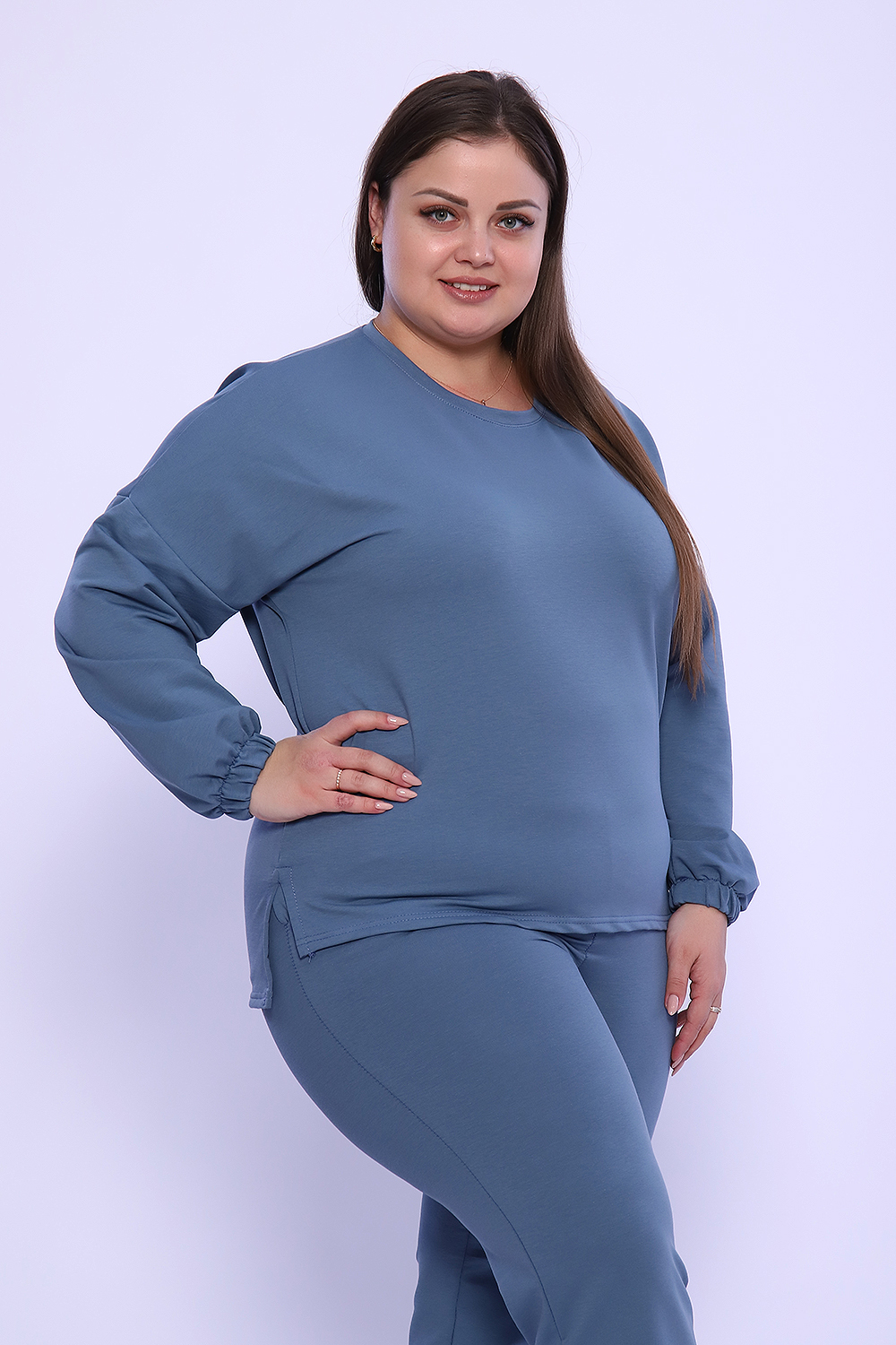 Повседневный наряд для шикарных женщин, толстовка с длинным рукавом на резинке, разрезы по бокам, брюки с карманами, резинка внизу, пояс обработан на поясной машине.
