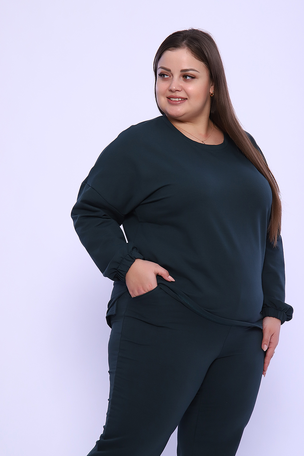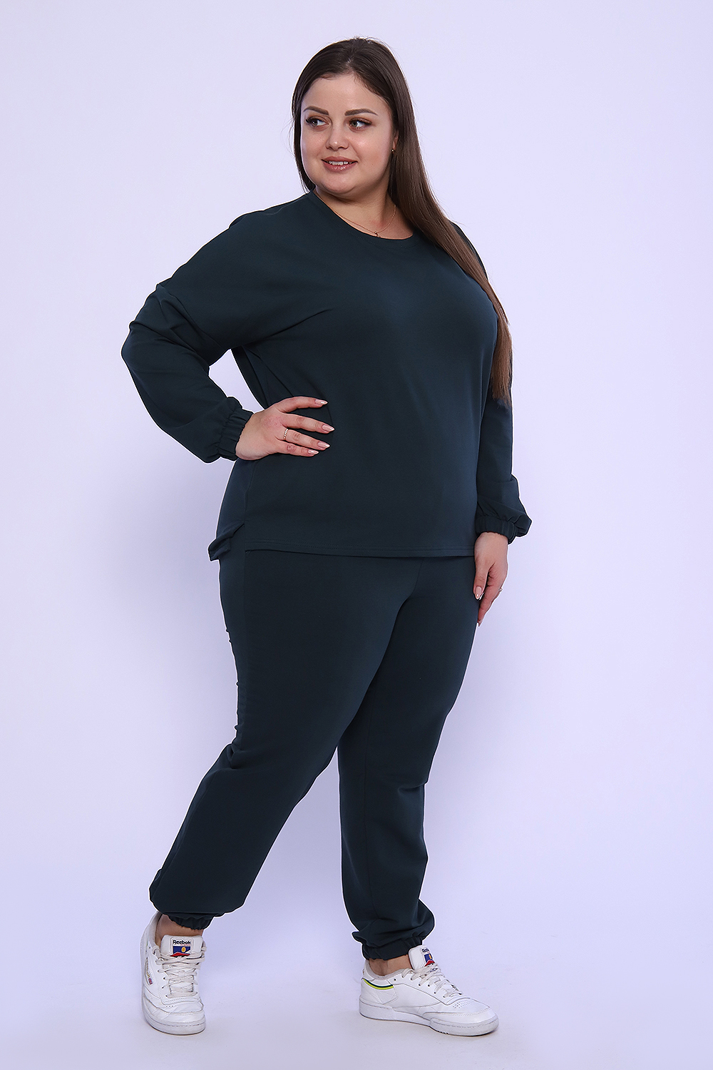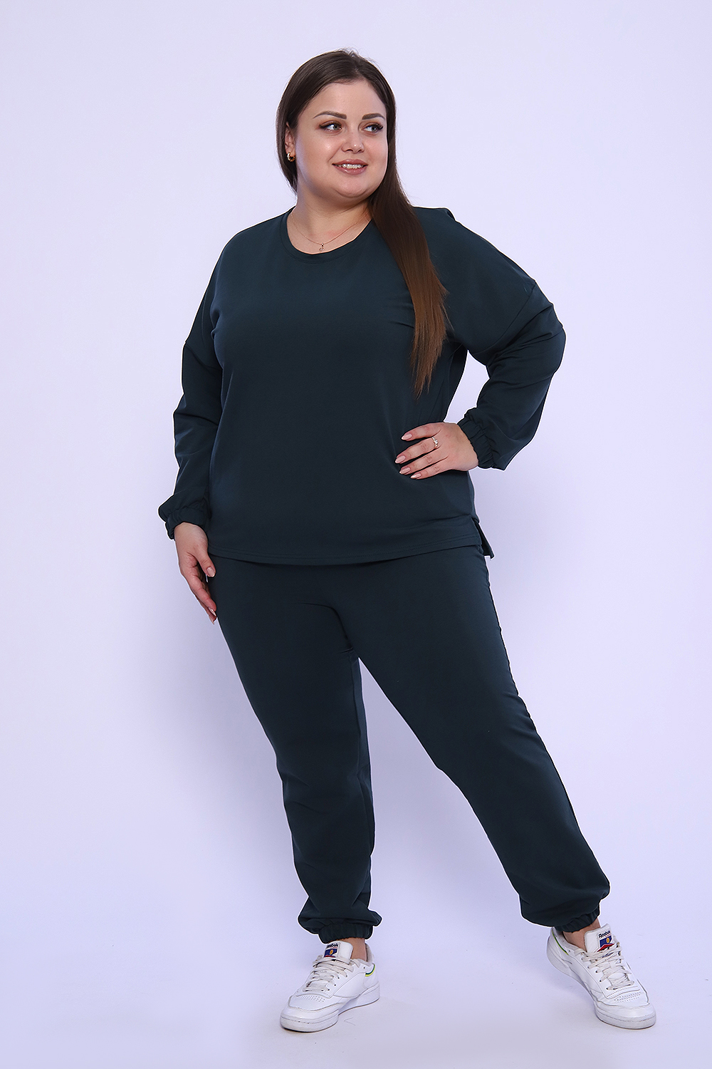 Повседневный наряд для шикарных женщин, толстовка с длинным рукавом на резинке, разрезы по бокам, брюки с карманами, резинка внизу, пояс обработан на поясной машине.