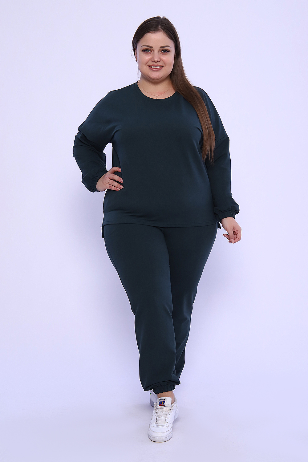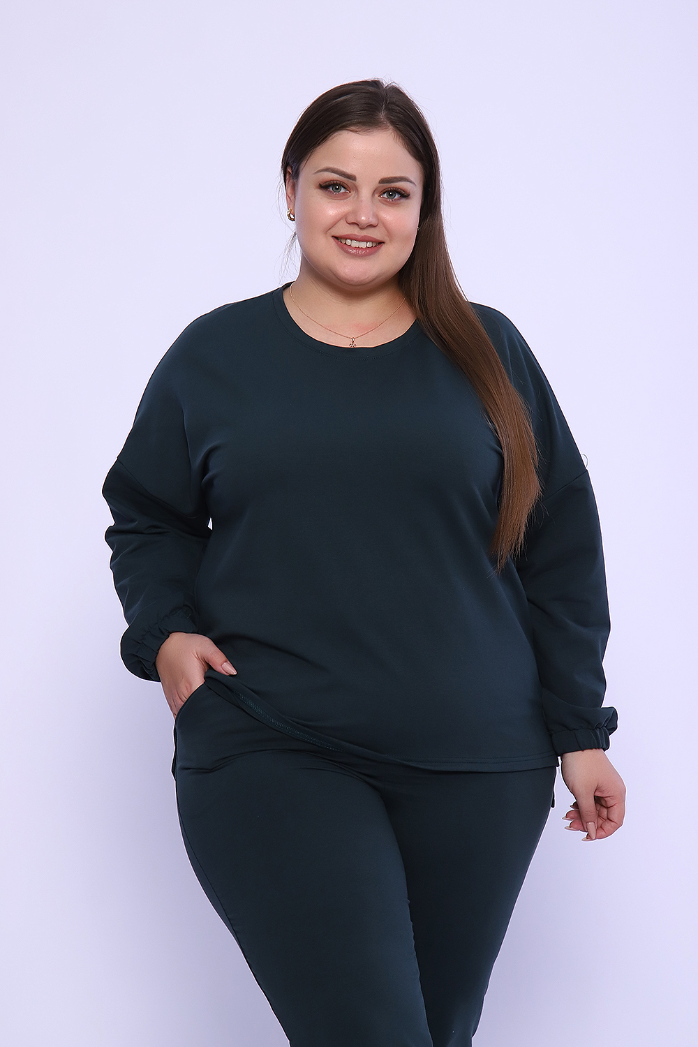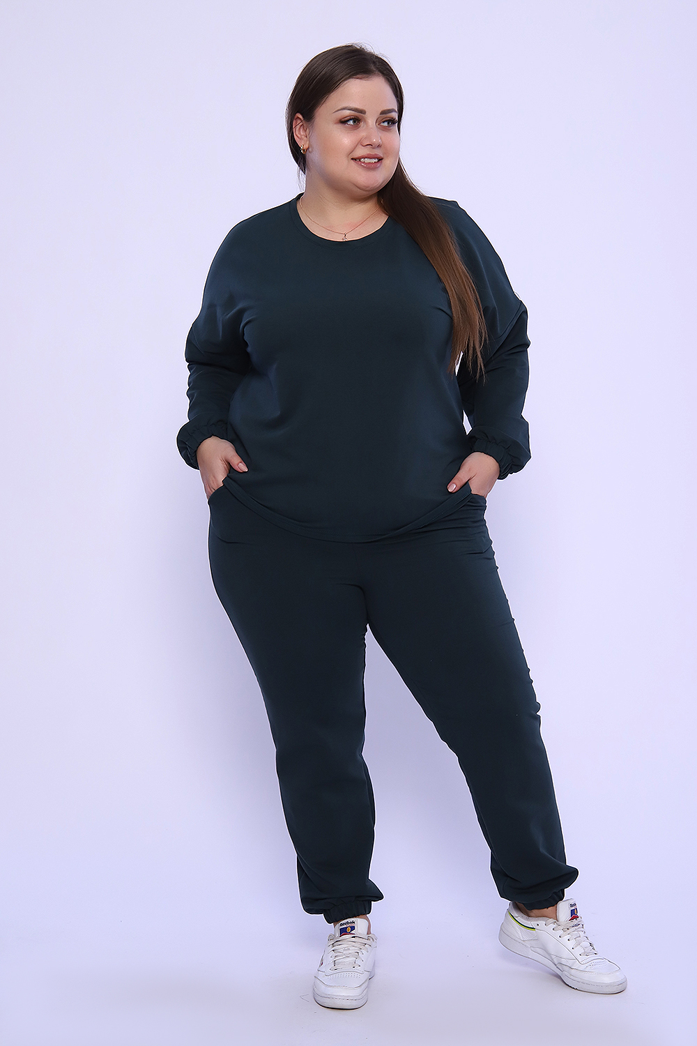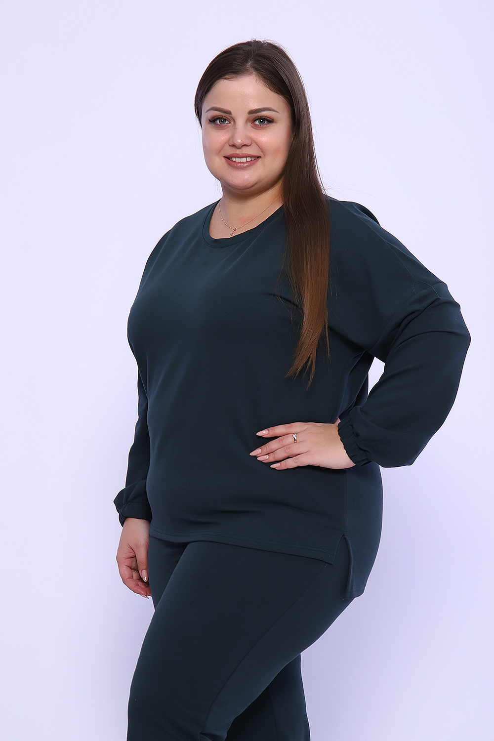 Повседневный наряд для шикарных женщин, толстовка с длинным рукавом на резинке, разрезы по бокам, брюки с карманами, резинка внизу, пояс обработан на поясной машине.