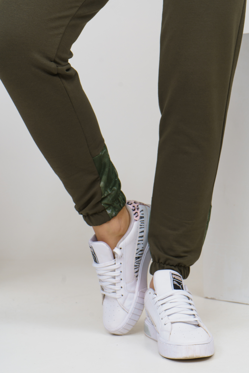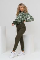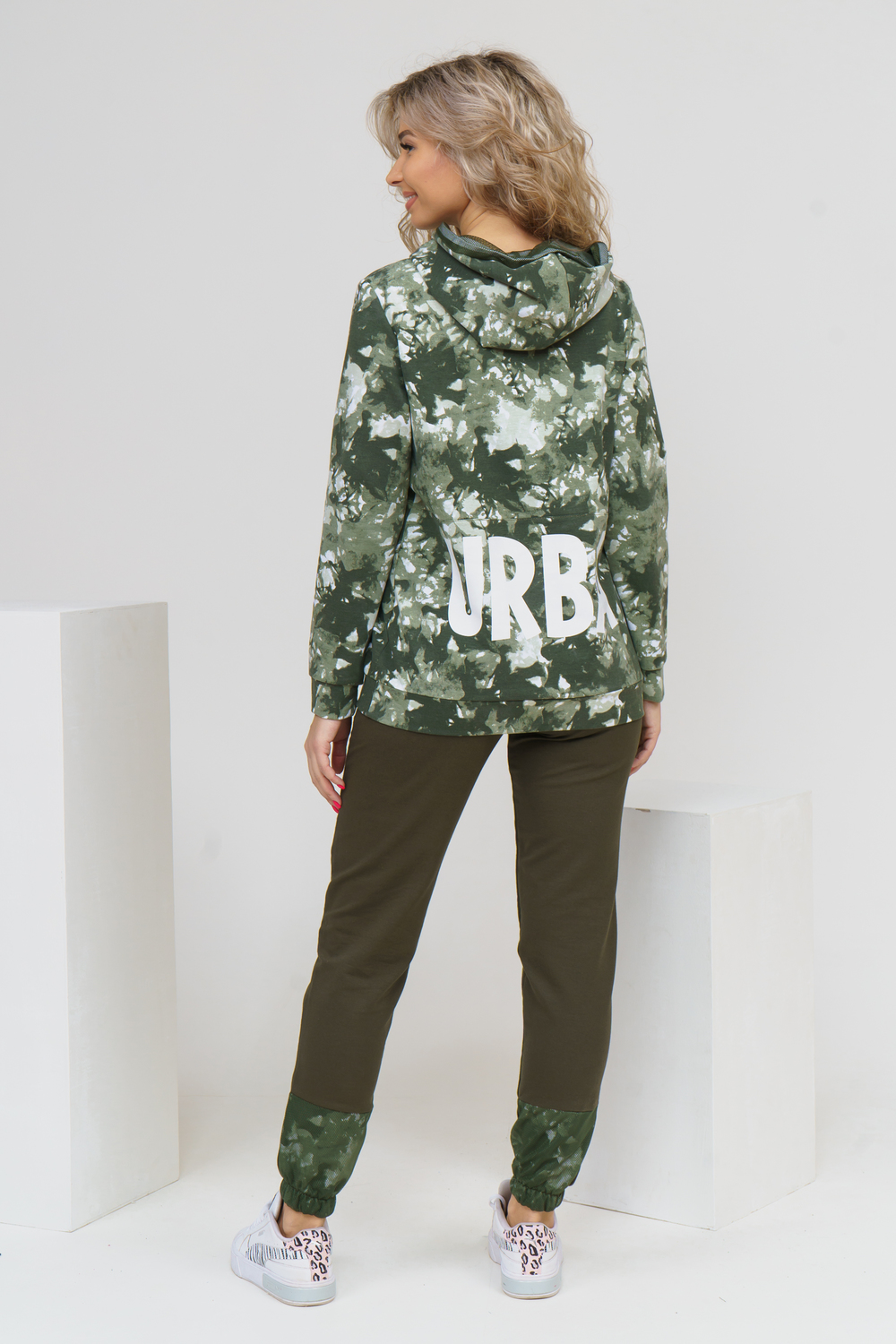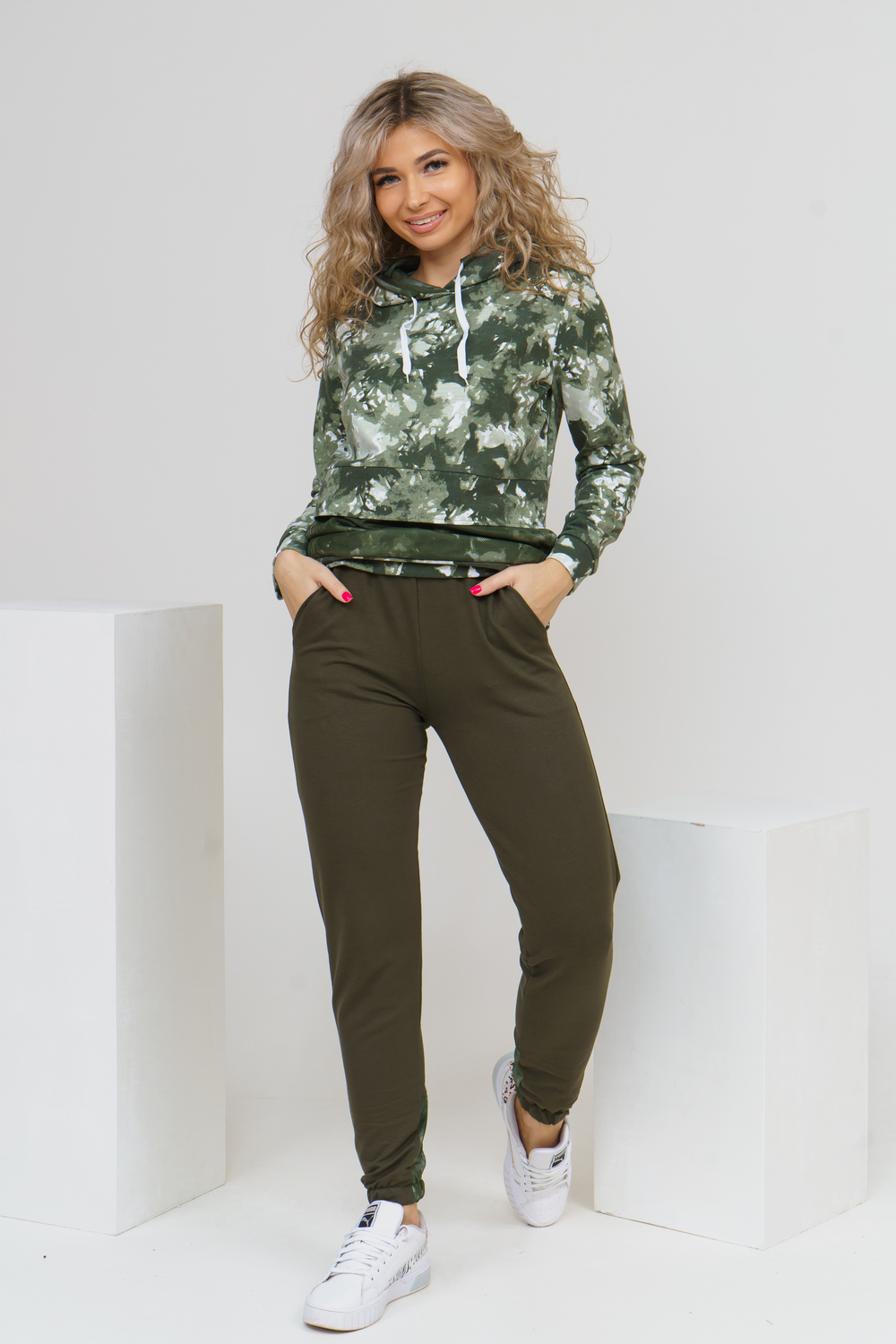 Женский костюм из футера и сетки состоит из толстовки и брюк. Толстовка с дизайном тай - дай, капюшоном, накладным карманом с клапаном и печатью на спинке, сочетается с модными брюками, создавая модный сет в стиле стритстайл.