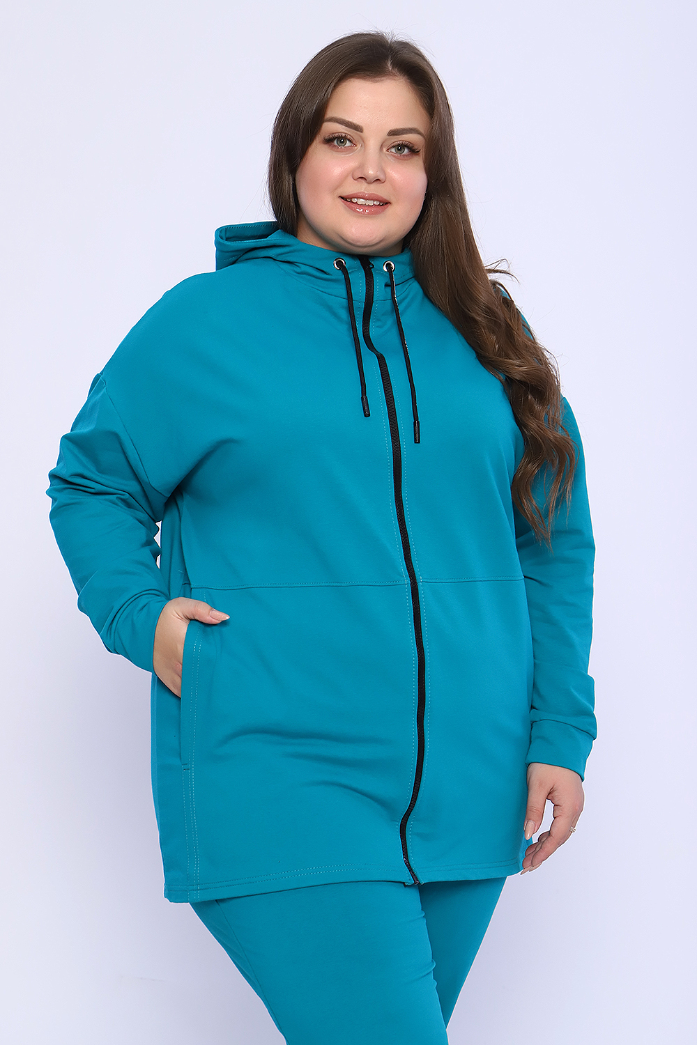 Женский костюм выполнен из футера 2-х нитки высокого качества с хлопком и небольшим добавлением полиэстера и лайкры, что позволяет изделию не скатываться и оставлять идеальный внешний вид на долгое время. Костюм состоит из толстовки и брюк. Толстовка прямая, на молнии, с двойным капюшоном - стойкой и двумя накладными вместительными карманами. Манжеты толстовки из основного материала. Брюки прямые, а пояс выполнен на специализированной поясной машине, что делает швы крепкими, ровными и качественными. Костюм такого плана представлен в широкой размерной сетке, что позволяет выбрать его как девушкам, так и женщинам корпулентных форм. Однотонный костюм модных расцветок будет удачным выбором для поездок в отпуск, на пикник, для активного отдыха и прогулок по городу. Костюм с брюками - это настоящая находка для тех, кто ценит свою индивидуальность, удобство и комфорт. Милые дамы, если Вам понравился костюм, но вы не можете найти свой размер в этой размерной сетке, то в модели 36660 вы обязательно его найдёте! Носите с удовольствием! Ориентируясь по таблице замеров, обратите внимание, что замеры длины рукава проводились от точки основания шеи.