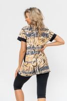 Женский костюм полуприлегающего силуэта состоит из туники и бриджей. 100% дышащий хлопок туники и эластичная вискоза бриджей несут в себе удобство при носке, гигроскопичность и износостойкость. V-образный вырез горловины придаёт изделию женственный вид. Для удобства туника имеет вместительные накладные карманы и втачные рукава с манжетами. Рельефы на полочке изделия создают идеальную посадку и безупречный внешний вид. Бриджи на резинке с высокой посадкой. В костюме такого плана Вы будете чувствовать себя комфортно как дома, так и на любимой даче. Эта двойка идеально подойдет для летнего отдыха на даче, на море или просто для девушек, которые хотят чувствовать себя уютно и комфортно дома. Летний женский костюм подходит для поездок и путешествий, загородного отдыха на природе, а также для получения лечения в больнице или санатории. Повседневное хлопковое изделие с бриджами - отличная идея для подарка любимой жене, маме, сестре или подруге на день рождения, 8 Марта или по любому другому приятному поводу. Рекомендация: для того чтобы продлить яркую жизнь