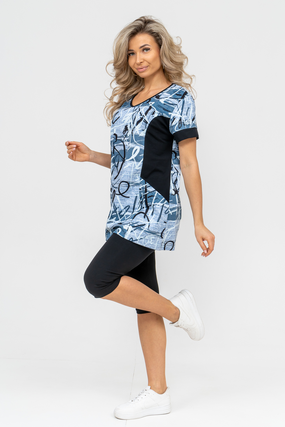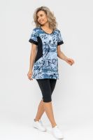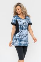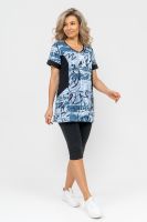 Женский костюм полуприлегающего силуэта состоит из туники и бриджей. 100% дышащий хлопок туники и эластичная вискоза бриджей несут в себе удобство при носке, гигроскопичность и износостойкость. V-образный вырез горловины придаёт изделию женственный вид. Для удобства туника имеет вместительные накладные карманы и втачные рукава с манжетами. Рельефы на полочке изделия создают идеальную посадку и безупречный внешний вид. Бриджи на резинке с высокой посадкой. В костюме такого плана Вы будете чувствовать себя комфортно как дома, так и на любимой даче. Эта двойка идеально подойдет для летнего отдыха на даче, на море или просто для девушек, которые хотят чувствовать себя уютно и комфортно дома. Летний женский костюм подходит для поездок и путешествий, загородного отдыха на природе, а также для получения лечения в больнице или санатории. Повседневное хлопковое изделие с бриджами - отличная идея для подарка любимой жене, маме, сестре или подруге на день рождения, 8 Марта или по любому другому приятному поводу. Рекомендация: для того чтобы продлить яркую жизнь