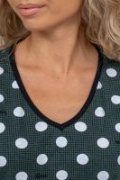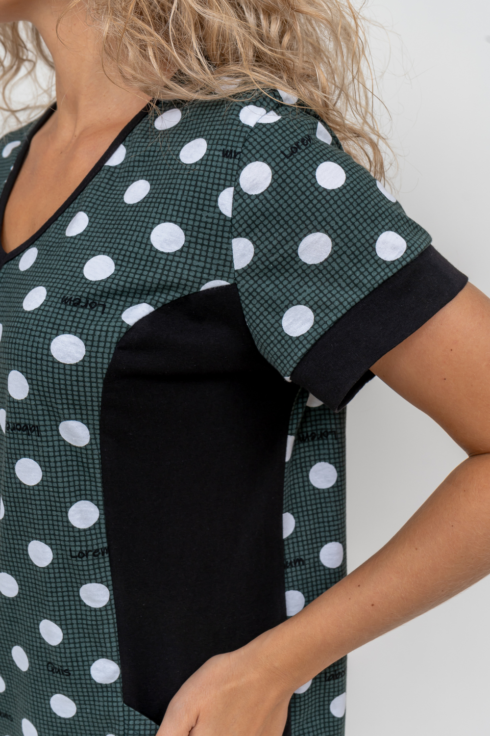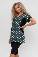 Женский костюм полуприлегающего силуэта состоит из туники и бриджей. 100% дышащий хлопок туники и эластичная вискоза бриджей несут в себе удобство при носке, гигроскопичность и износостойкость. V-образный вырез горловины придаёт изделию женственный вид. Для удобства туника имеет вместительные накладные карманы и втачные рукава с манжетами. Рельефы на полочке изделия создают идеальную посадку и безупречный внешний вид. Бриджи на резинке с высокой посадкой. В костюме такого плана Вы будете чувствовать себя комфортно как дома, так и на любимой даче. Эта двойка идеально подойдет для летнего отдыха на даче, на море или просто для девушек, которые хотят чувствовать себя уютно и комфортно дома. Летний женский костюм подходит для поездок и путешествий, загородного отдыха на природе, а также для получения лечения в больнице или санатории. Повседневное хлопковое изделие с бриджами - отличная идея для подарка любимой жене, маме, сестре или подруге на день рождения, 8 Марта или по любому другому приятному поводу. Рекомендация: для того чтобы продлить яркую жизнь Вашему костюму для дома и отдыха из хлопка, стирку производить при температуре не выше 30 градусов, а во избежание деформации изделия не прибегать к ручному отжиму (не перекручивать), утюжить слегка недосушенное изделие утюгом на паровом режиме. Покупайте наши красивые и удобные домашние костюмы с бриджами и носите с удовольствием! Приятных покупок!