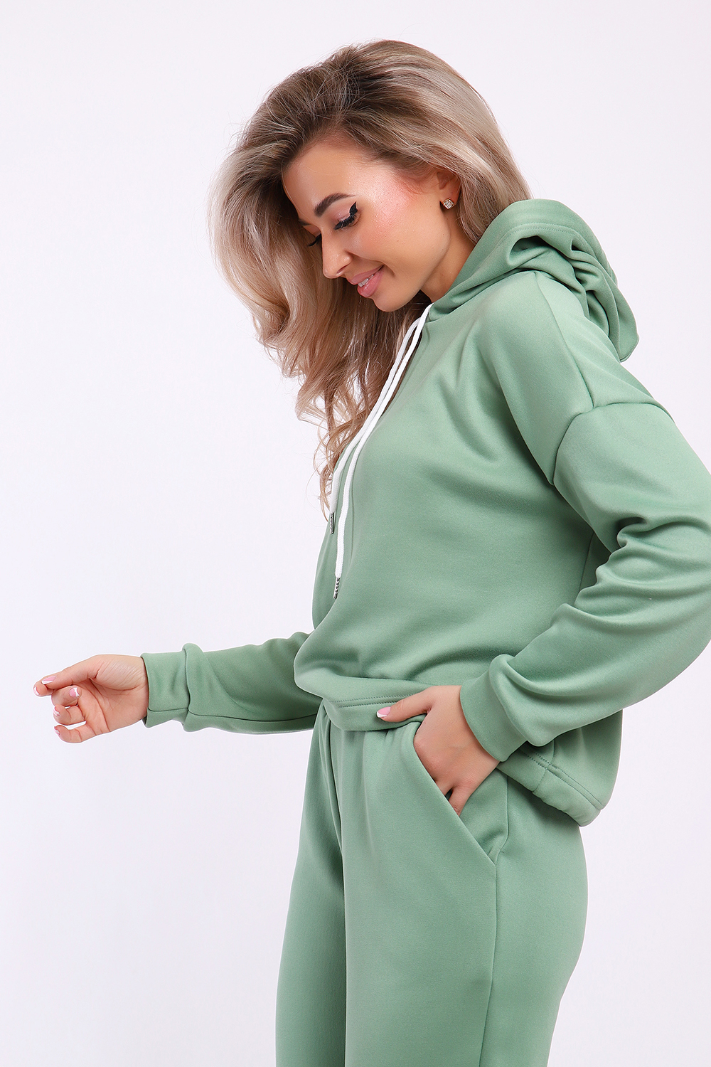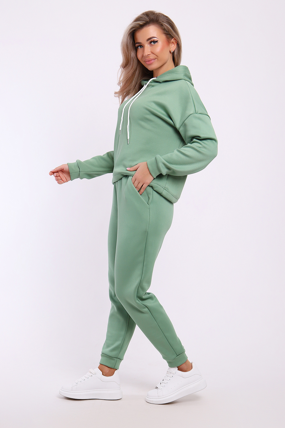 Модный утеплённый костюм выполнен из материала нового поколения футер найк - спорт. Это мягкое и эластичное полотно, утеплённое мелковорсным мехом, цвет меха в тон основного цвета. Ворс направленный 3 мм, мягкий и не блестящий. Полотно эластичное и очень приятное на ощупь с обеих сторон. Благодаря составу не вытягивается, не образует катышки, не сыпется и не требует особого ухода. Костюм такого плана - это модная и стильная вещь, идеально подходящая для активного образа жизни, отдыха и для повседневной носки. Модель выполнена из специально разработанной для спортивных занятий ткани, которая отводит влагу, позволяет коже дышать и настолько эластична, что тянется в 4 - х направлениях. Поэтому костюм идеален для зимних видов спорта, например, катания на коньках, сноуборде или лыжах в холодное время, а также для скандинавской ходьбы. Костюм состоит из толстовки и брюк. Толстовка с капюшоном и шнурком. Линия плеча спущена, длинный рукав. По низу толстовки имеется резинка с фиксатором, с помощью которой Вы можете собрать изделие как вам хочется и нравится. Брюки представлены с вместительными боковыми карманами. Манжеты брюк выполнены из основного материала, а пояс на специализированной поясной машине, что делает швы ровными и качественными. Свободный крой прекрасно будет смотреться на дамах с любыми формами. Костюм такого плана представлен в широкой размерной сетке, что позволяет выбрать его как девушке, так и женщине. Однотонный костюм модных расцветок будет удачным выбором для поездок в отпуск, на пикник, для школы, для активного отдыха и прогулок по городу. Будет гармонично сочетаться как с кроссовками, так и с ботинками. Используя эту модель в качестве домашнего костюма, Вы поймёте, что это именно тот самый идеальный вариант, в котором будете себя чувствовать удобно, комфортно и современно. Костюм с брюками - это настоящая находка для тех, кто ценит свою индивидуальность! Ориентируясь по таблице замеров, обратите внимание, что замеры длины рукава проводились от точки основания шеи.