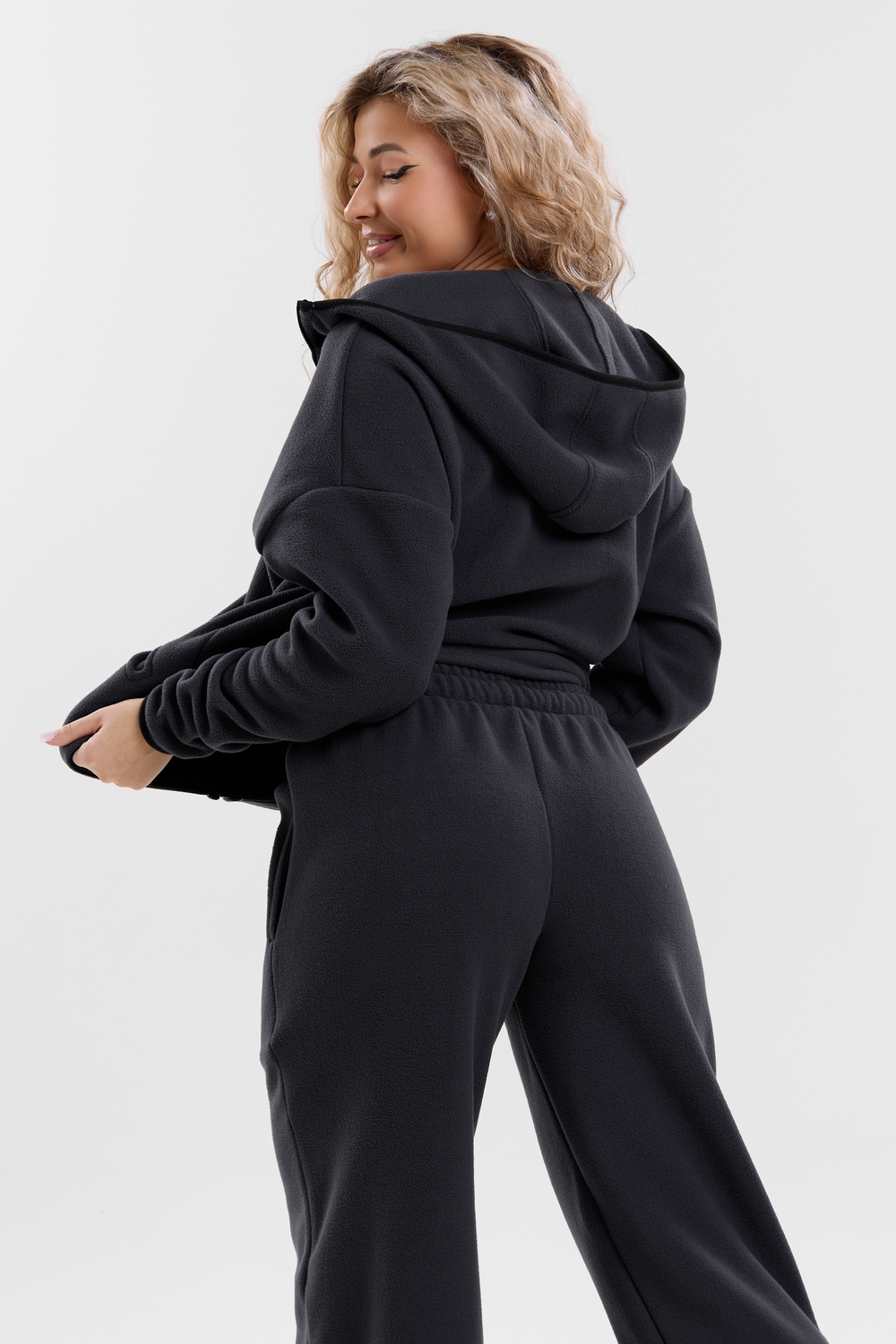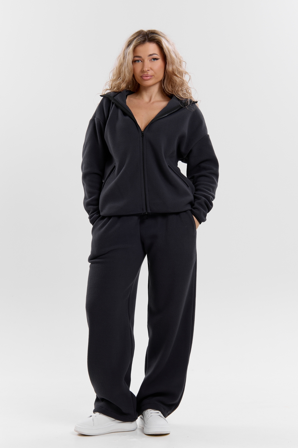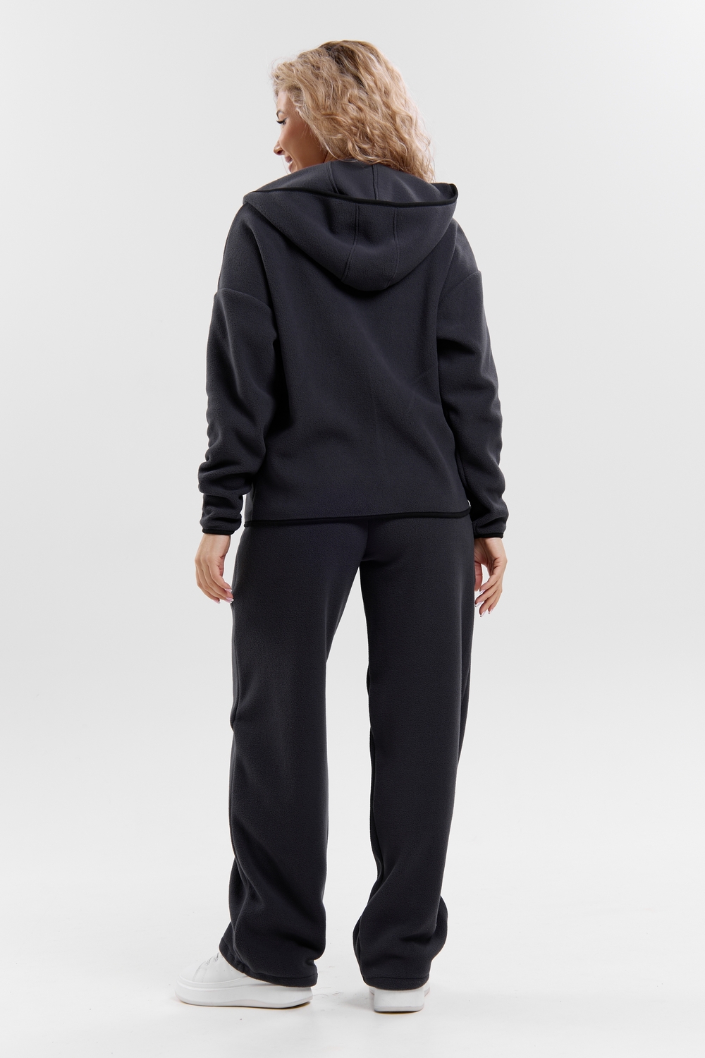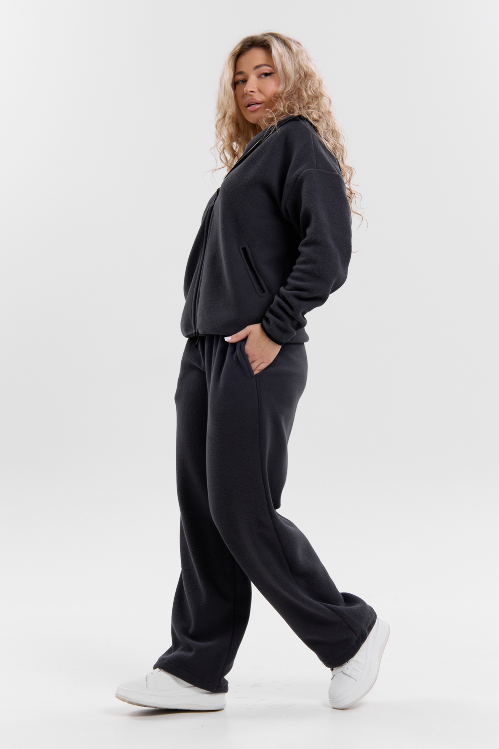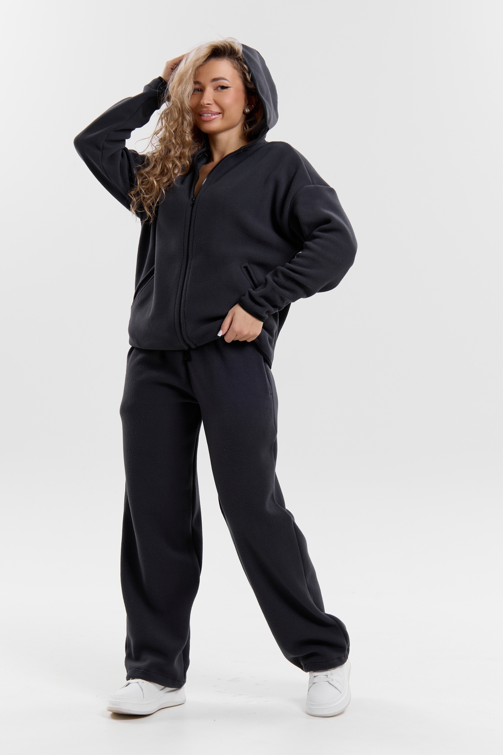 Флисовый костюм на молнии станет незаменимой вещью в вашем гардеробе. Костюм выполнен из плотной, мягкой ткани , что делает его очень теплым и приятным к телу. Благодаря высокому вороту, а также комфортному капюшону, надежно защитит ваше горло от прохлады в любое время года – будь то осень, весна, зима или прохладное лето. Качественная молния добавляет стильный акцент, а удобный замок обеспечивает легкое надевание и снятие. Резинка на поясе обеспечивает идеальную посадку и комфорт, брюки мягко облегают талию, не сдавливая и не сползая. Шнур на поясе добавляет не только стильный акцент, но и даёт возможность индивидуально регулировать посадку. Резинки на манжетах фиксируют брючины, затягивая с помощью фиксатора, создавая аккуратный новый образ. Такой крой визуально вытягивает ноги и придаёт образу собранность. Свободный фасон багги гарантирует свободу движений и комфорт в течение всего дня. Прорезные боковые карманы - незаменимый элемент для удобства. Они не выпирают, не утяжеляют силуэт и в то же время добавляют практичности. В них можно удобно разместить разные мелочи- это маленькая деталь, которая делает модель ещё более функциональной. Флисовый костюм помогает создавать стильные образы. Его универсальный крой позволяет использовать его как повседневную одежду для прогулок, так и для дома. Модный фасон подойдет для женщин любого телосложения. Костюм представлен без яркого принта и рисунка, что делает его универсальной базой. Забудьте о зимних холодах – костюм подарит уют. Наш костюм с удобными большими прорезными карманами станет вашим спутником в создании спортивных или расслабленных аутфитов. Костюм на молнии с высоким воротником и капюшоном подойдут для создания модных образов в стиле кэжуал, спорт и спортшик. Используйте его как костюм для активного отдыха или как базовый лук на каждый день. Настоящий тренд сезона, который идеально впишется в ваш образ в любое время. Почувствуйте себя уютно в нашем плюшевом и стильном костюме. Ориентируясь по таблице замеров, обратите внимание, что замеры длины рукава проводились от точки основания шеи.